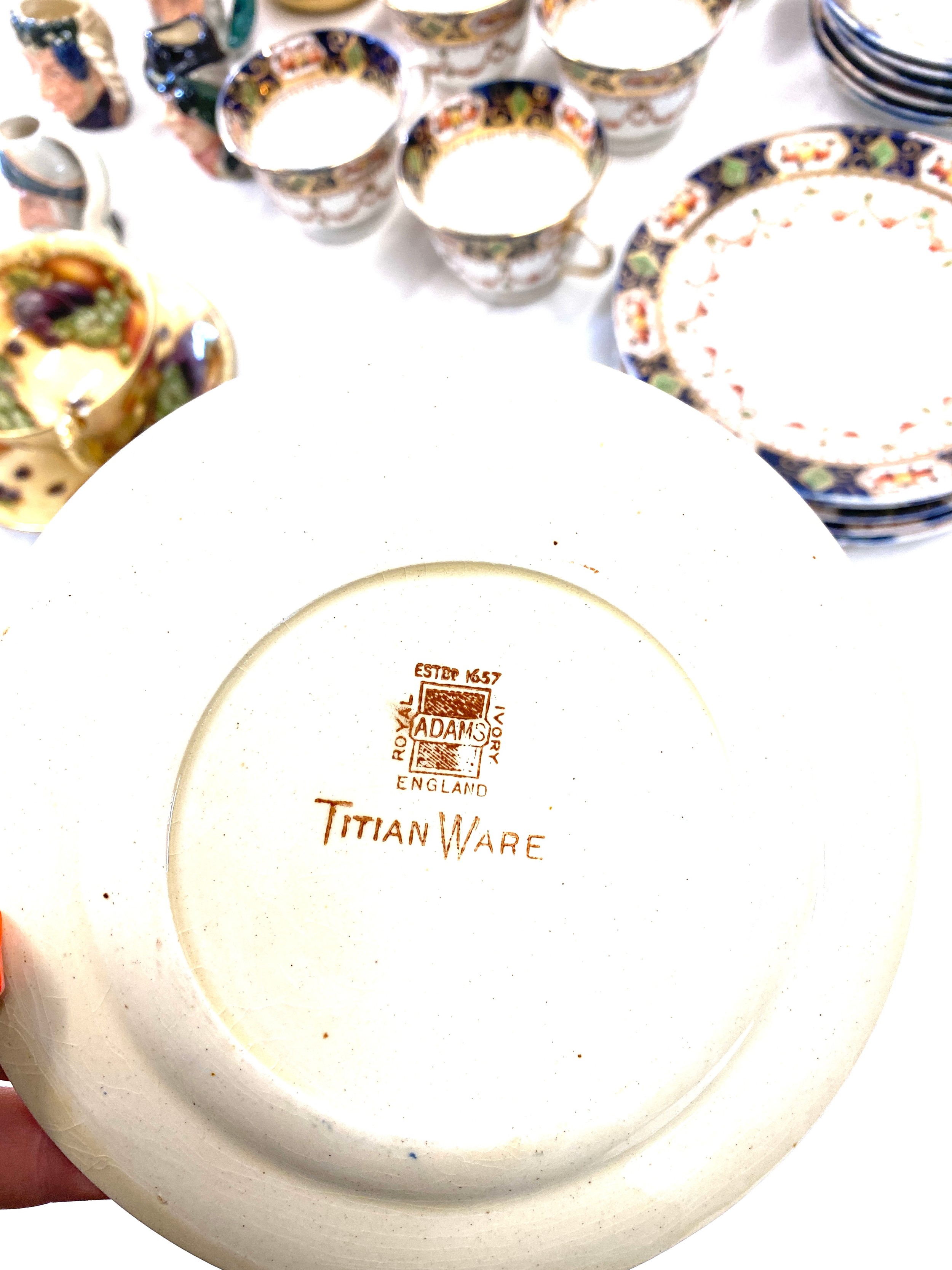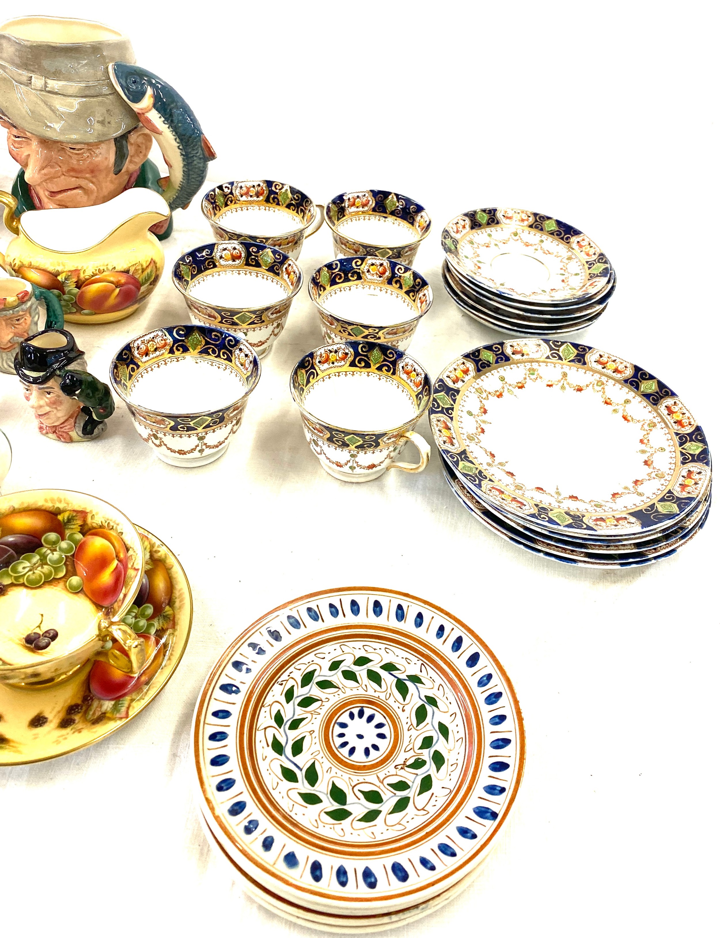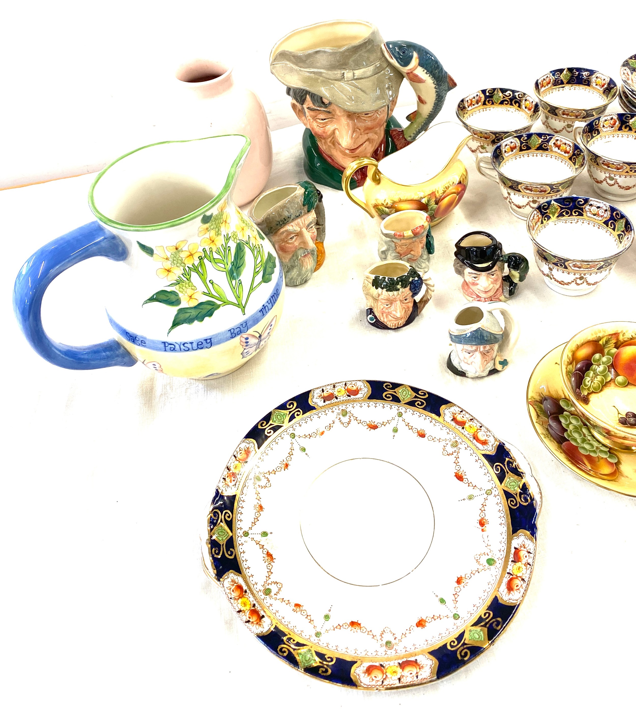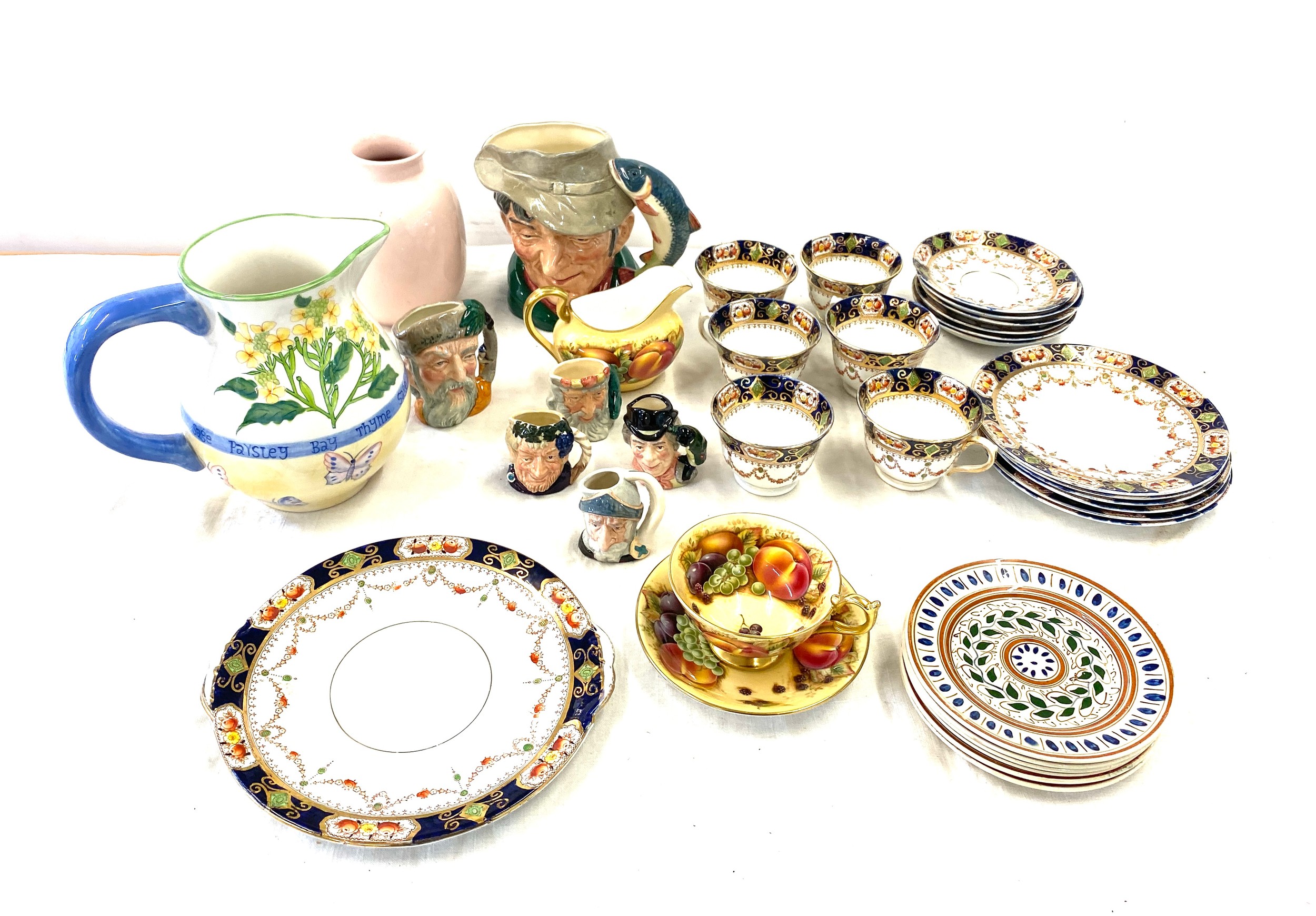 Selection of miscellaneous pottery to include Royal Doulton toby jugs, Ainsley cup and saucer set, Mona cups, saucers , Royal Worcester herb garden vase, Poole vase etc