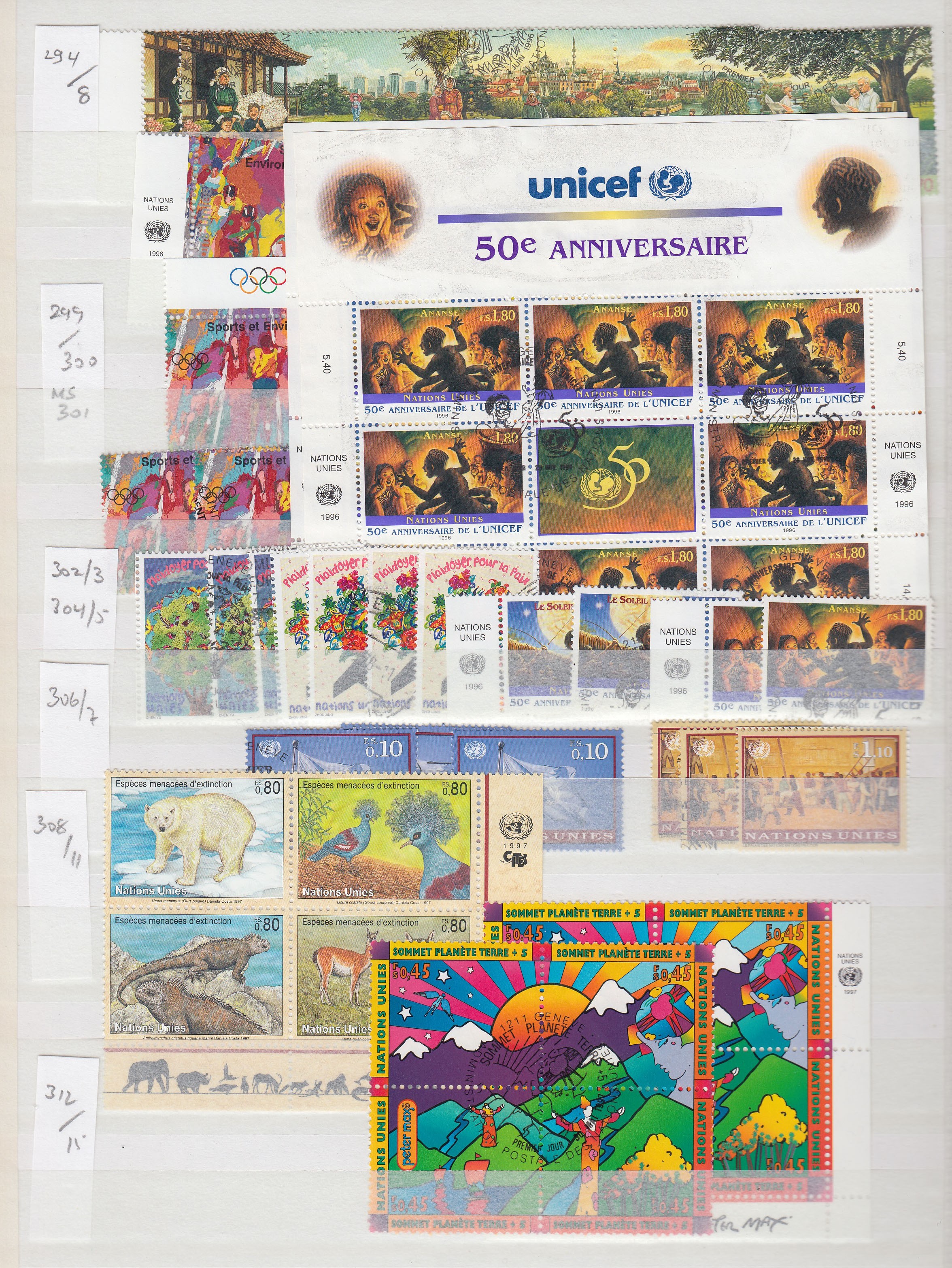 A complete duplicated mint and used collection of United Nations (Geneva) SG1-SG388, then a few gaps to SG650, Cat £1500+