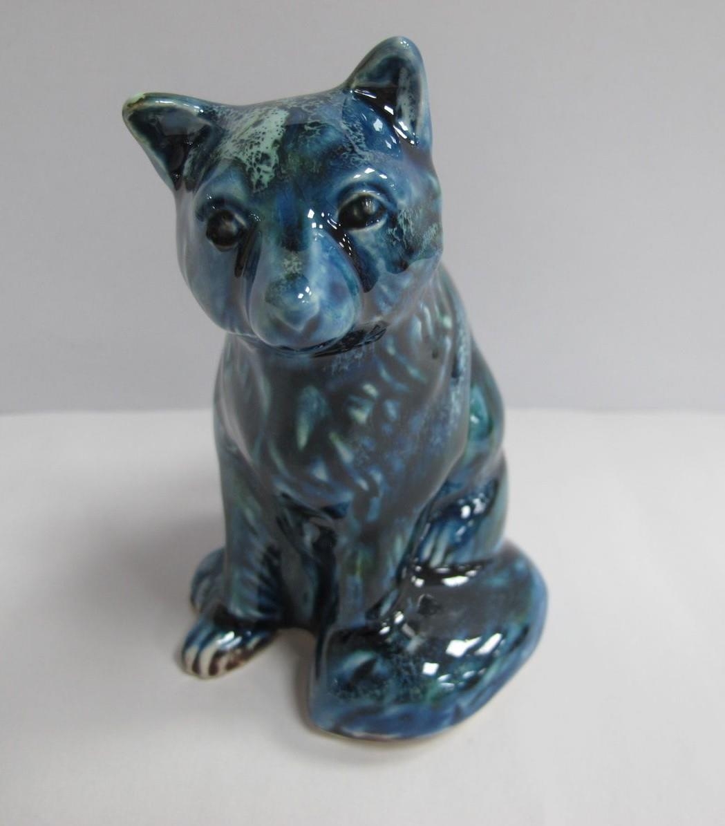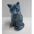 An Anita Harris Blue Sitting Fox Figure, gold signed, 10.5cm high.