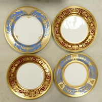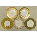De Lamerie Fine Bone China, a selection of heavily gilt plates in varied colourways & designs. Made in England (5)