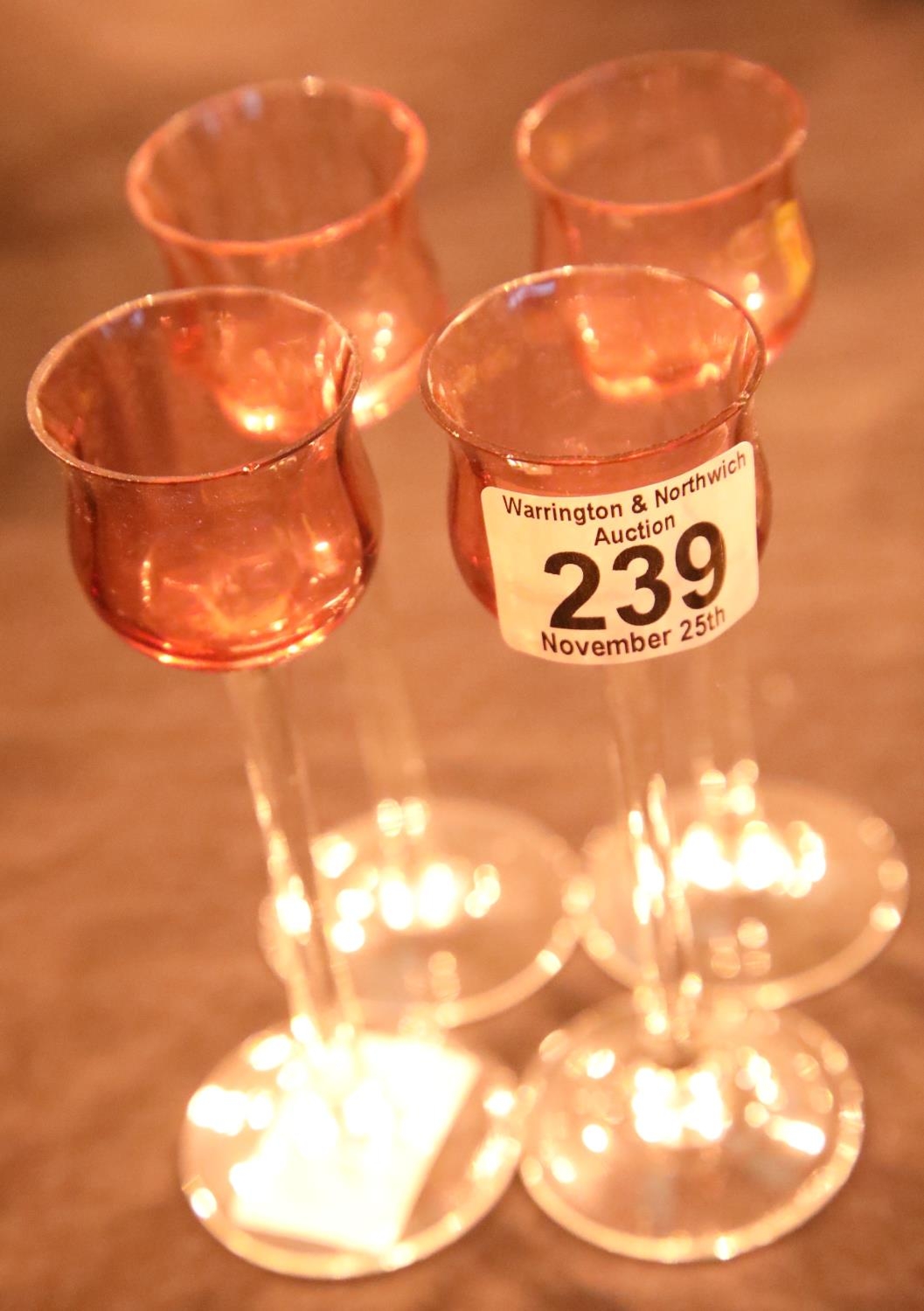 Set of four Cranberry liqueur glasses. P&P Group 2 (£18+VAT for the first lot and £3+VAT for subsequent lots)