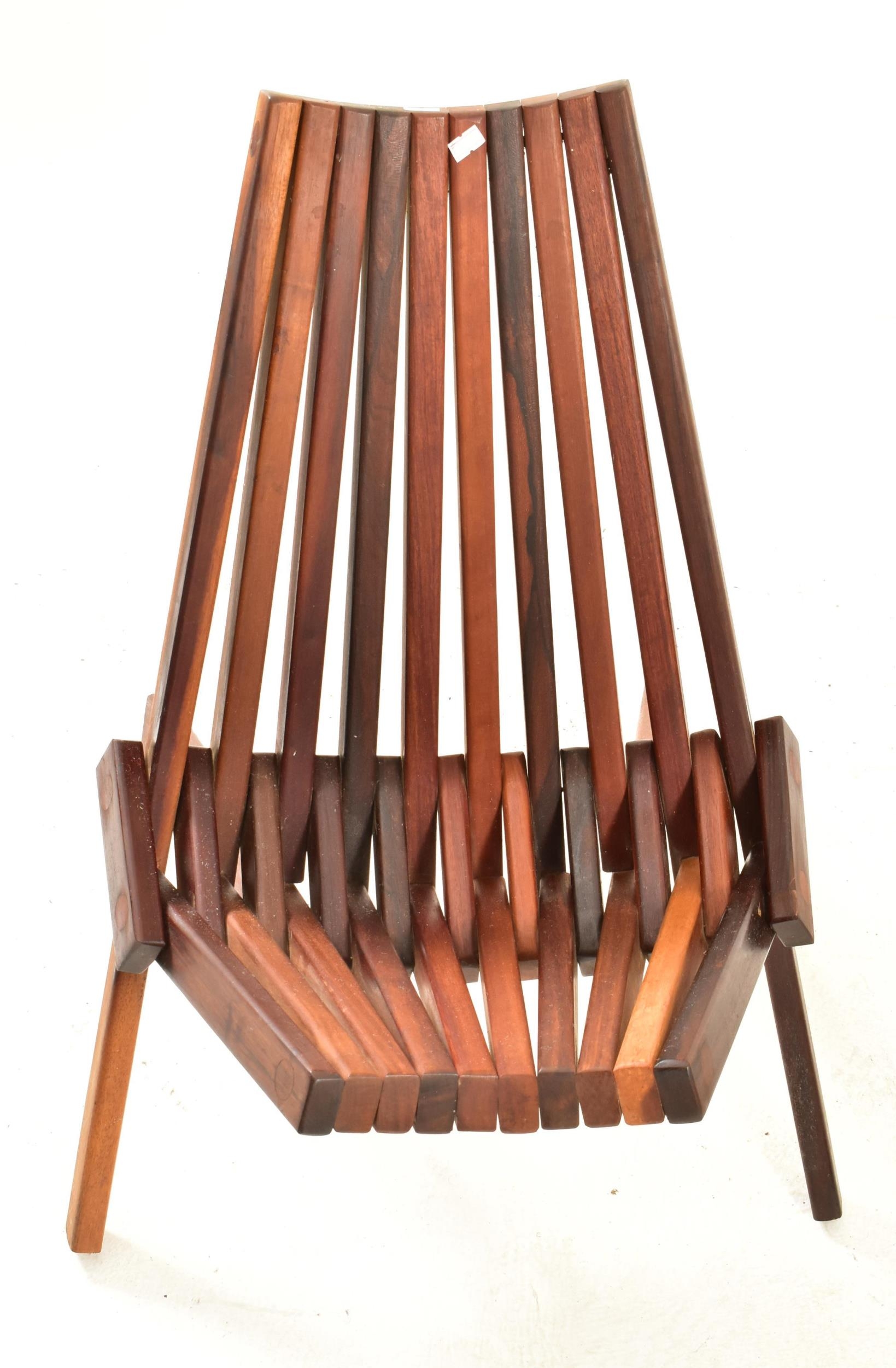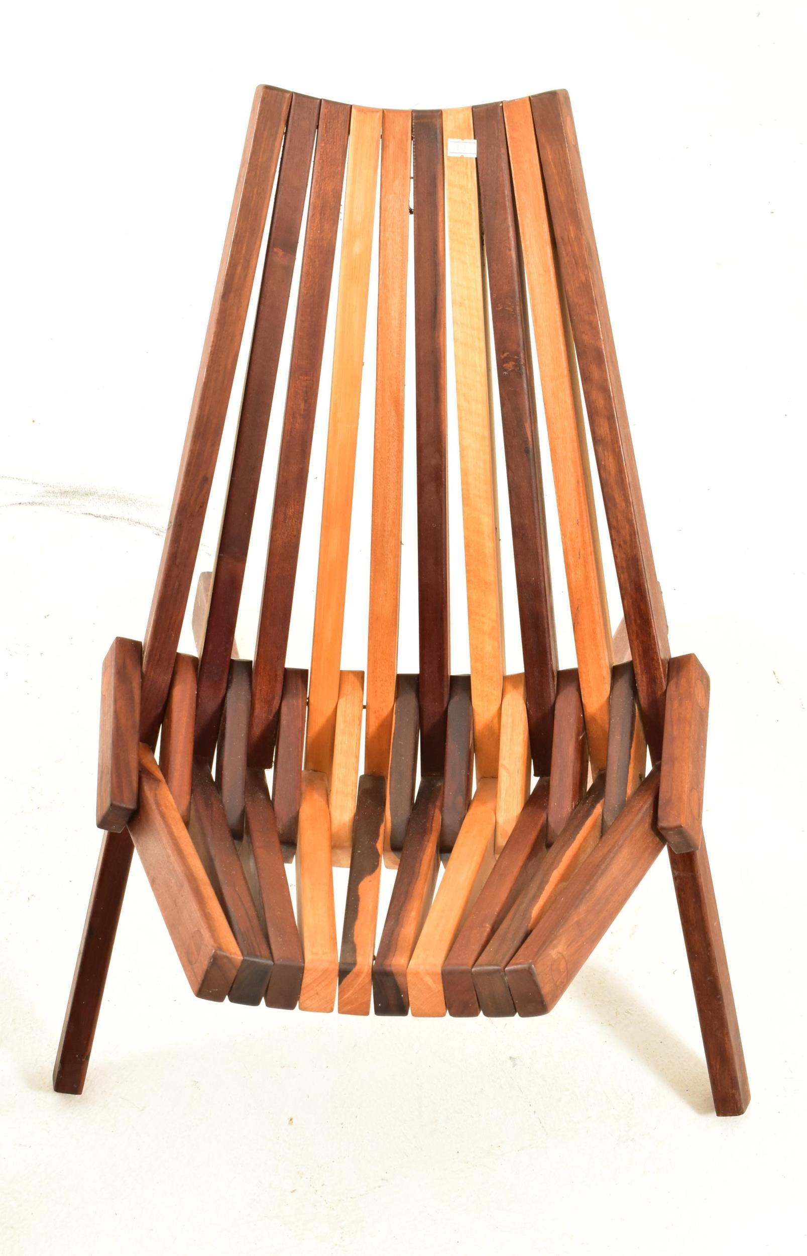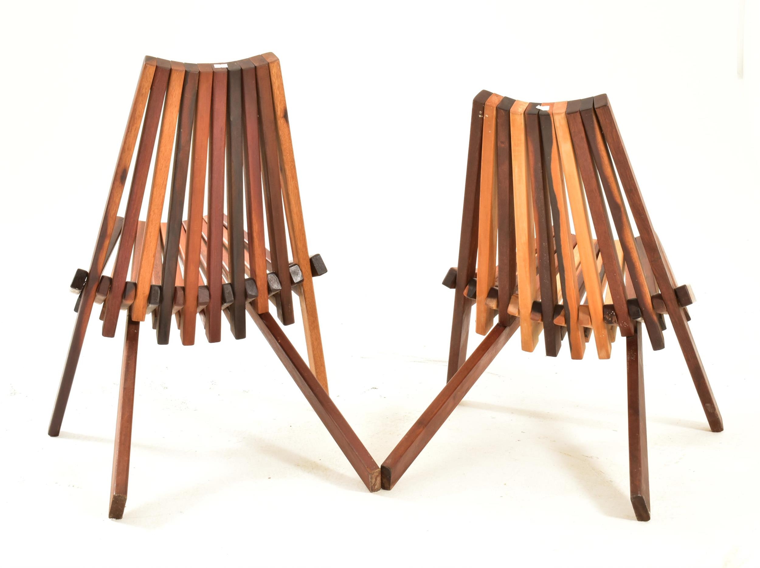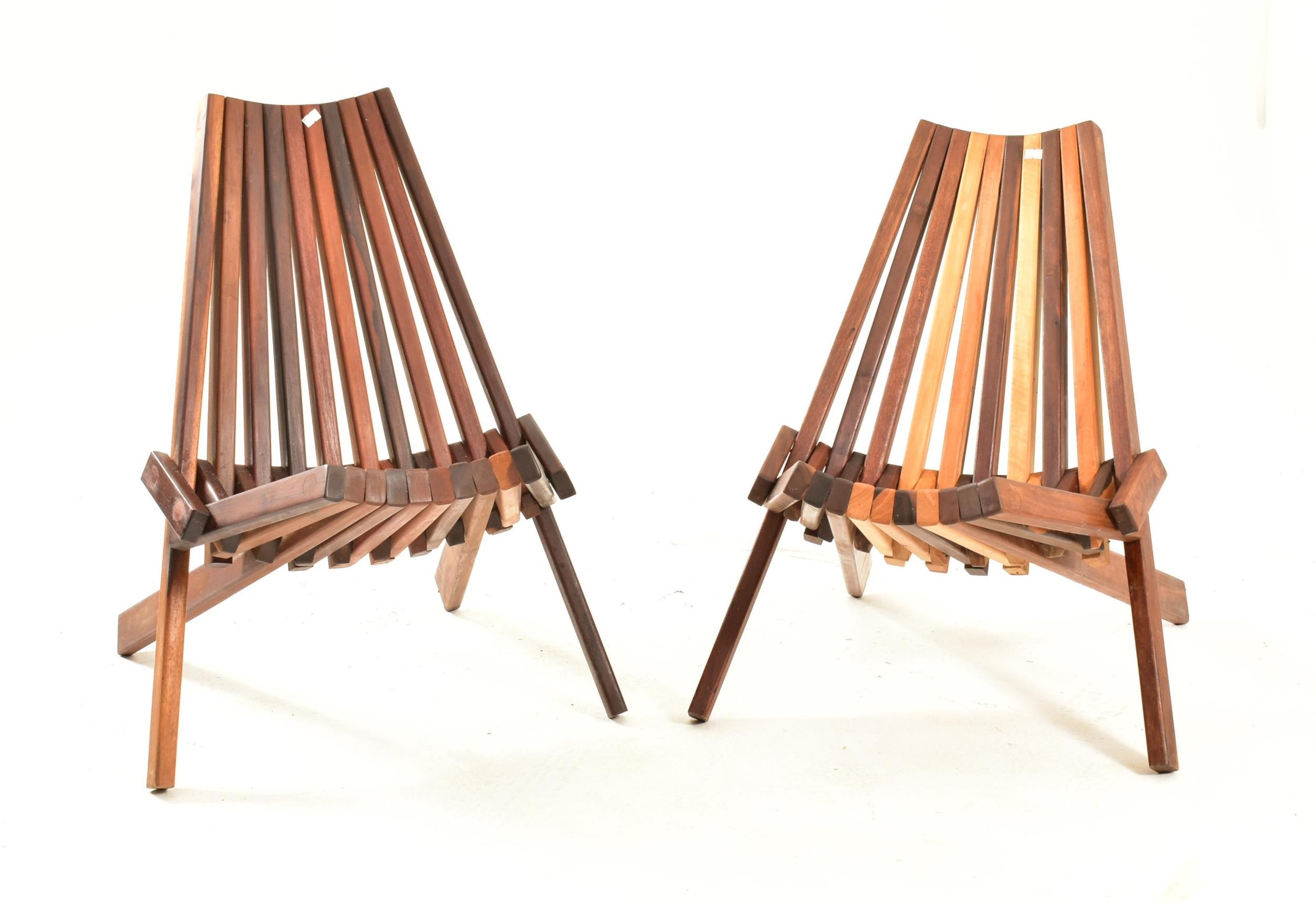 A pair of retro late 20th century Kentucky stick chairs. The folding chairs of birch wood stick construction. Measures approx. 88cm tall, 45cm wide.
