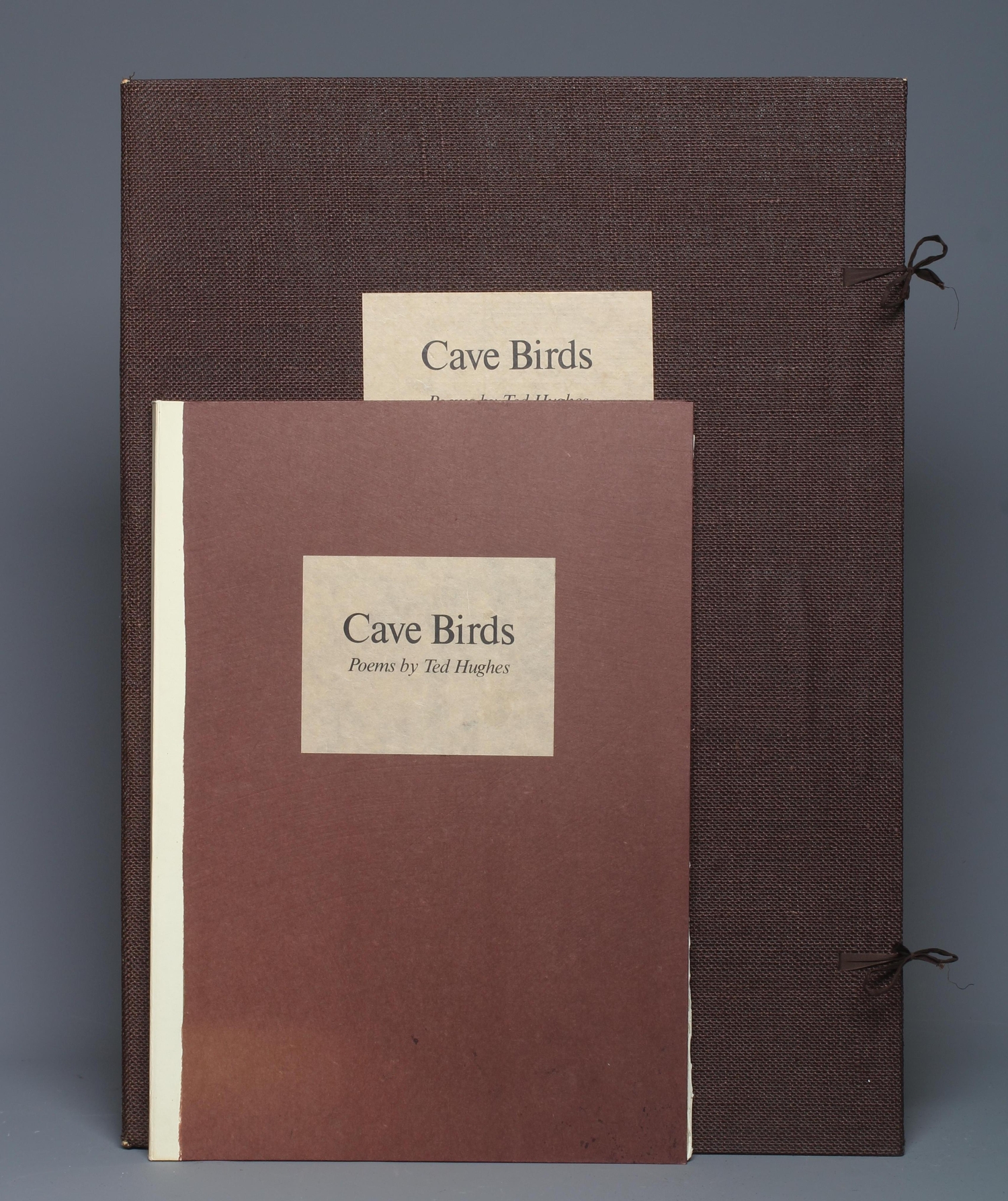 TED HUGHES - Cave Birds, Ten Poems, Scholar Press, No.30 of a Ltd. ed. of 100 copies signed by Hughes (Poet Laureate) and Leonard Baskin (artist), 1975, deckle edges, burlap clamshell box, elephant folio, WITH two Ltd. Ed. prints 'Kindly Father' & 'Mother of Judgement' both pasted onto black boards (3) (Est. plus 20% premium)