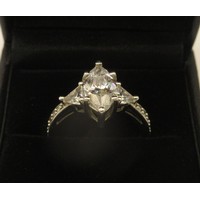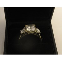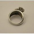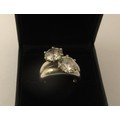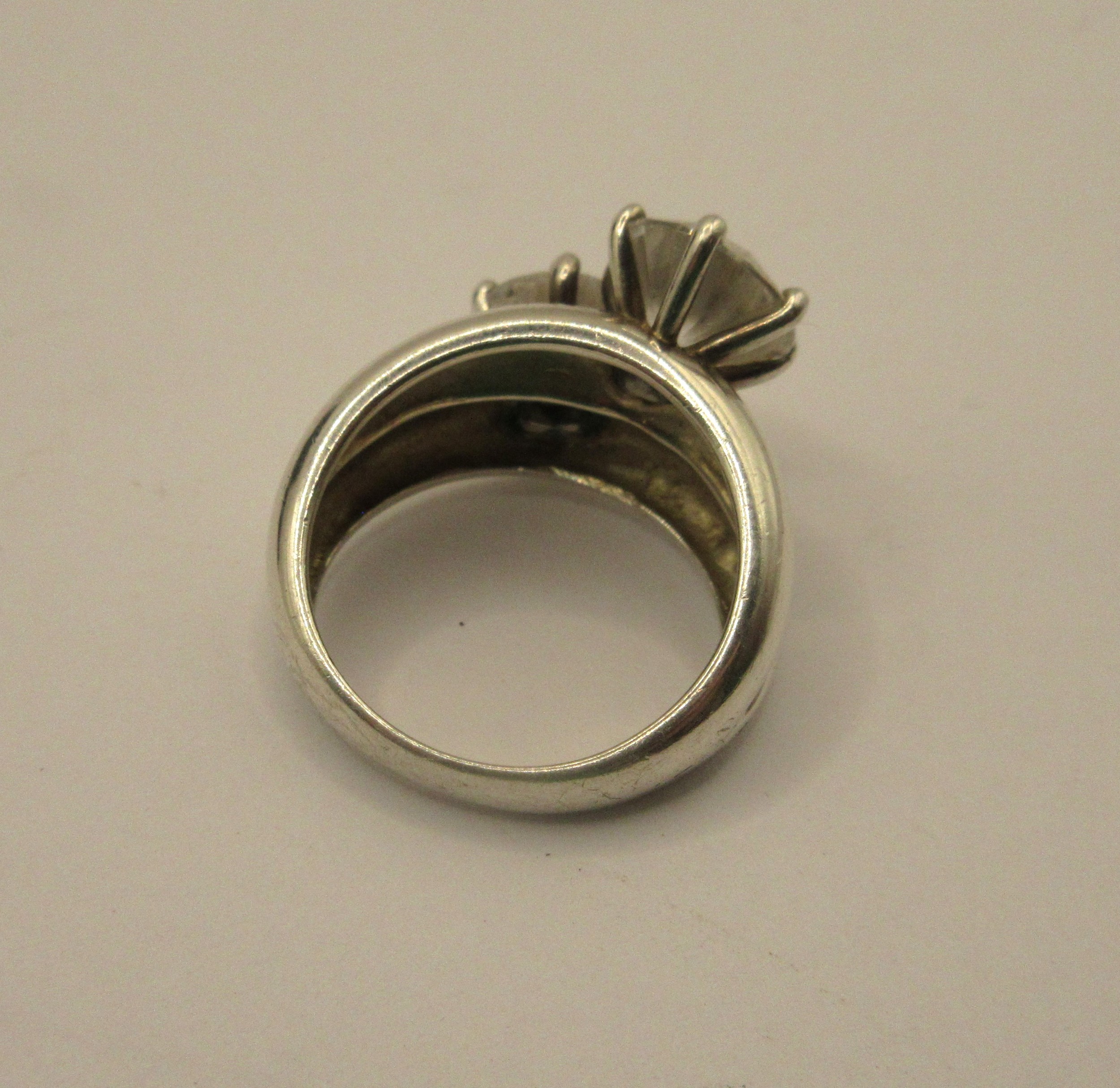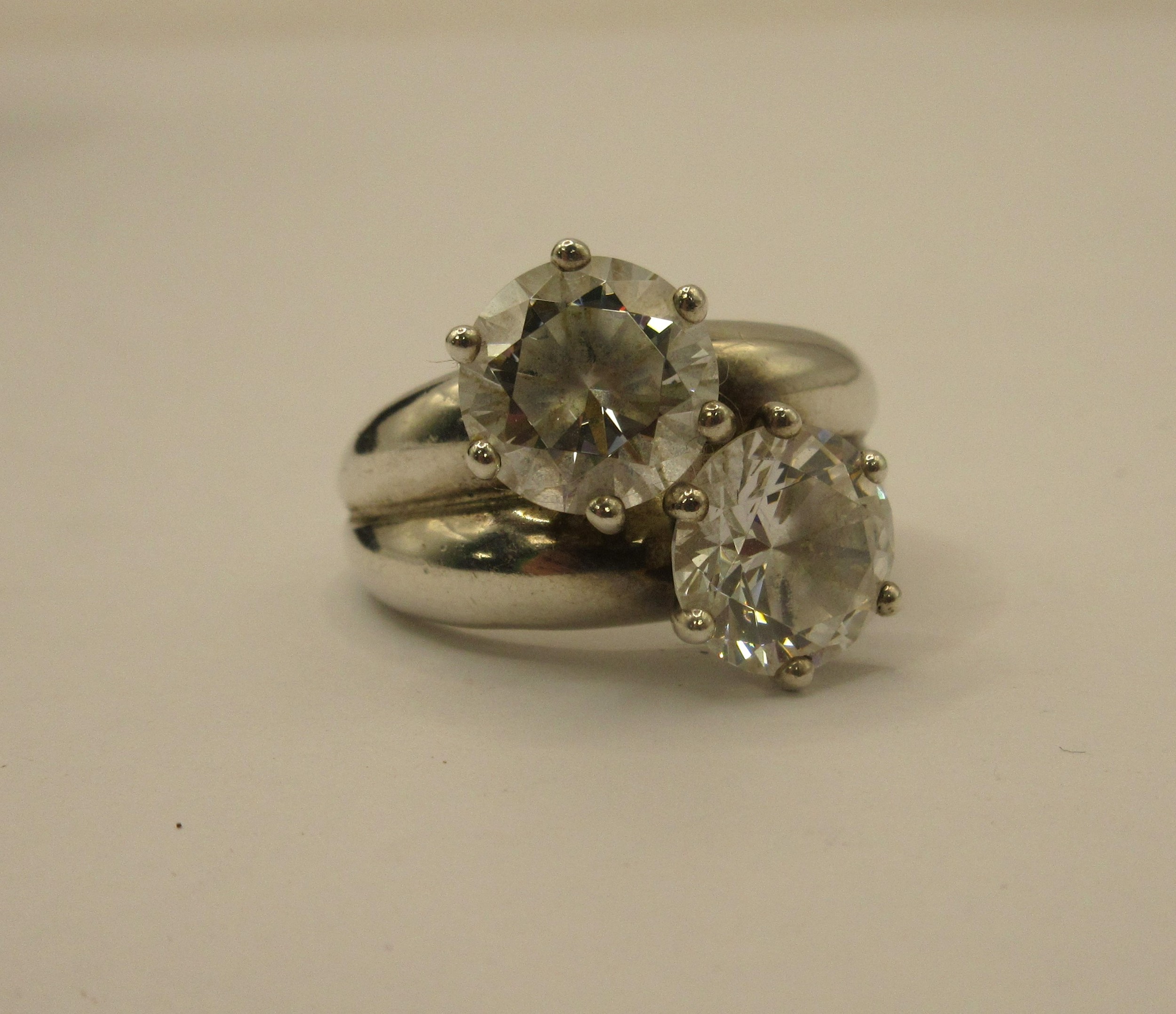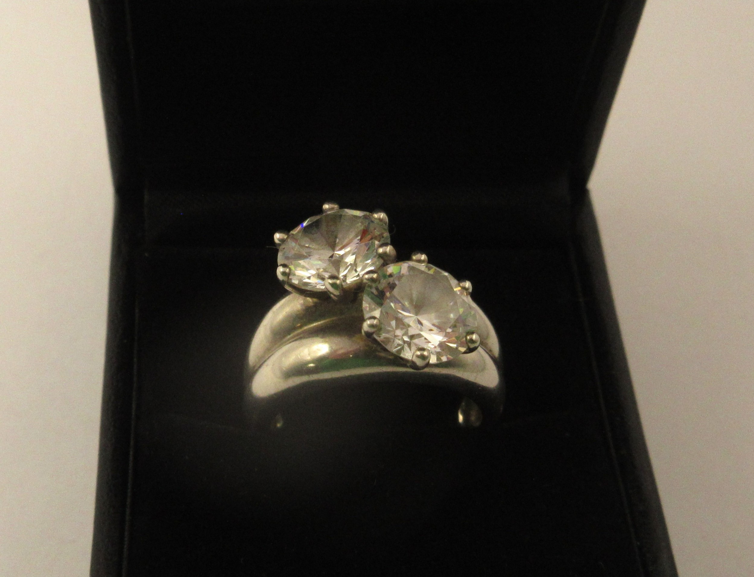 A 925 silver dress ring set with two white stones, ring size N/O, stamped 925 DOCZ, with a black presentation box
