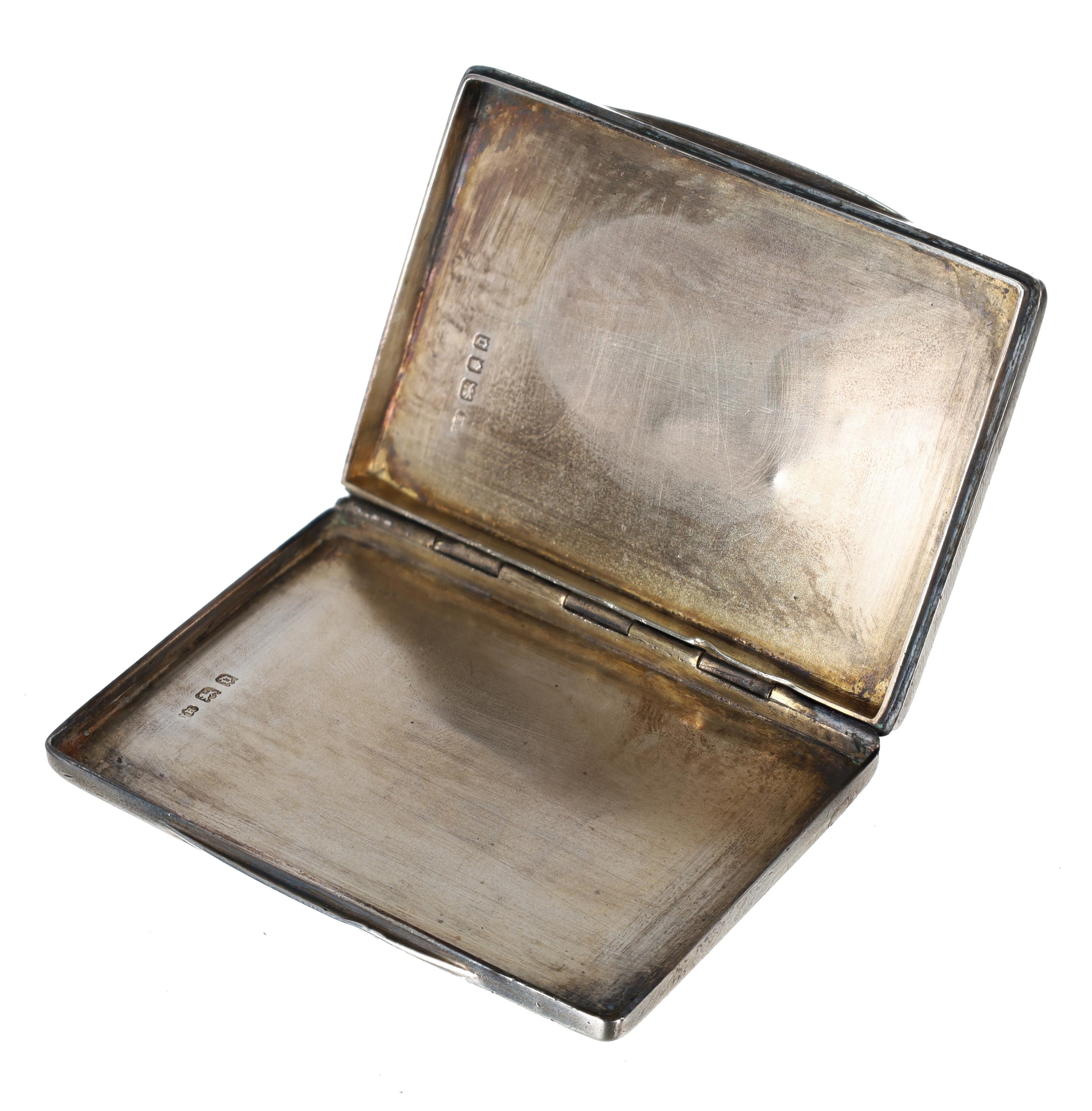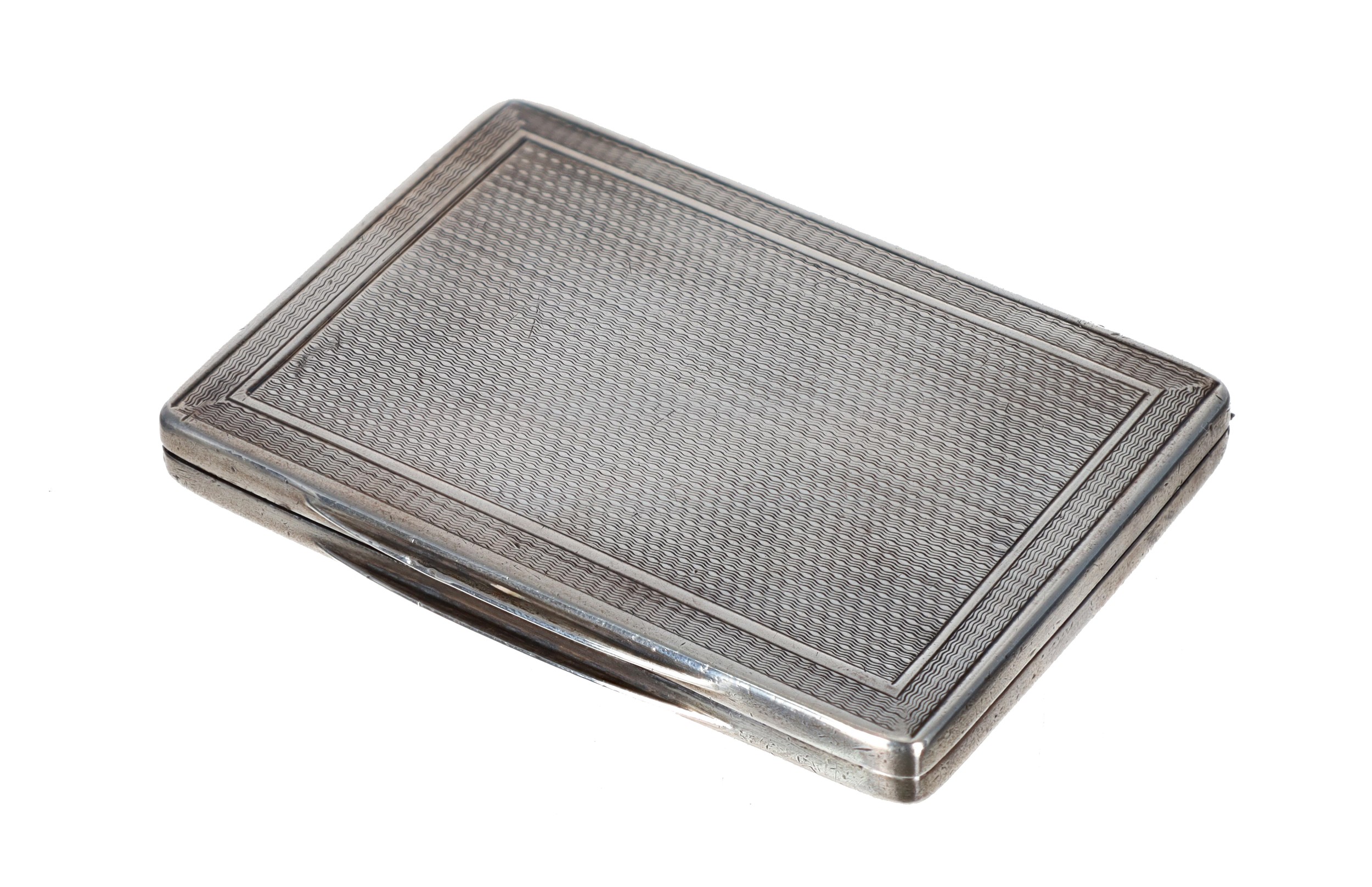 Engine turned silver cigarette case, maker JH (possibly John Henry Hill), London 1919, 2.25" x 3", 91.7gm (WUER1M)