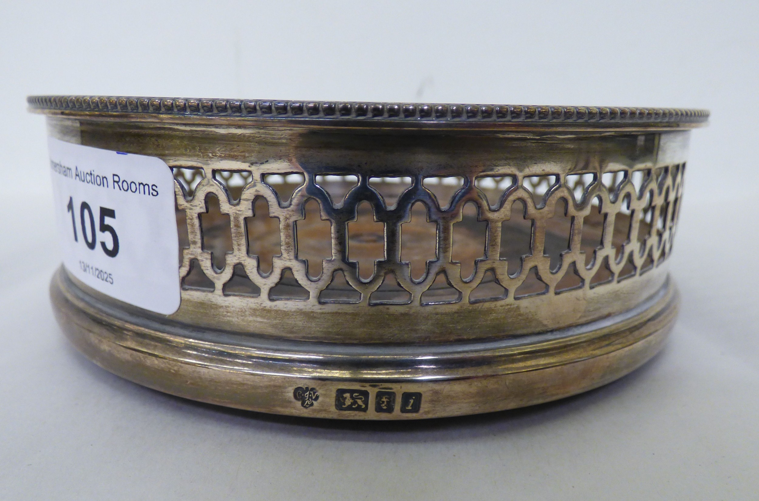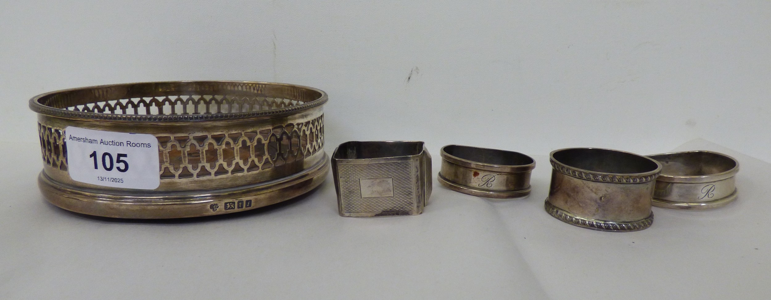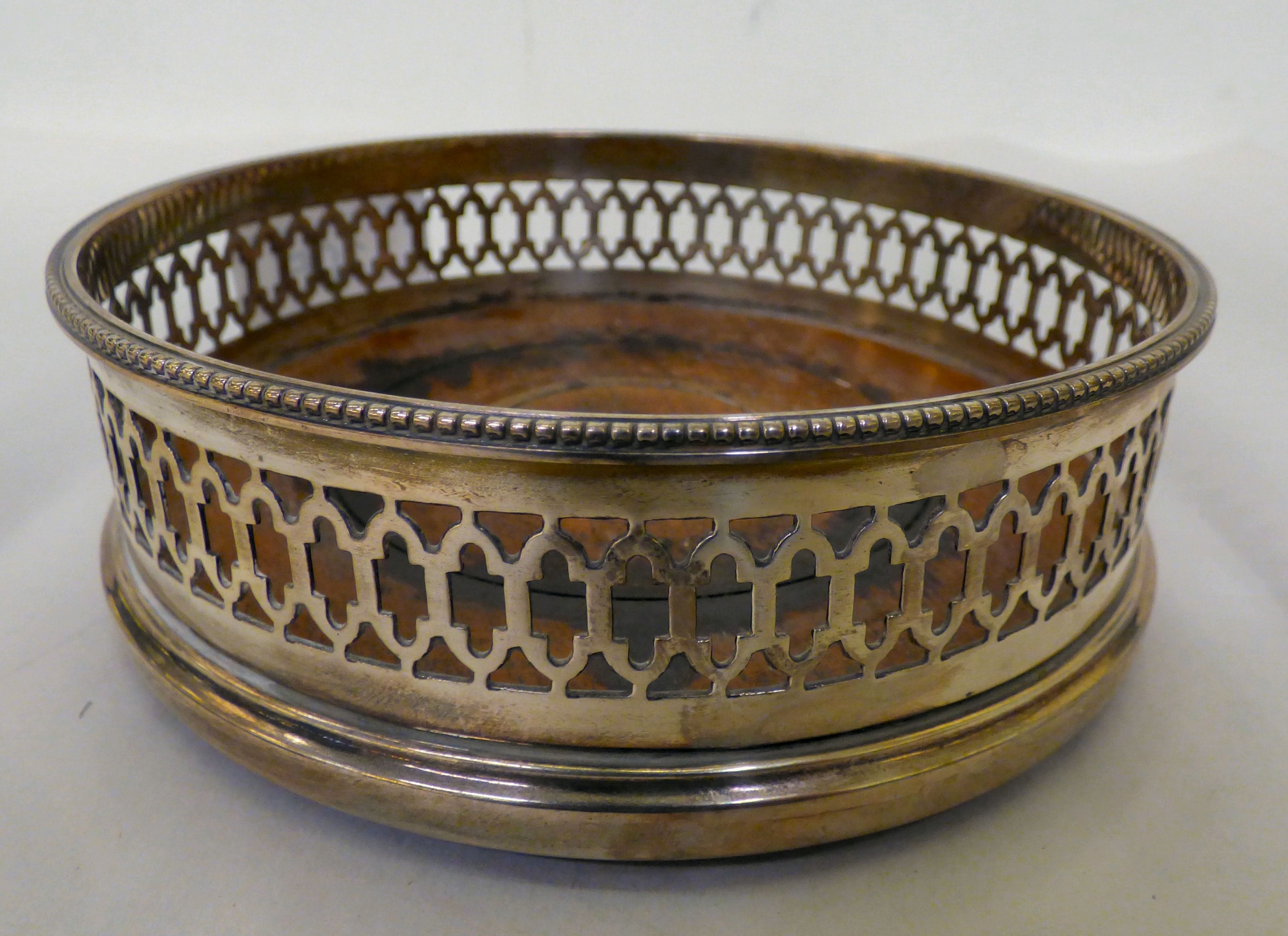 Silver collectables: to include a wine bottle coaster with a turned wooden base indistinct London marks 5"dia