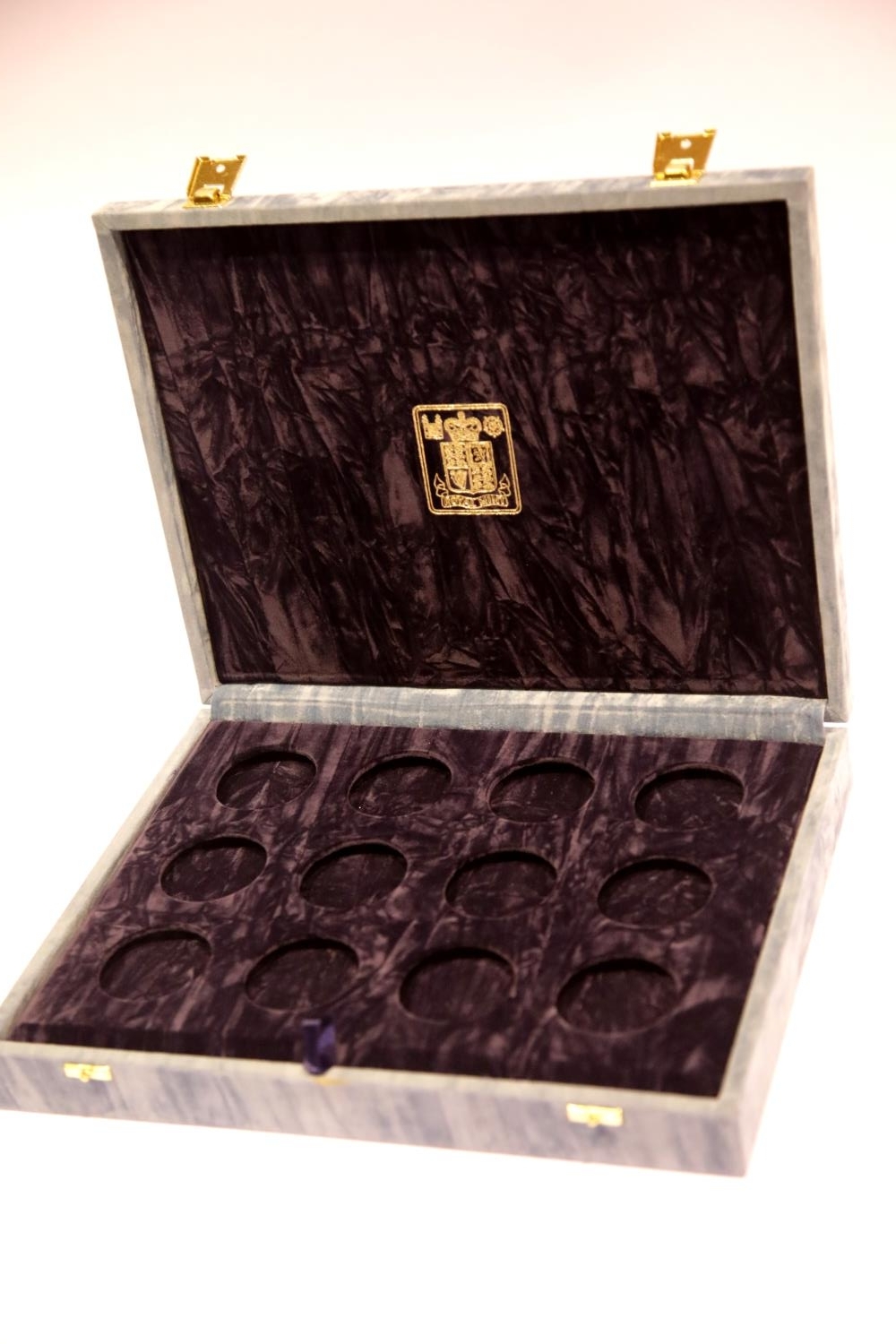 Velvet lined 24 crowns collectors box. P&P Group 2 (£18+VAT for the first lot and £3+VAT for subsequent lots)