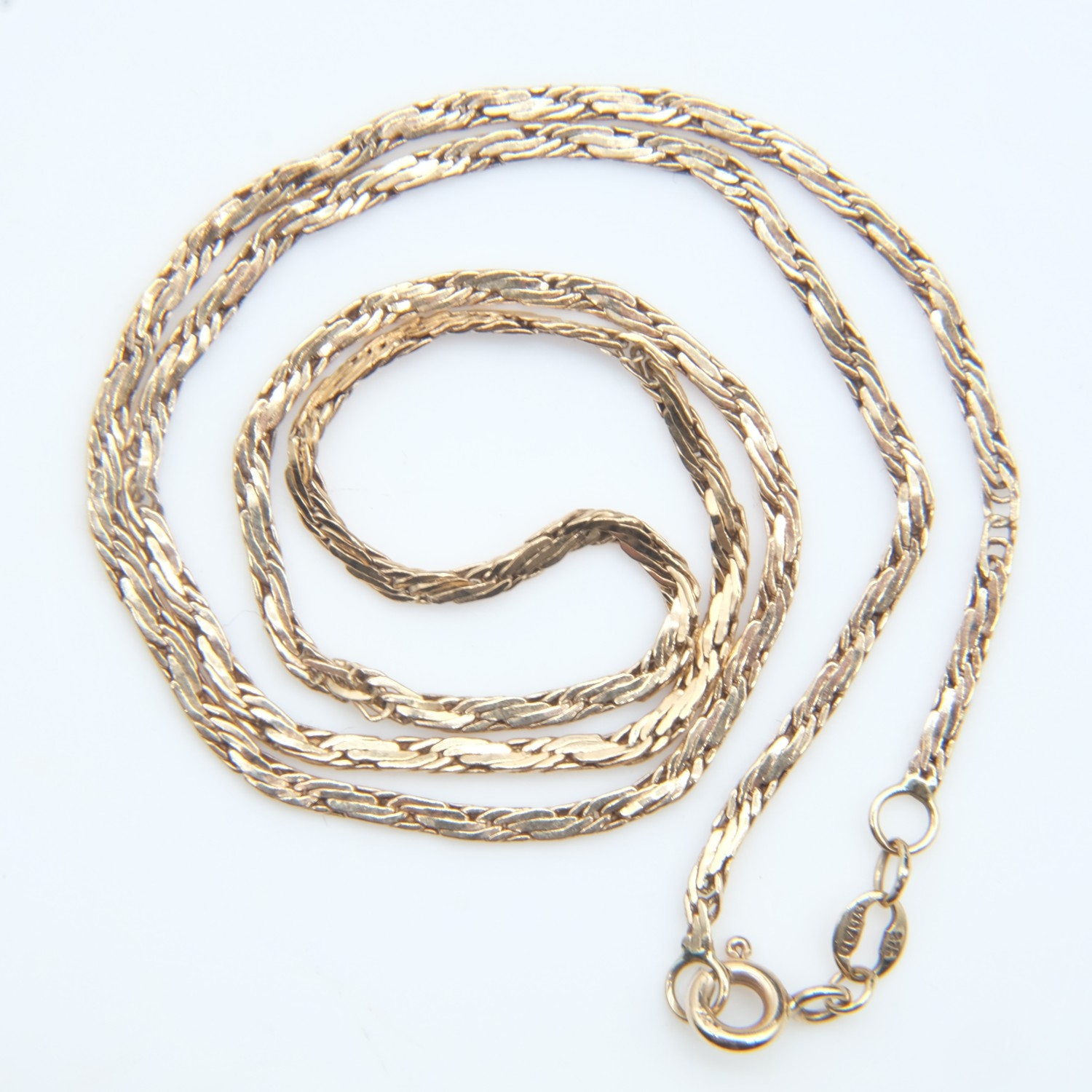 9ct gold neck chain, some kinks throughout, L: 40 cm, 4.0g. UK P&P Group 0 (£7+VAT for the first lot and £1+VAT for subsequent lots)