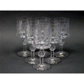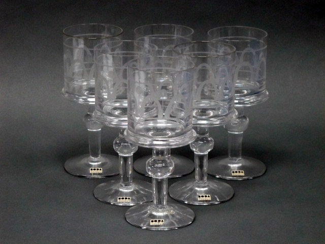 A Set of Six Boda Afors Bruk, Sweden Goblets, with etched bowls and raised on knopped stems and circular feet, paper labels for Boda and Bertil Vallien, 18cm high. (6)