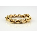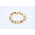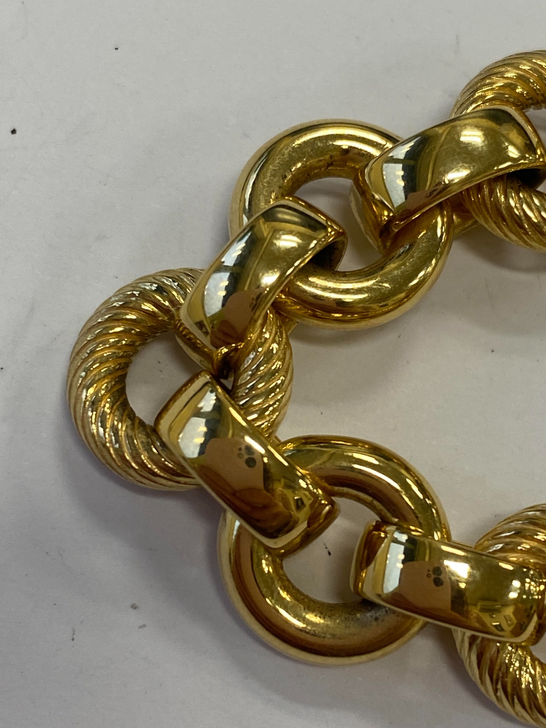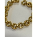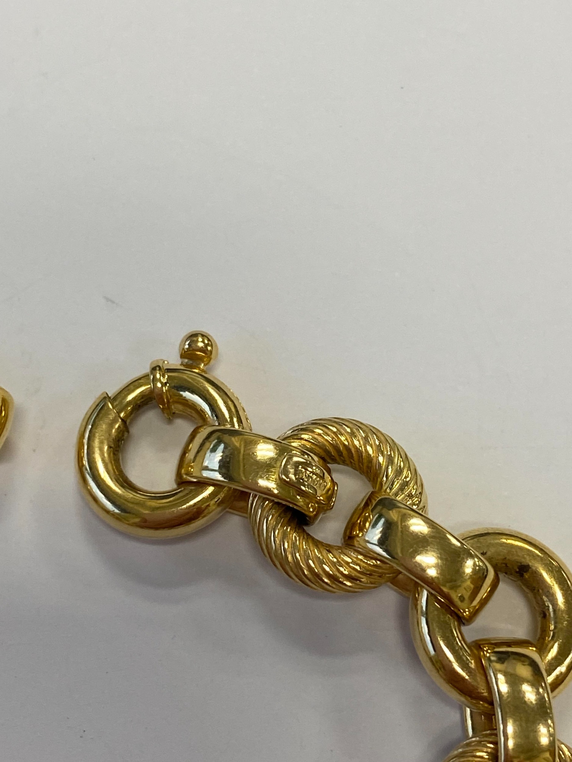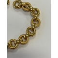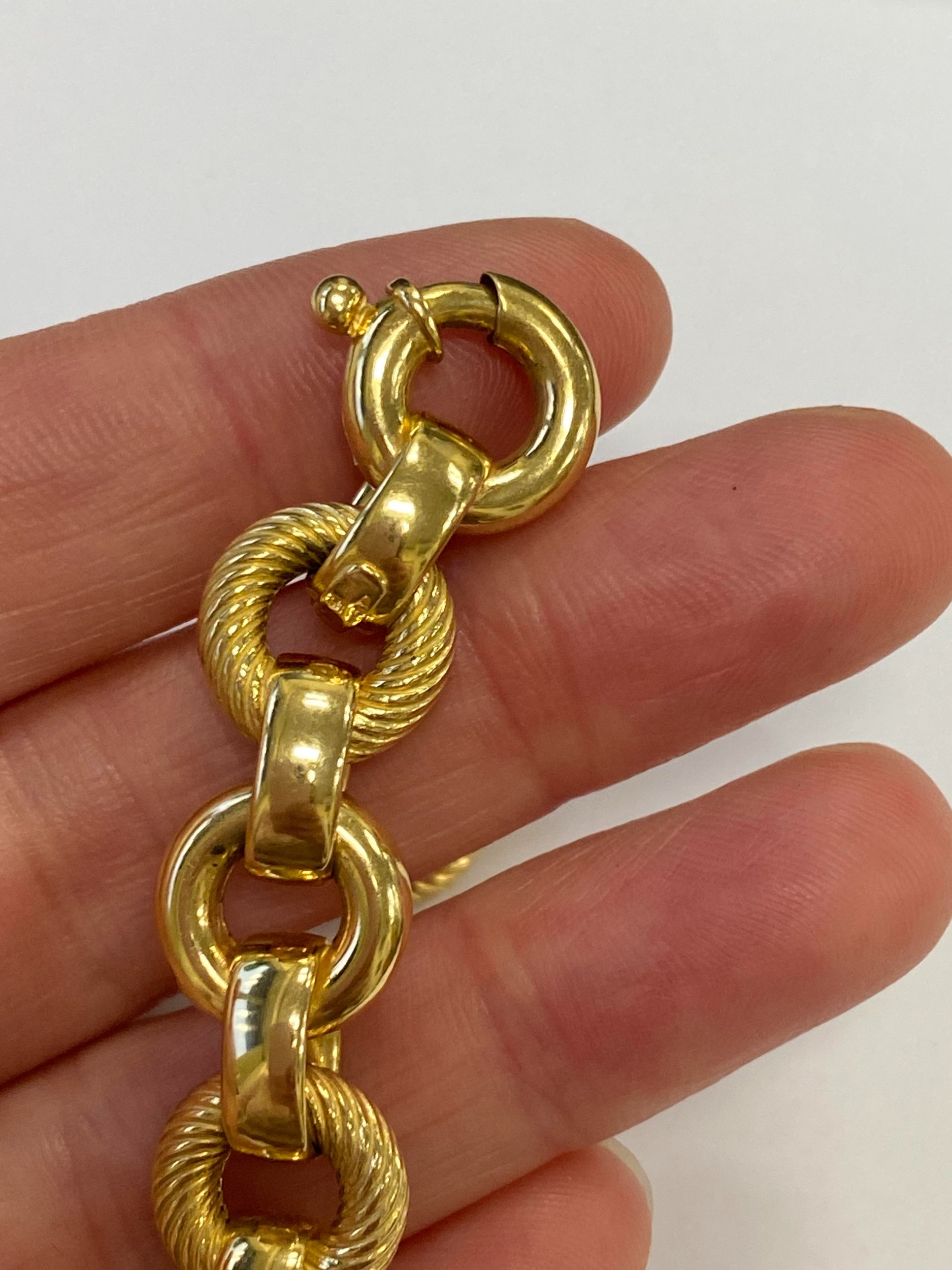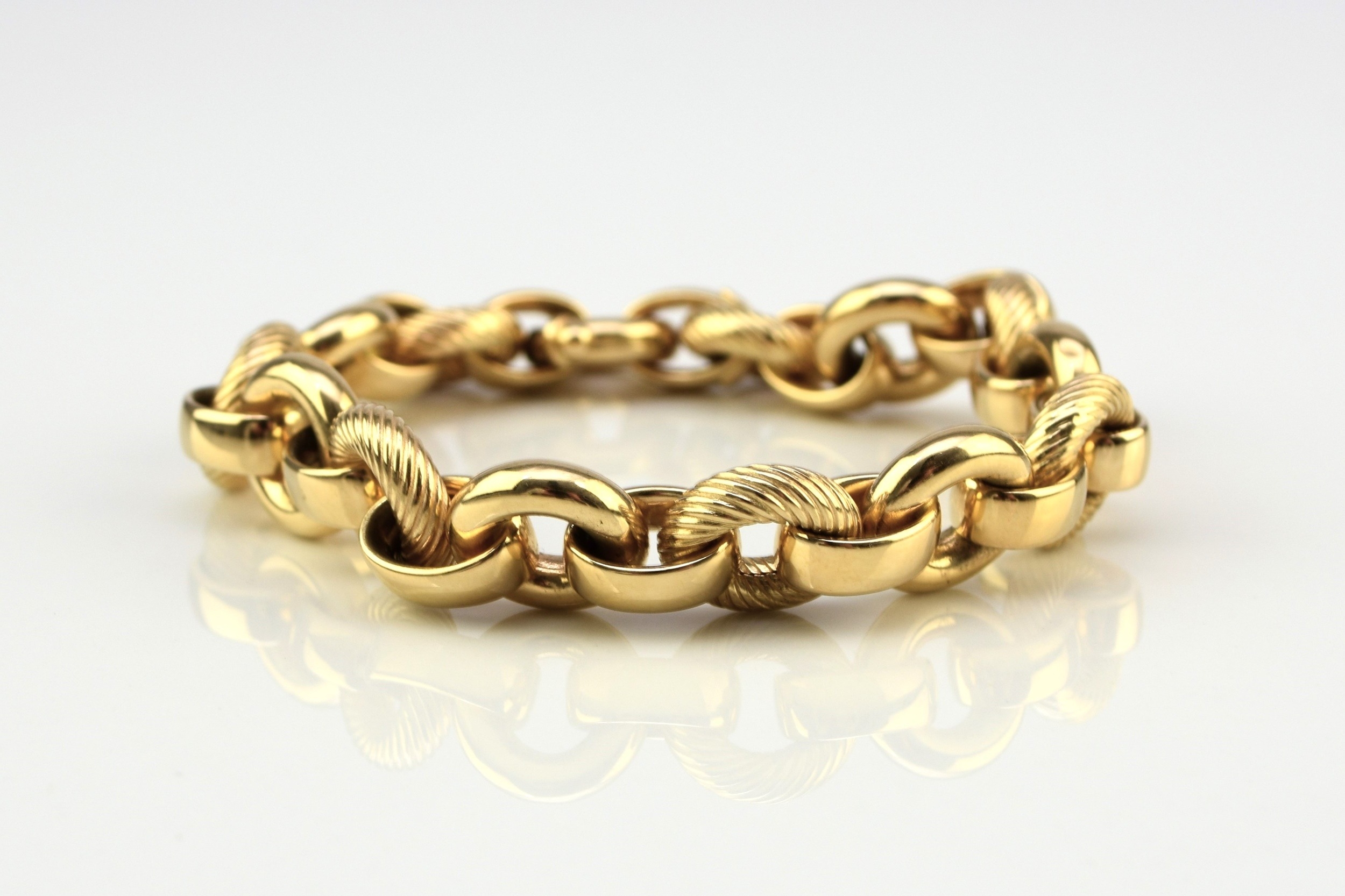 An Italian 18ct yellow gold bracelet, formed of alternating textured and polished hollow circular links with bolt ring clasp, 19.5cm long, weight approx 28.1g Condition:Clasp in good working order and secure, a couple of very small dings but other than this just general wear, refer to images