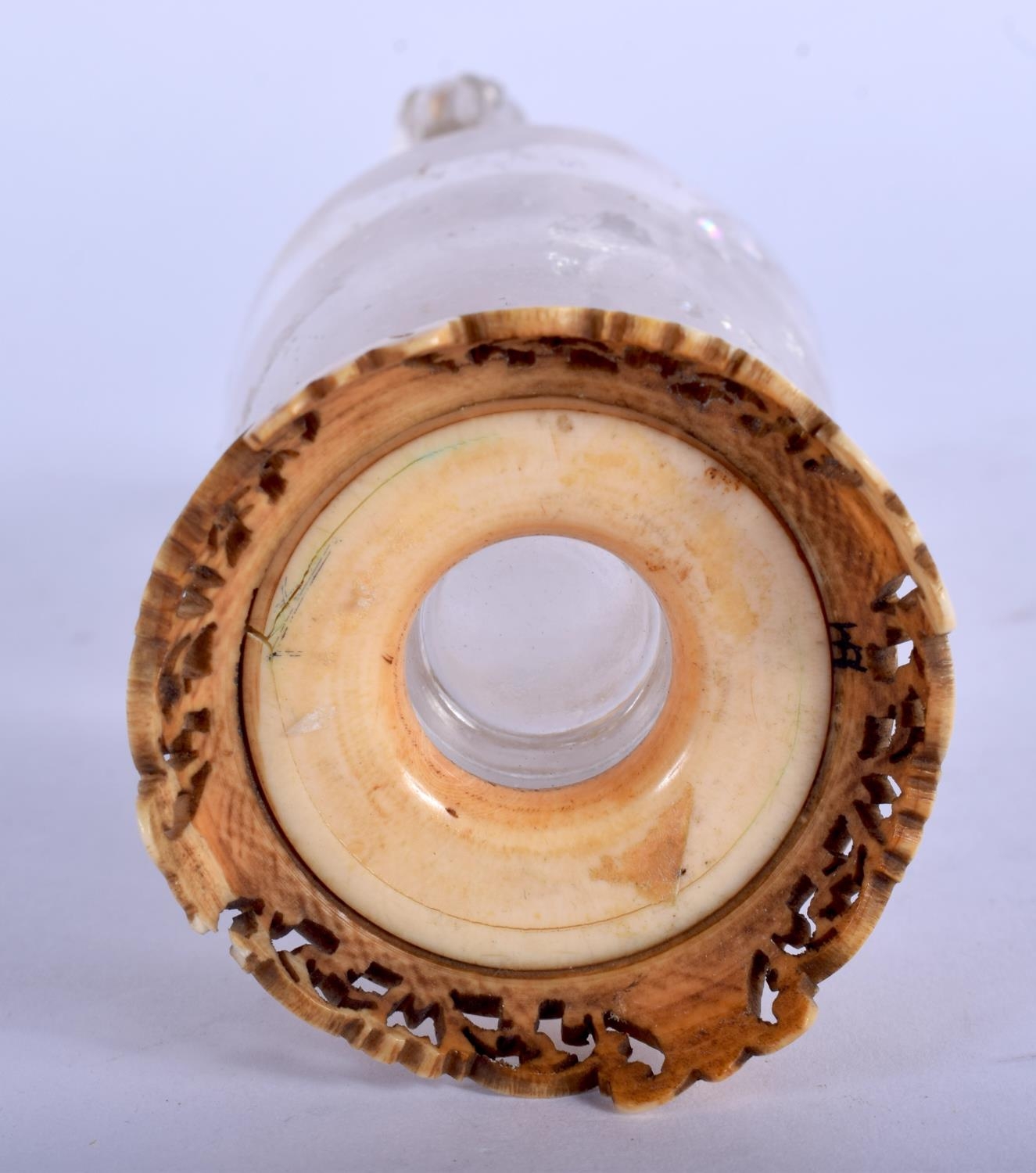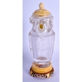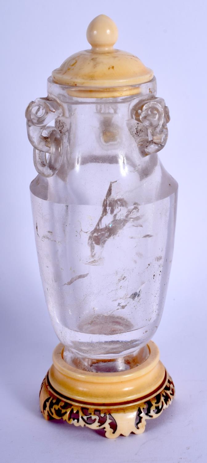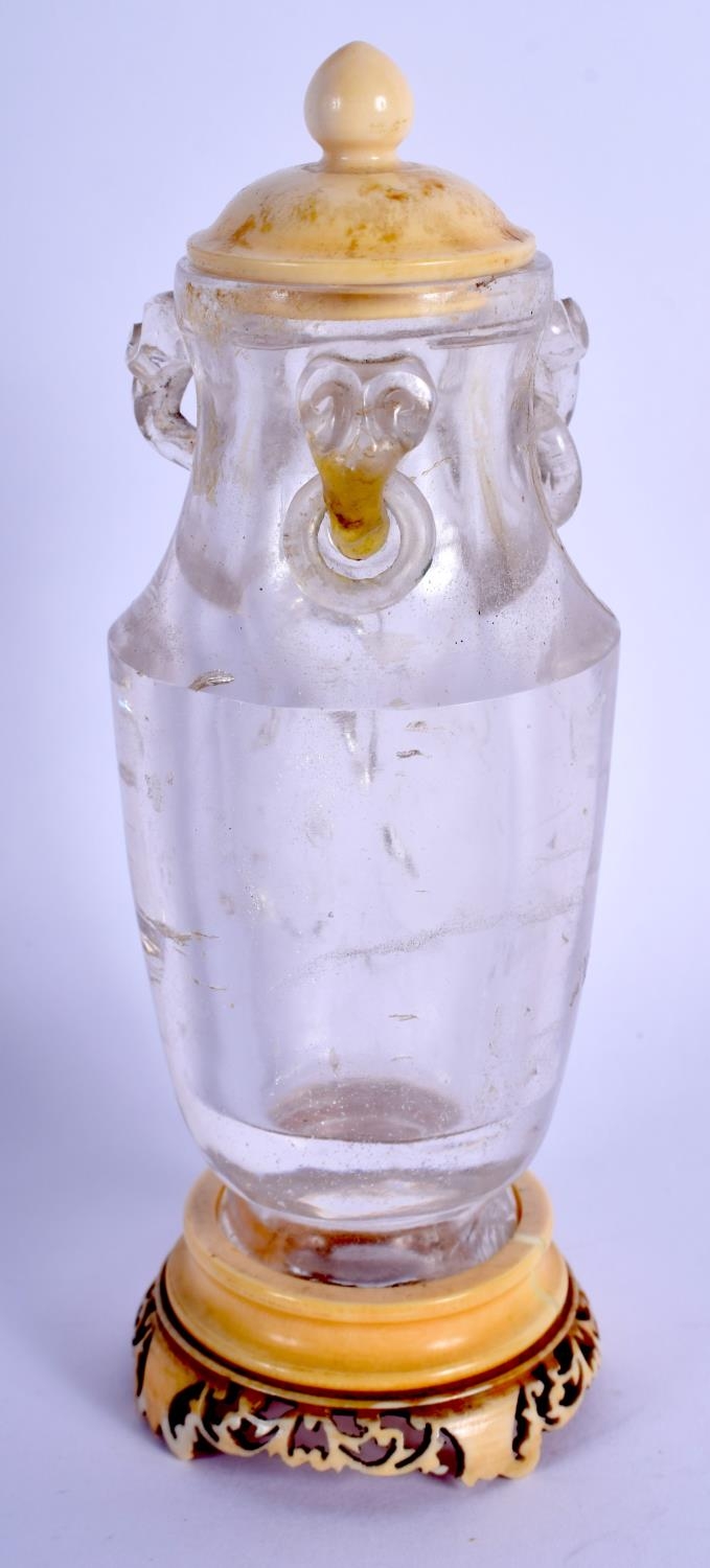 A VERY RARE 18TH CENTURY CHINESE CARVED ROCK CRYSTAL VASE AND COVER Qianlong/Jiaqing, with ivory fittings. 13 cm x 4 cm.