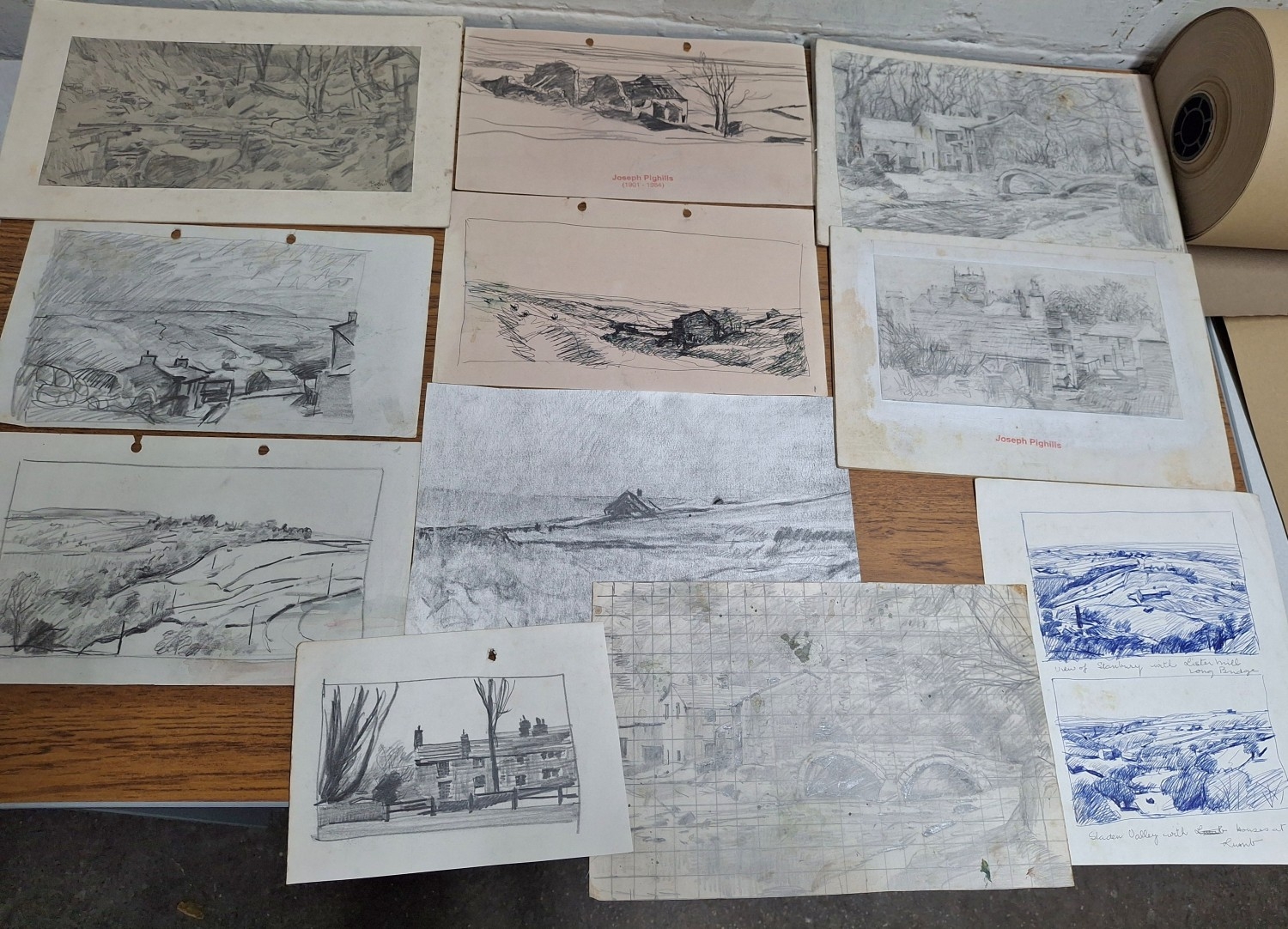 Approx 11, Joseph Pighills (Yorkshire 1901-1984) pen & ink or pencil and prep sketches, mainly landscapes, all unframed (11).