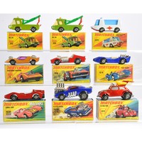 Matchbox Superfast comprising nine boxed issues as shown. Woosh n Push, Iso Grifo, Big Banger etc. Mostly very good or excellent in mostly very good/excellent boxes. Generally Ex-Shop Stock.