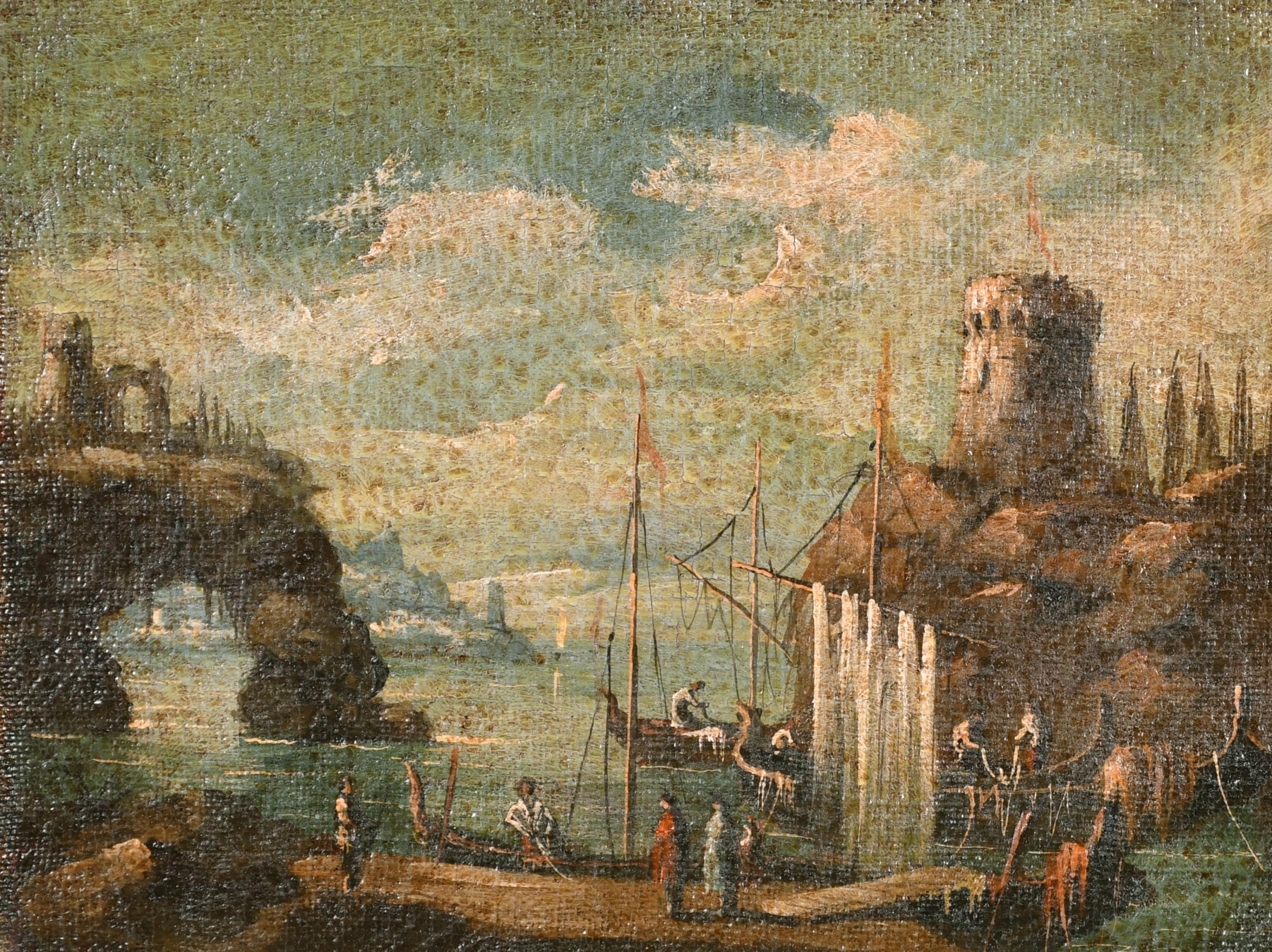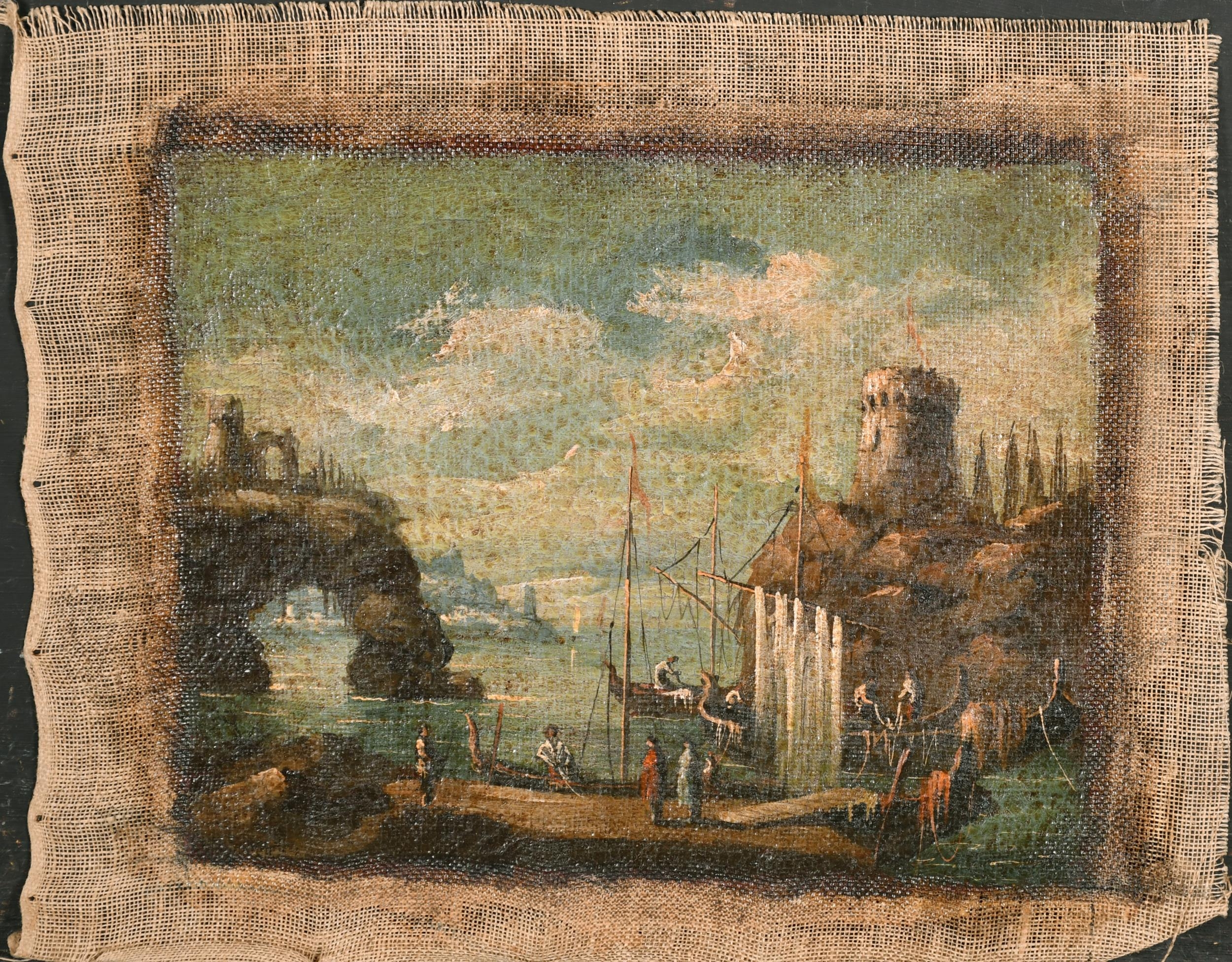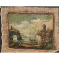 20th Century Italian School. A Capriccio Coastal Scene in the manner of Francesco Guardi, Oil on unstretched canvas, 9.25" x 12" (23.5 x 30.5cm) and the companion piece, a pair (2)