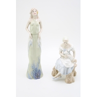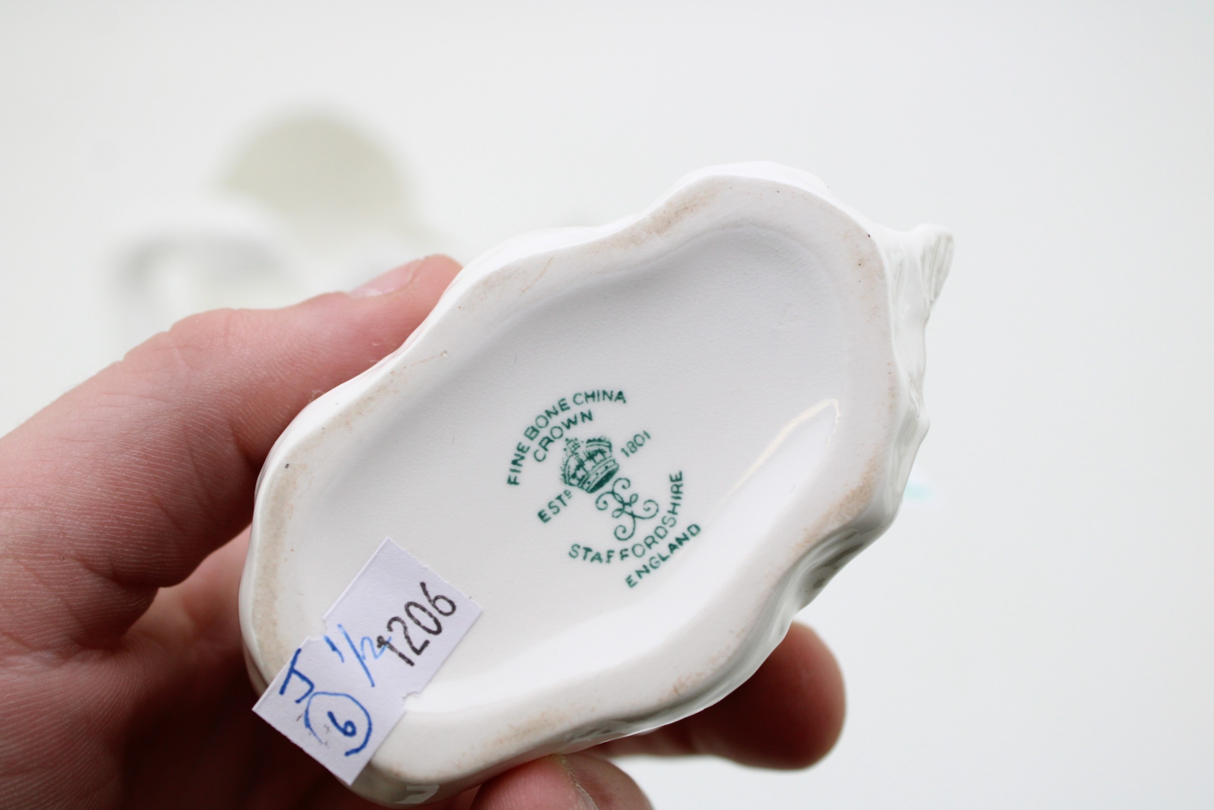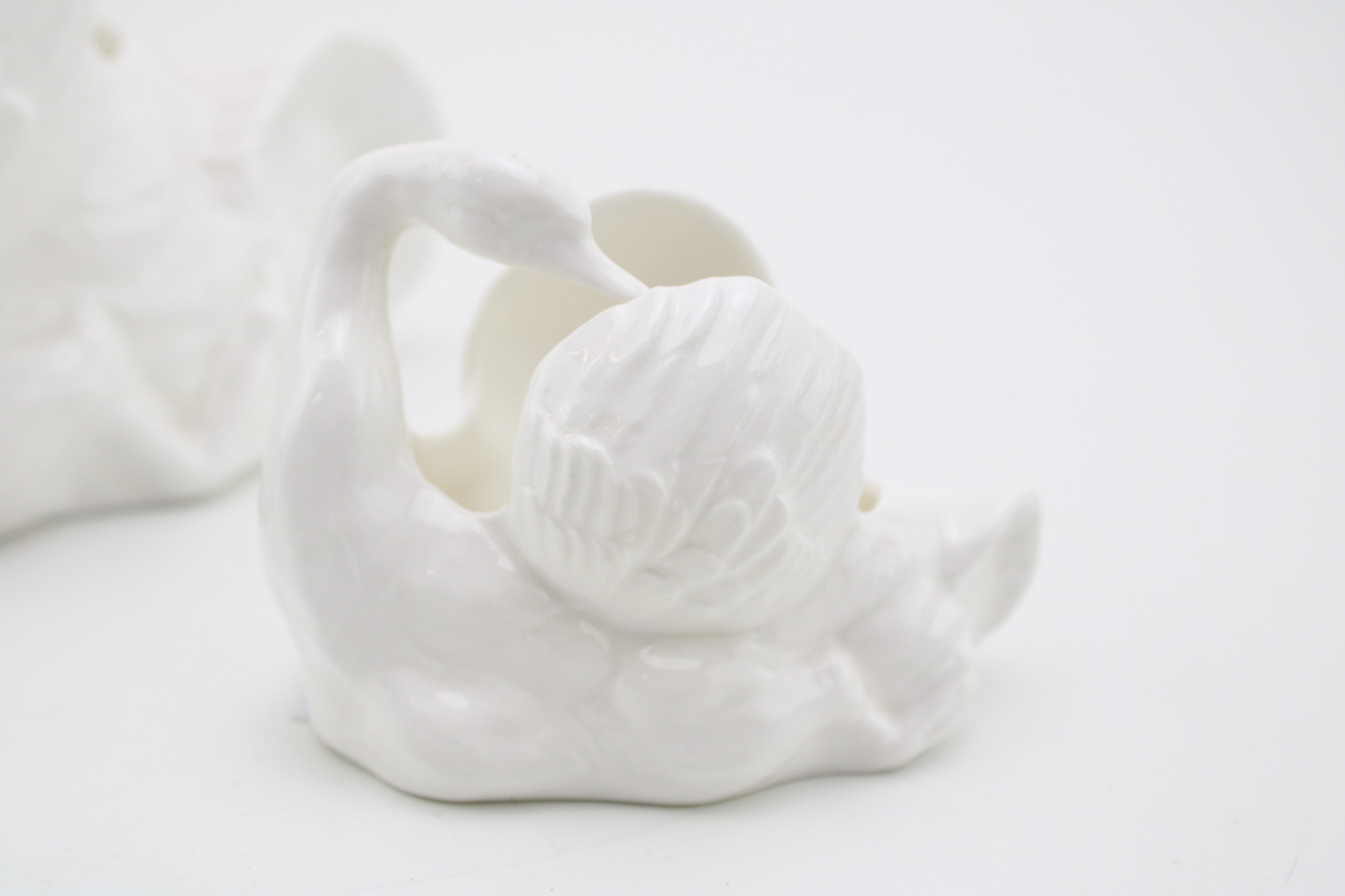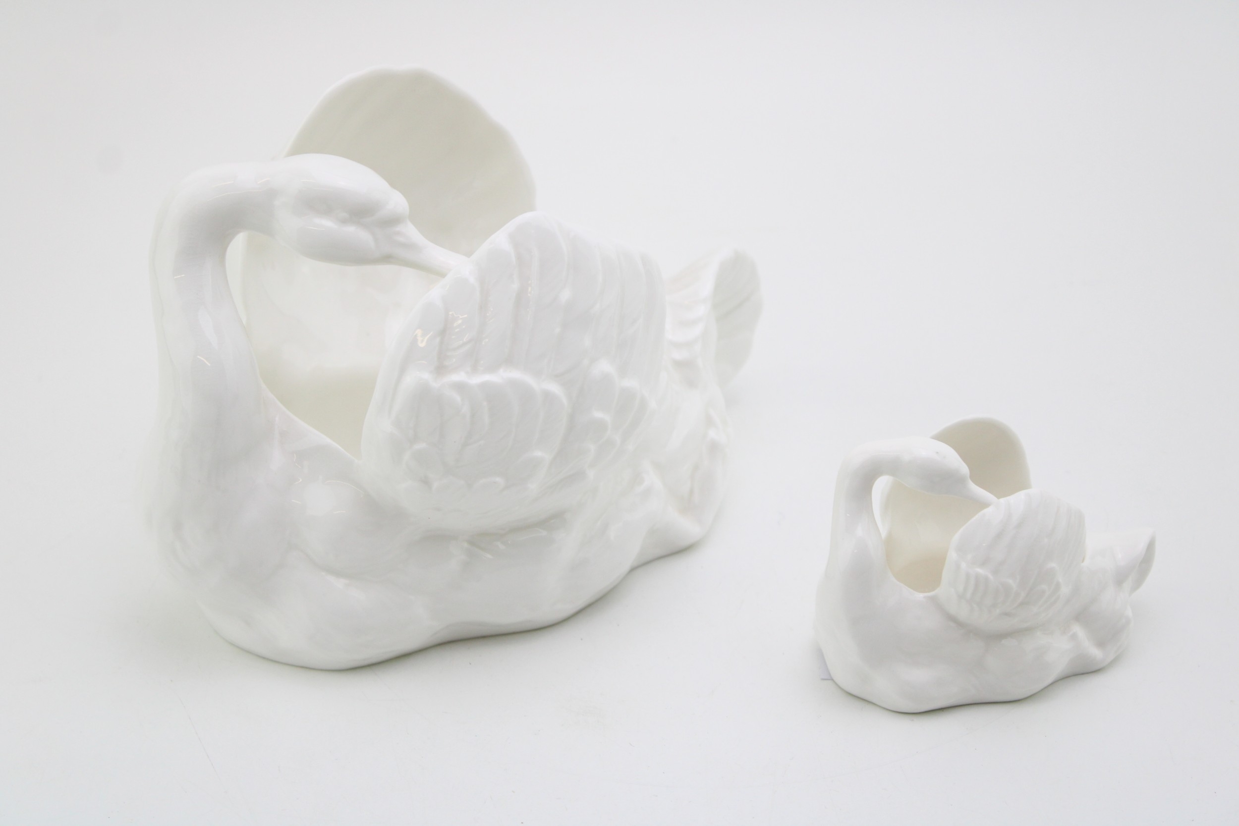 Crown Staffordshire ceramic swan together with another smaller example, 13cm tall, (2).