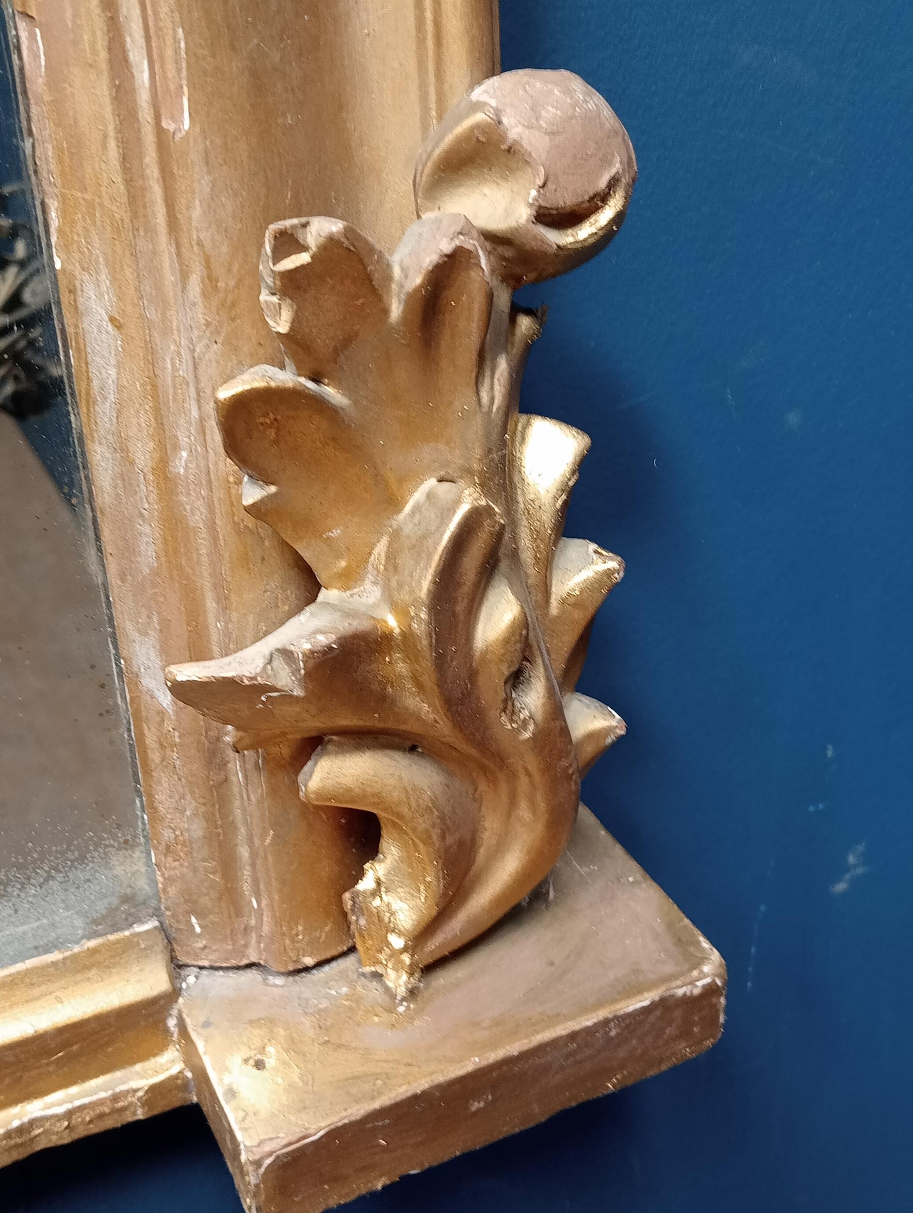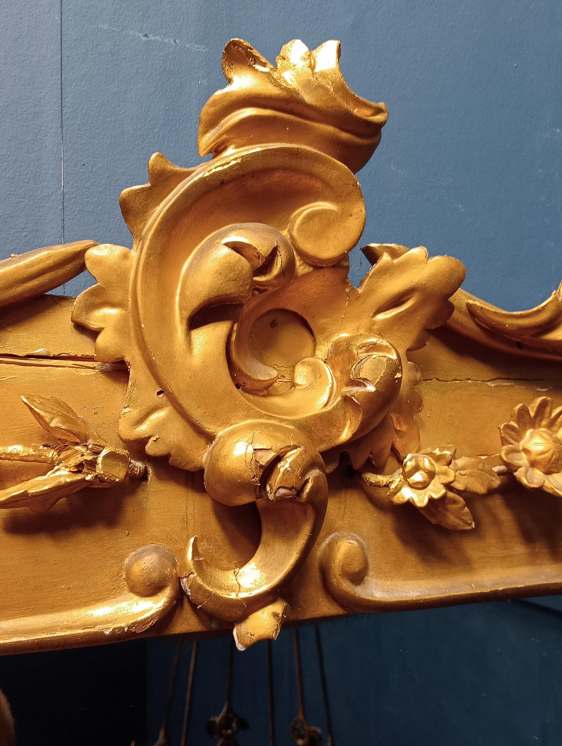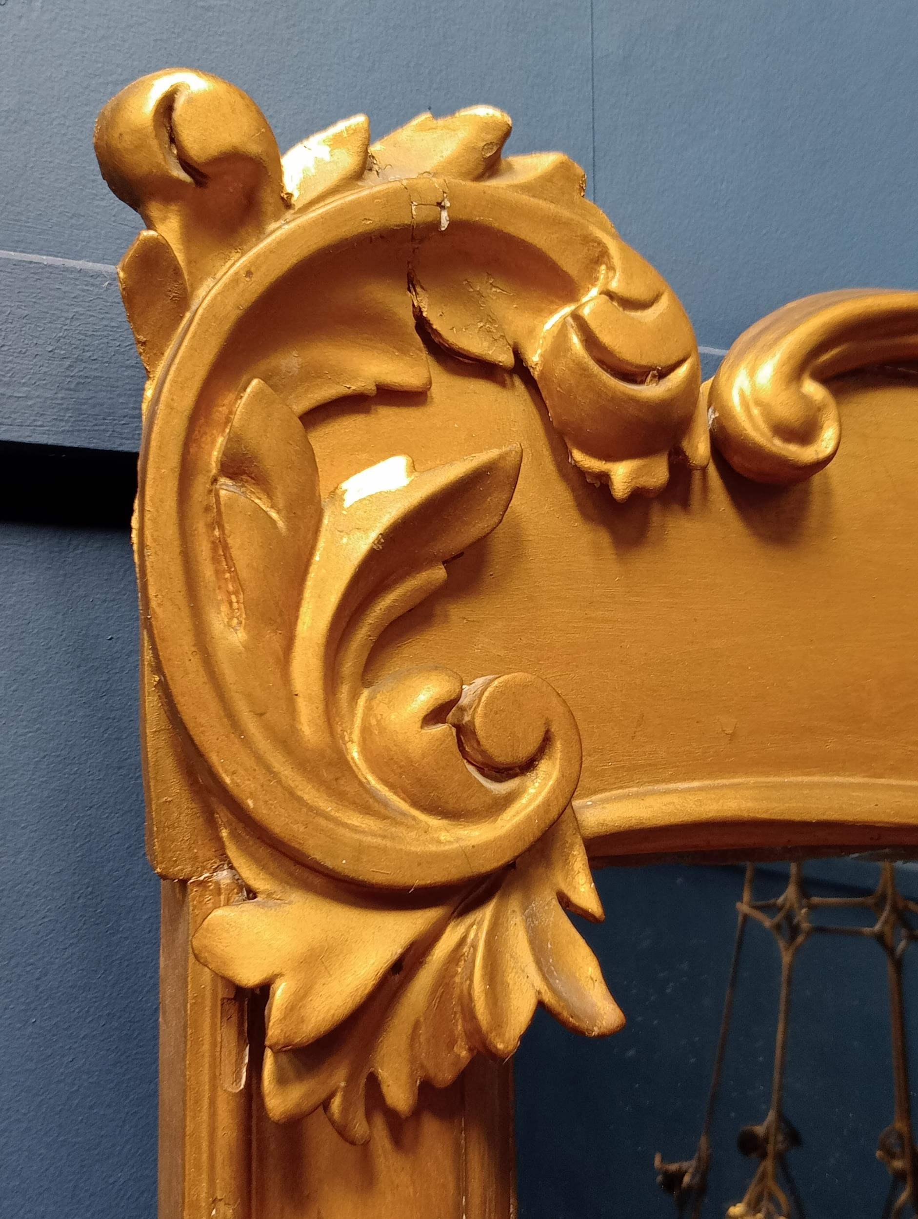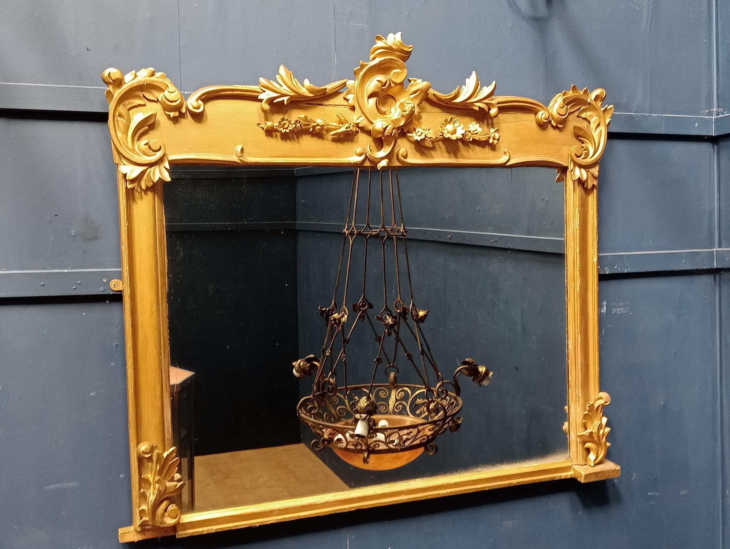 Gilt overmantle mirror with foliate surmount {H 108cm x W 122cm }. - NOT AVAILABLE TO VIEW IN PERSON