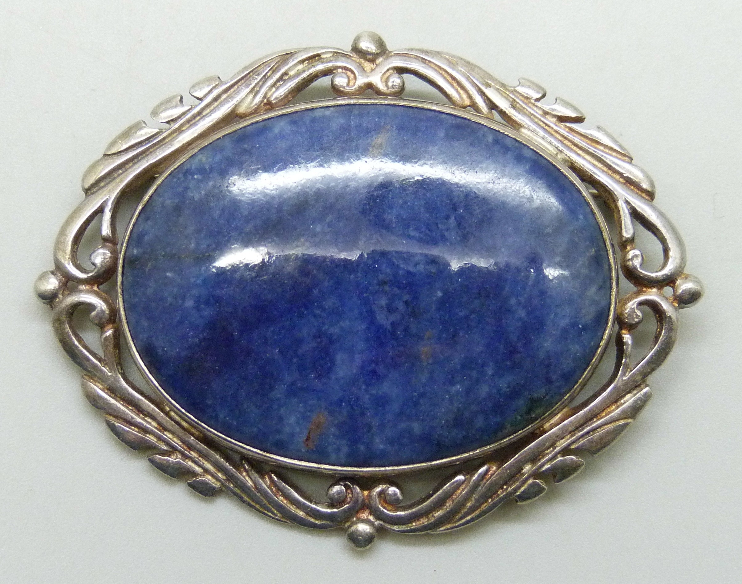 Malcolm Gray, a 1970s Scottish silver and blue stone brooch, hallmarked Edinburgh, 1976, 5.5cm