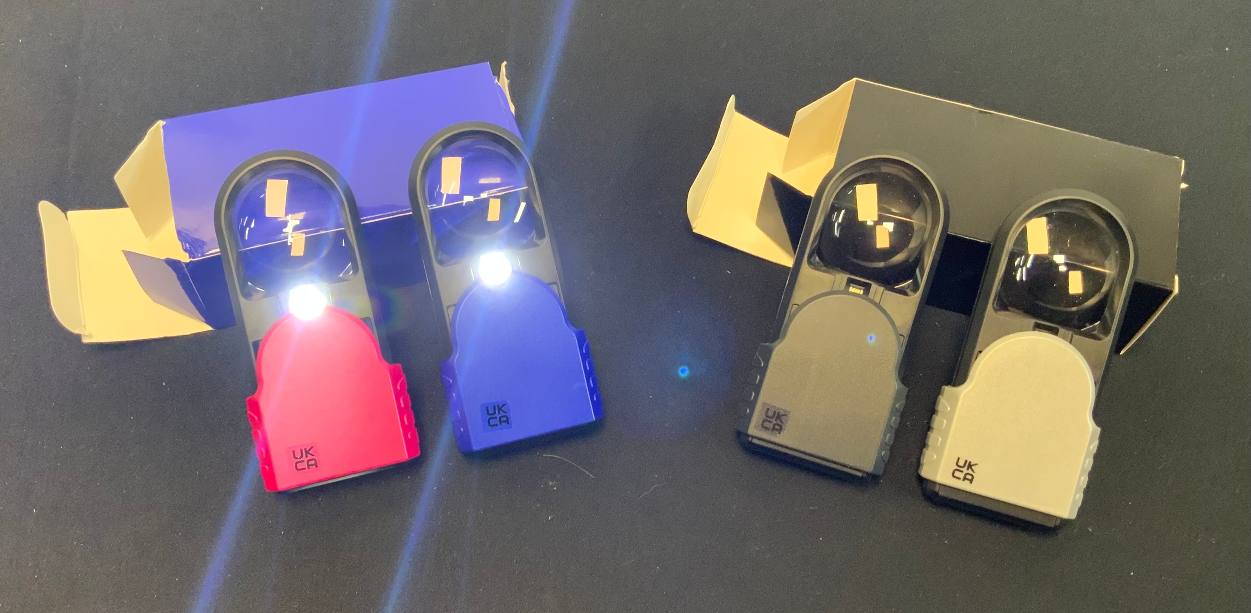 2 BOXES BLUE & BLACK LIGHT MAGNIFIER GLASS(1 REUIRES BACK )