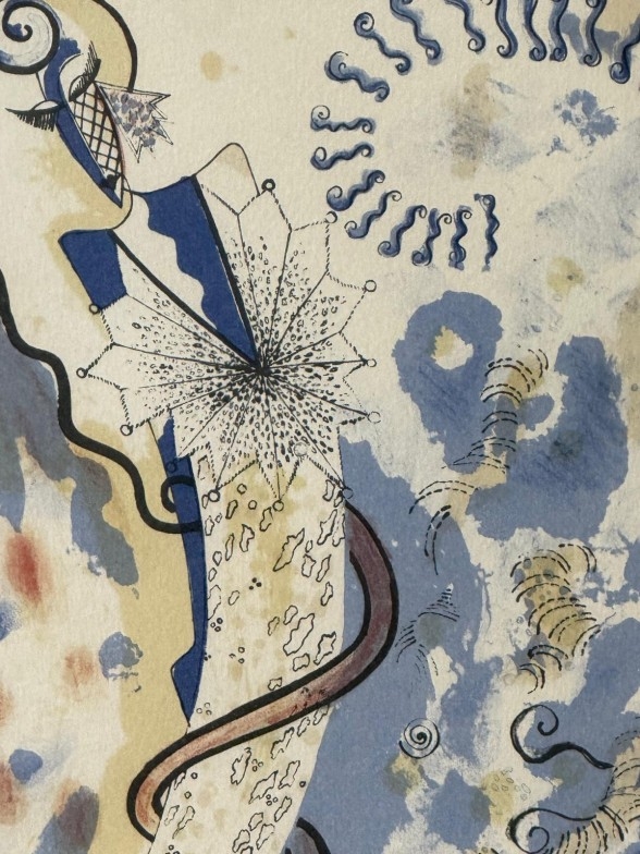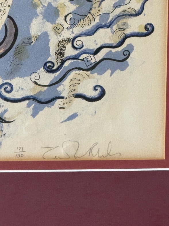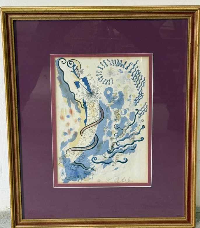 An abstract signed limited edition print by Zandra Rhodes signed lower right 50cm x 60cm