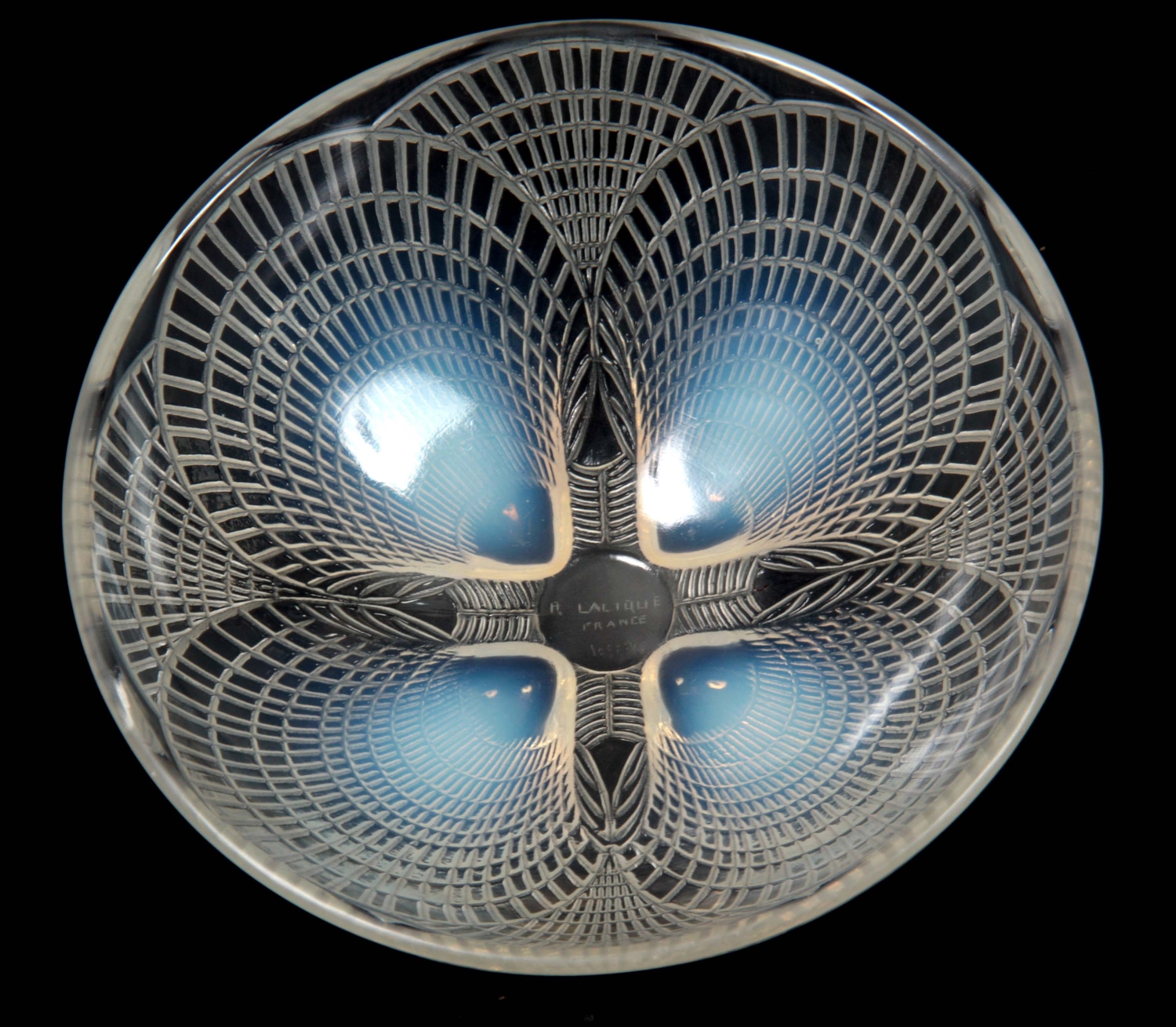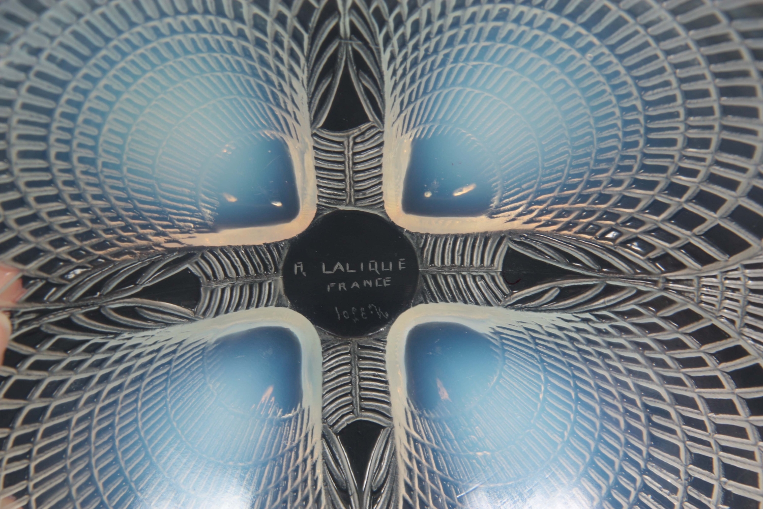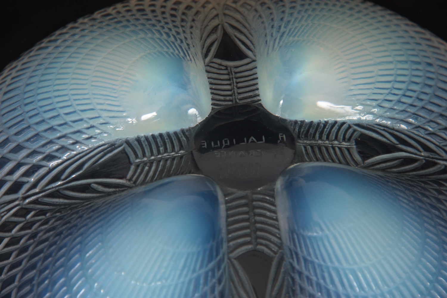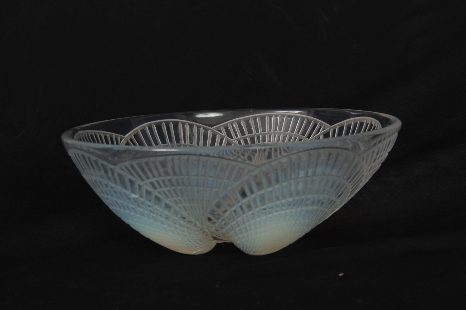 RENE LALIQUE. AN EARLY 20th CENTURY OPALESCENT 'COQUILLES' GLASS BOWL moulded with four scallop shells, signature to centre 21cm diameter