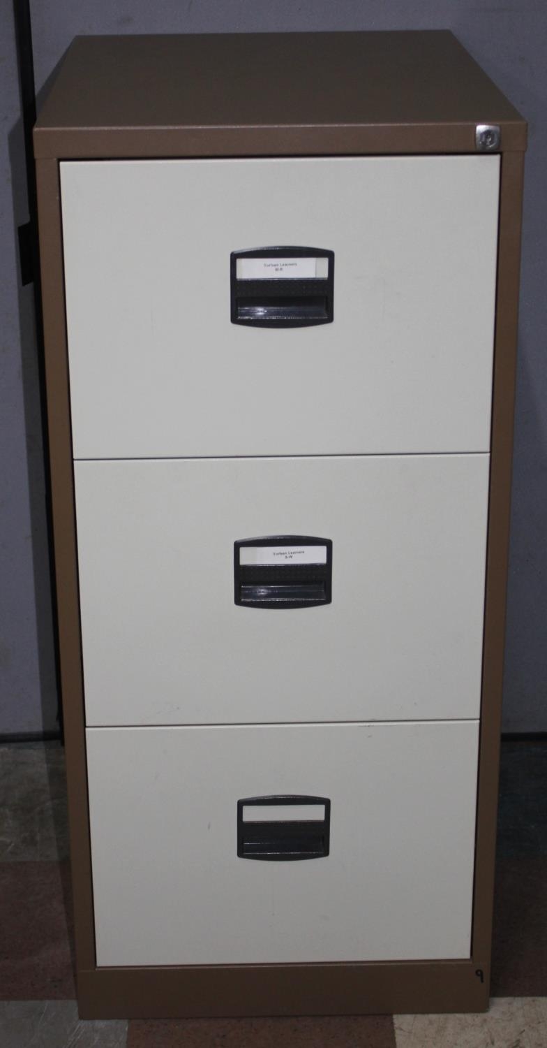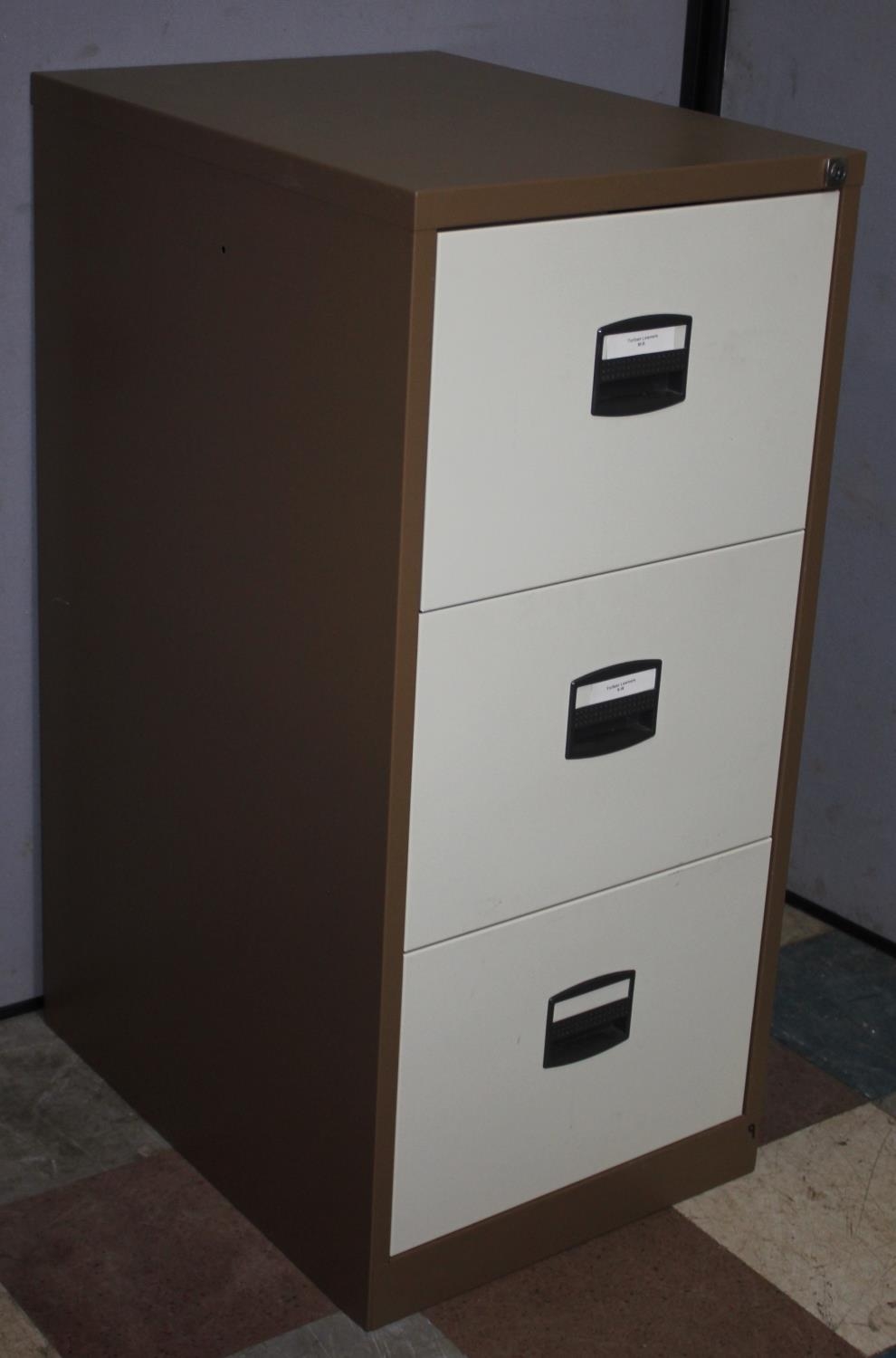 3-DRAWER BROWN AND CREAM FILING CABINET WITH KEY