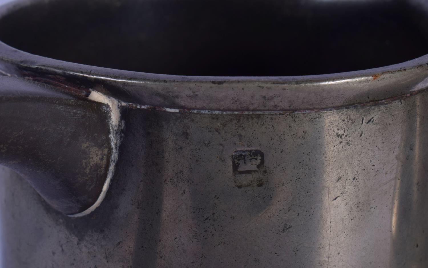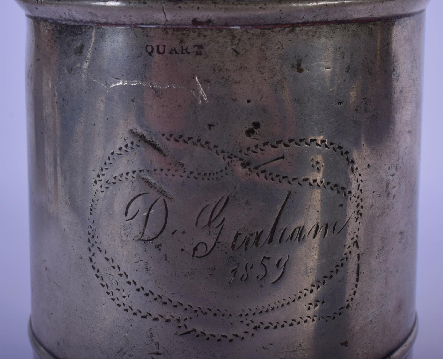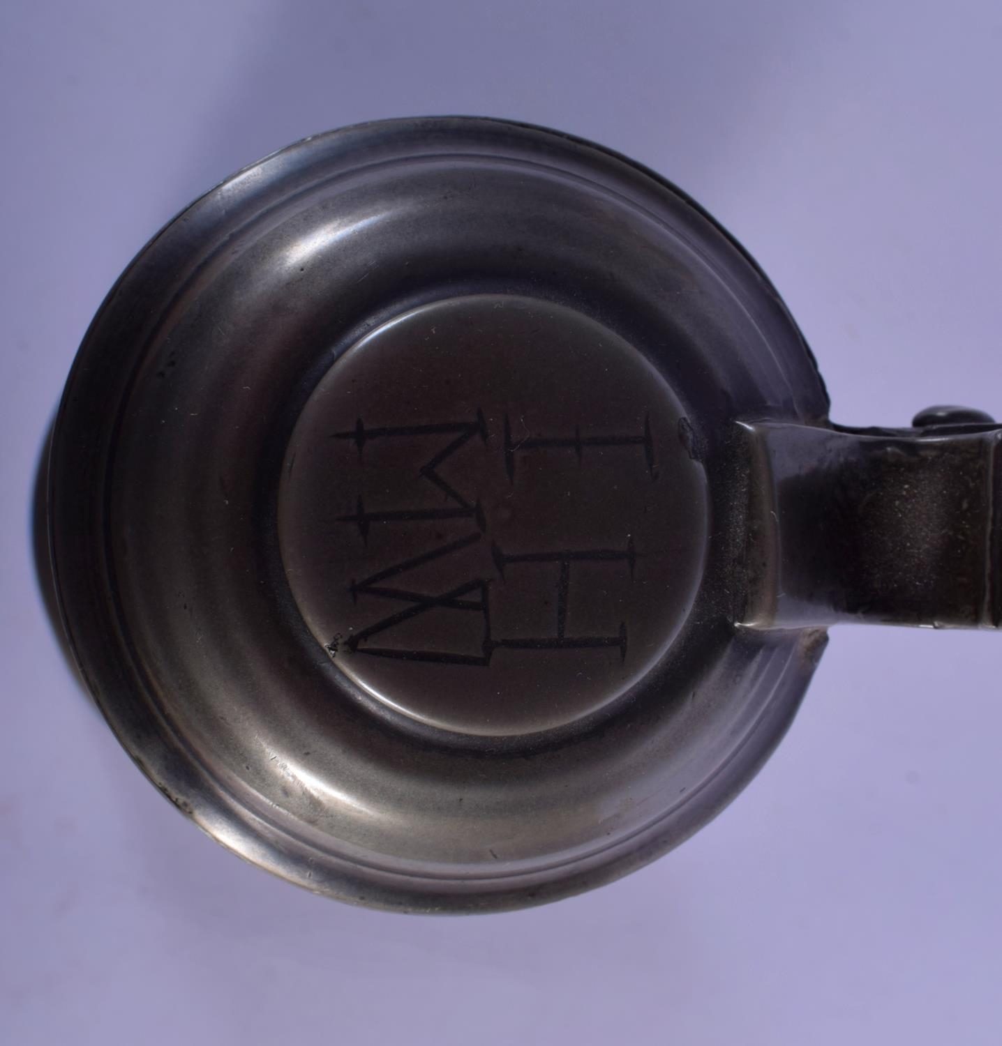 A MID 19TH CENTURY PEWTER TANKARD and a tappit hen. Largest 25 cm high. (2)