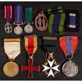 A George V Imperial Service Medal to Richard Thomas Henry Monk:, a silver and enamel Order of St John and a silver and red enamel Masonic Knights Templar Cross, both by Kenning & Son , London, three miniature medals etc.
