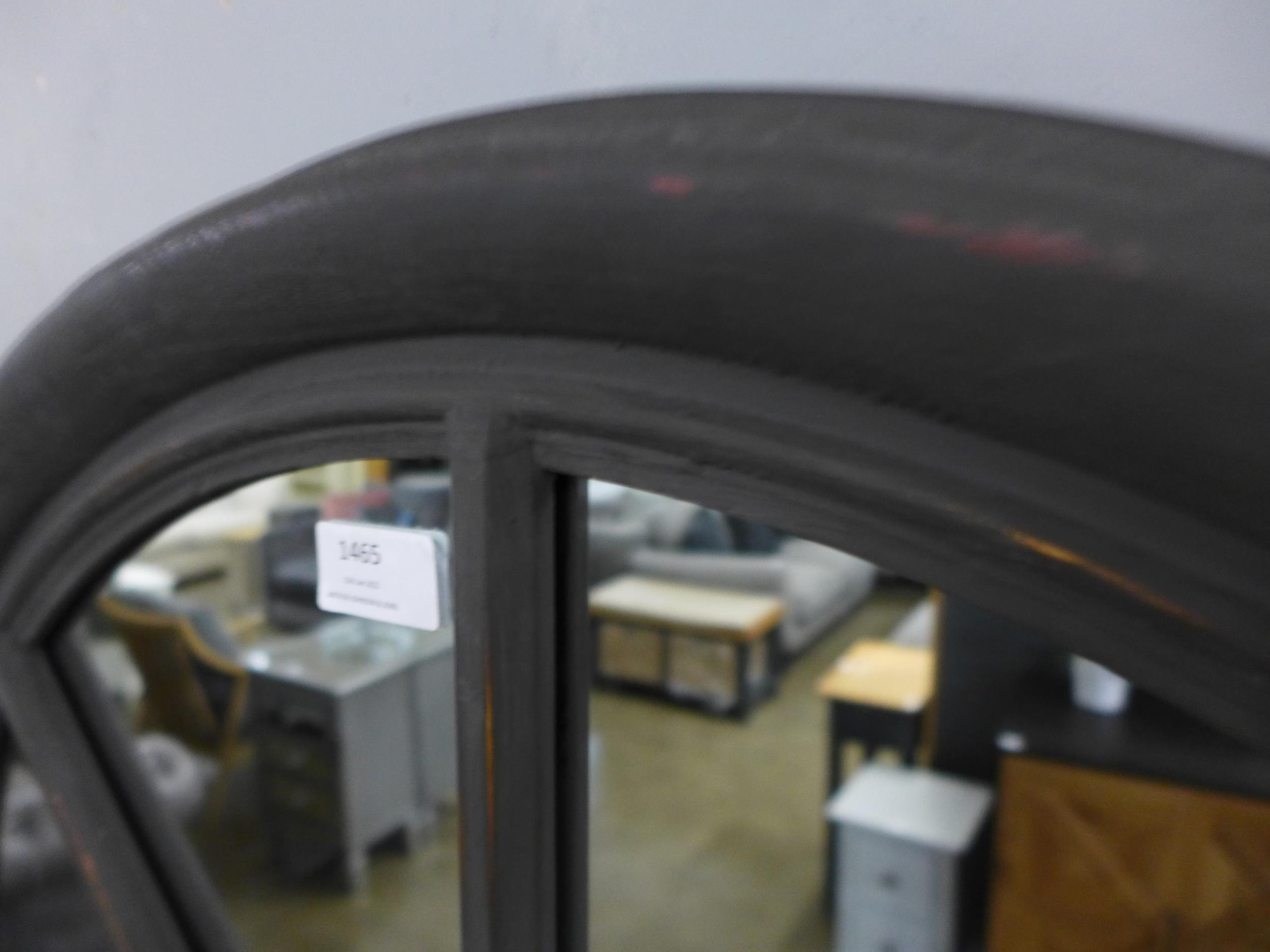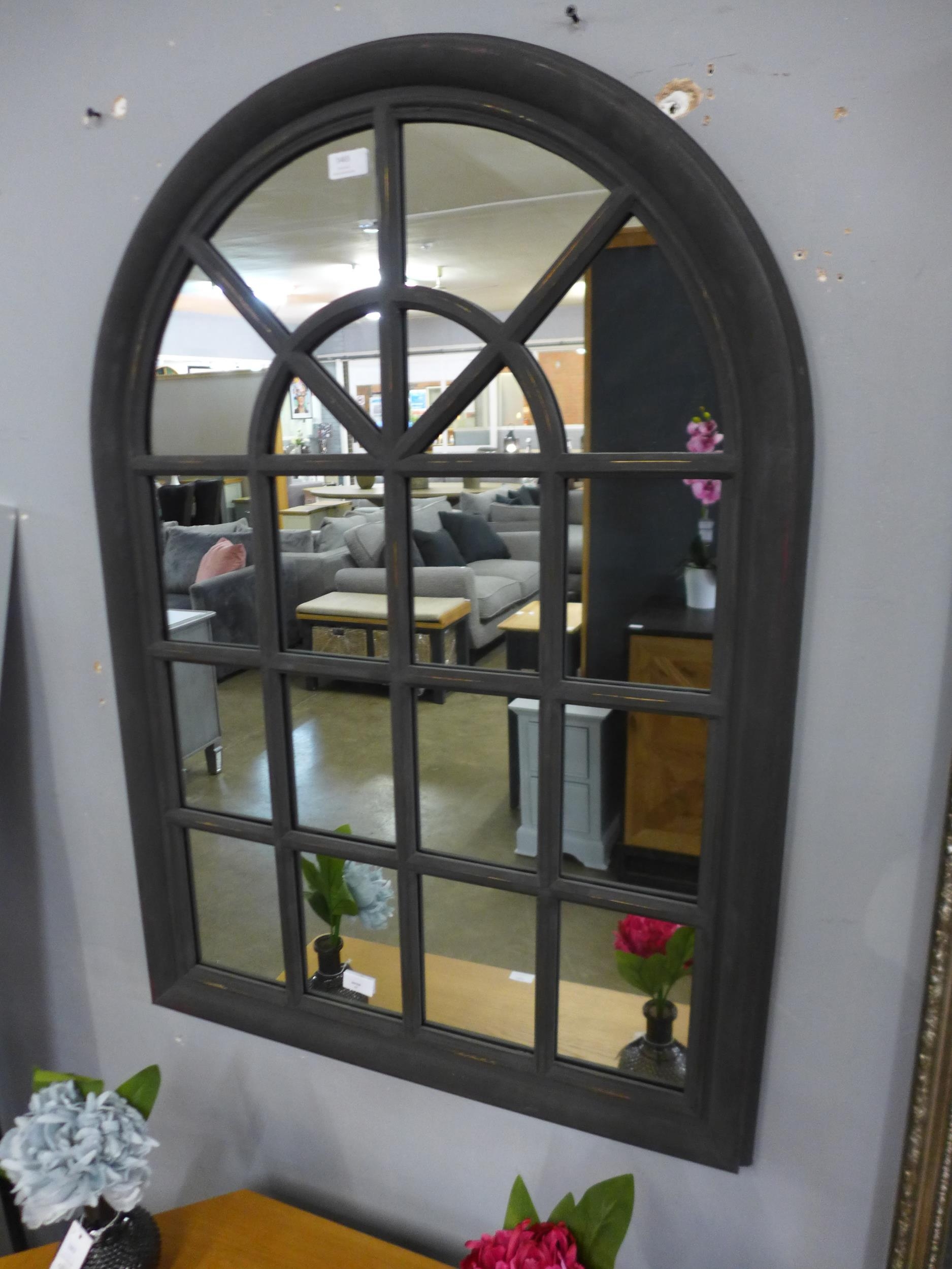 A rustic dark grey arched window mirror, H104cms x W73cms (M40055) #