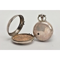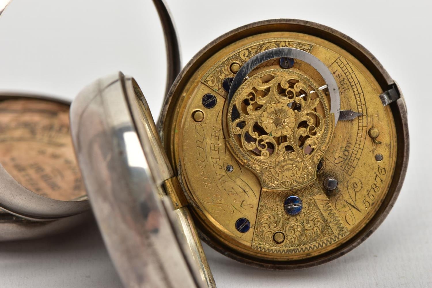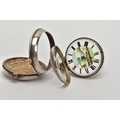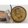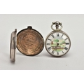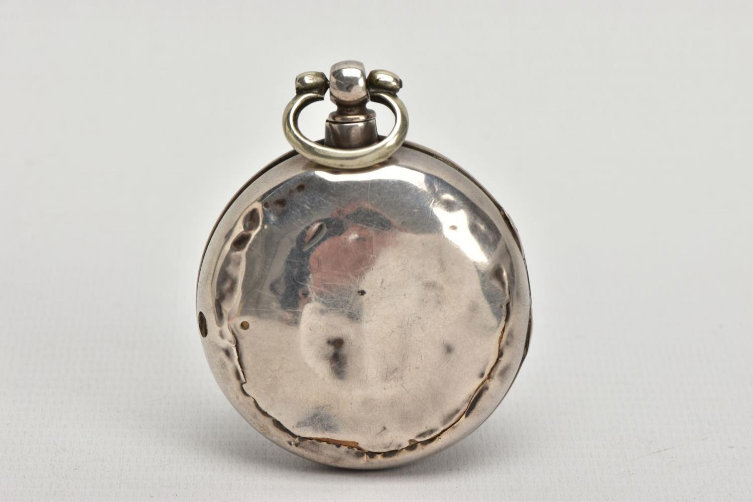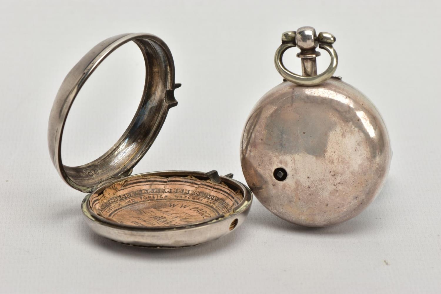 A PAIR CASED 'FARMERS VERGE' OPEN FACE POCKET WATCH, round white ceramic dial hand painted with a farming scene, Roman numerals, white metal hands, within a plain polished silver case, case back hallmarked London 1869, movement signed 'Brown Newark N55873, approximate case width 48.1mm, outer plain polished case has some damage to the reverse, also hallmarked London 1869, approximate total gross weight 141.0 grams (condition report: some slight surface scratches to the glass, dial in good condition, the outer case has a large split and dents to the back, some slight tarnishing in places, not tested)