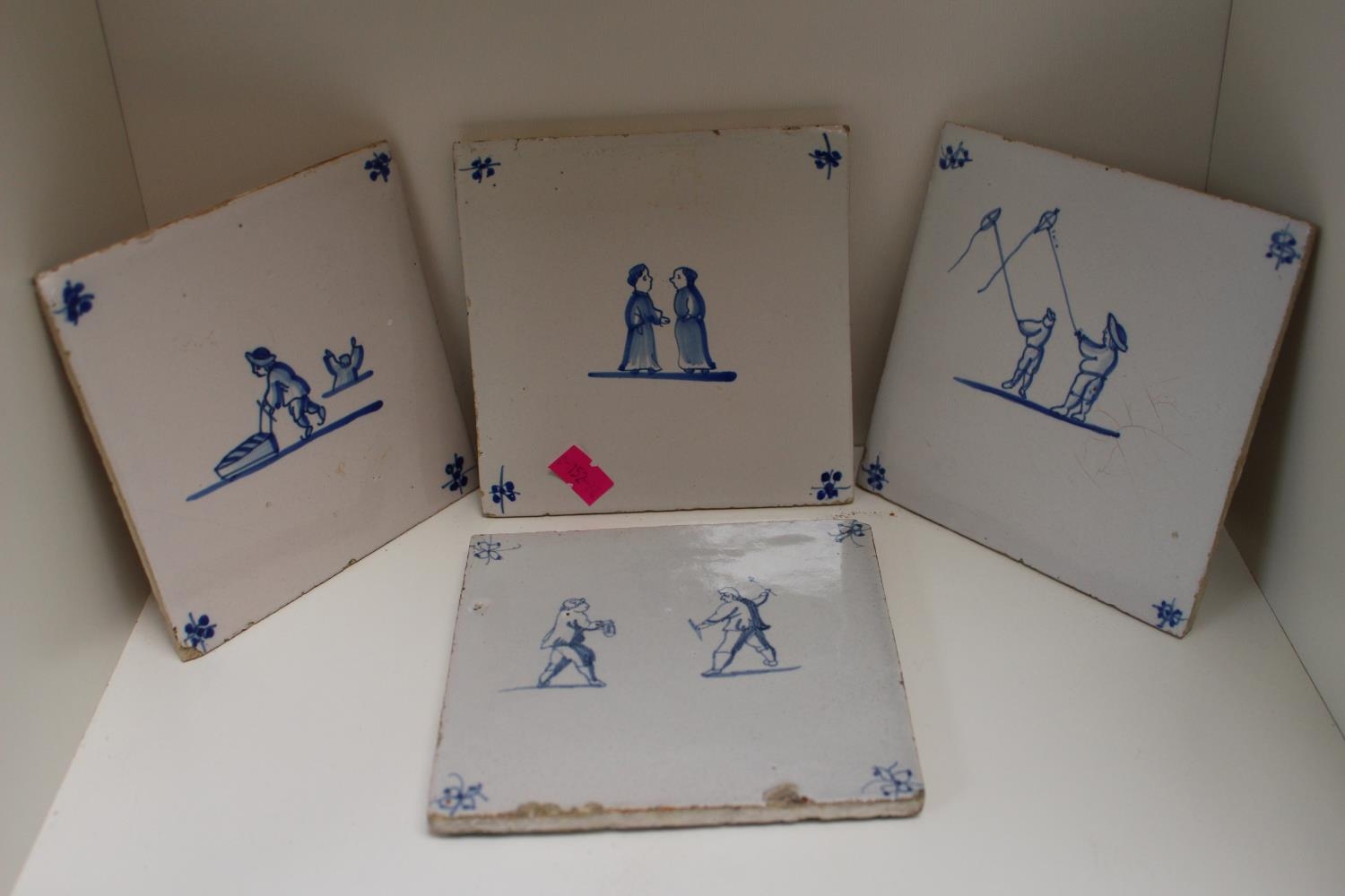 18thC Delft Tile and 3 other later Delft figural decorated Tiles