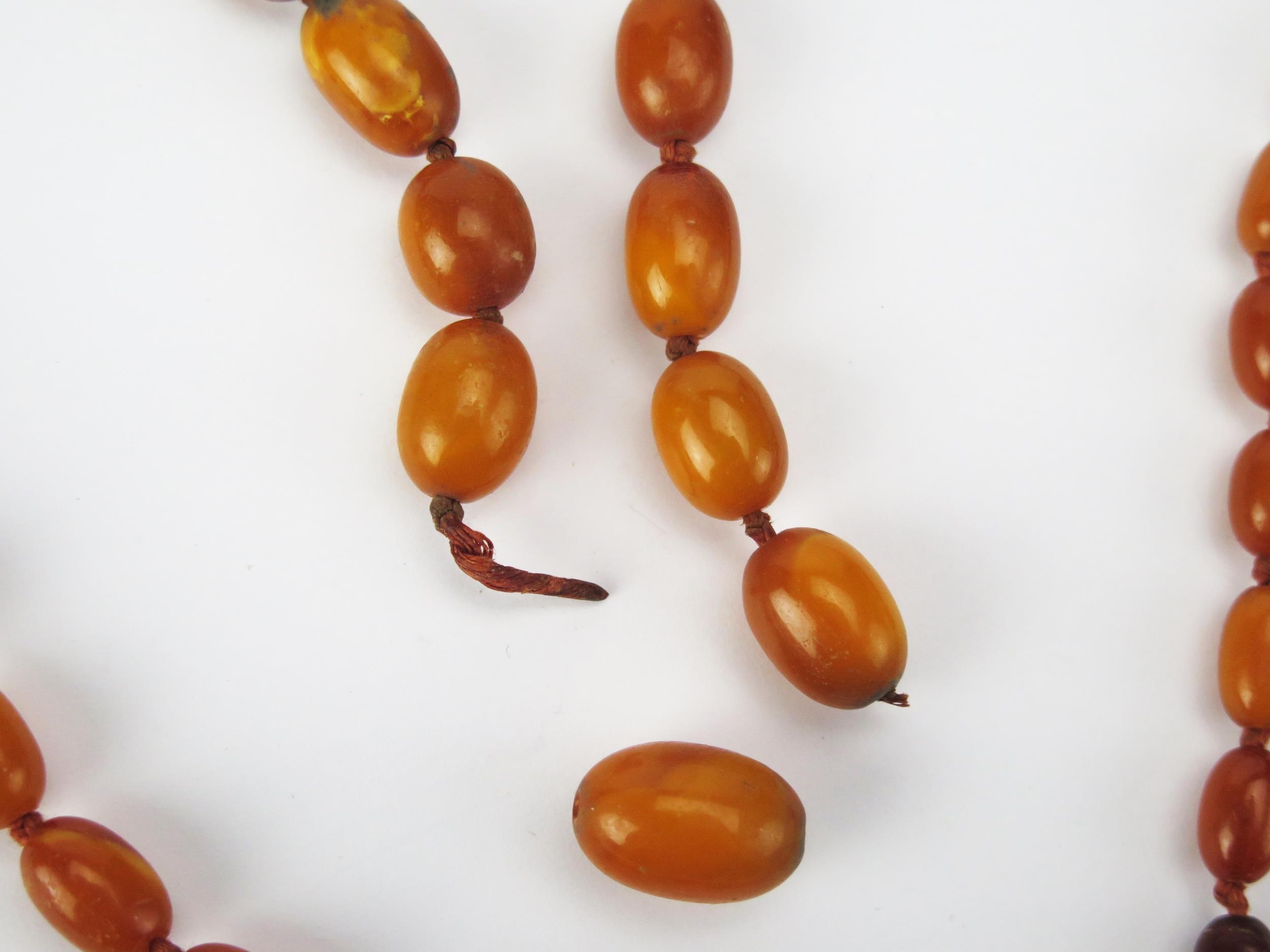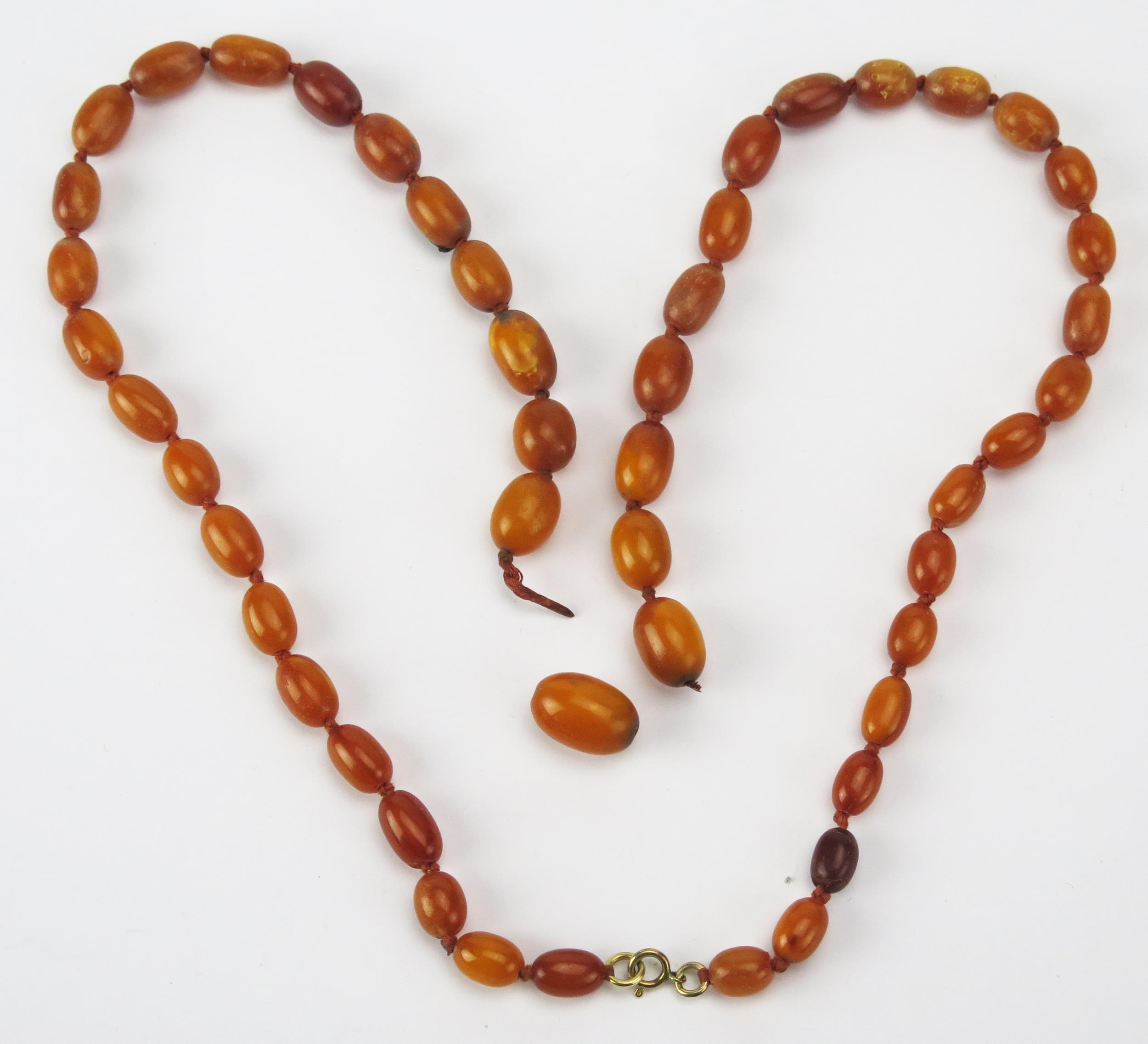 An Amber Bead Necklace, c. 32.7g, largest bead 18.3x12.3mm. Needs restringing