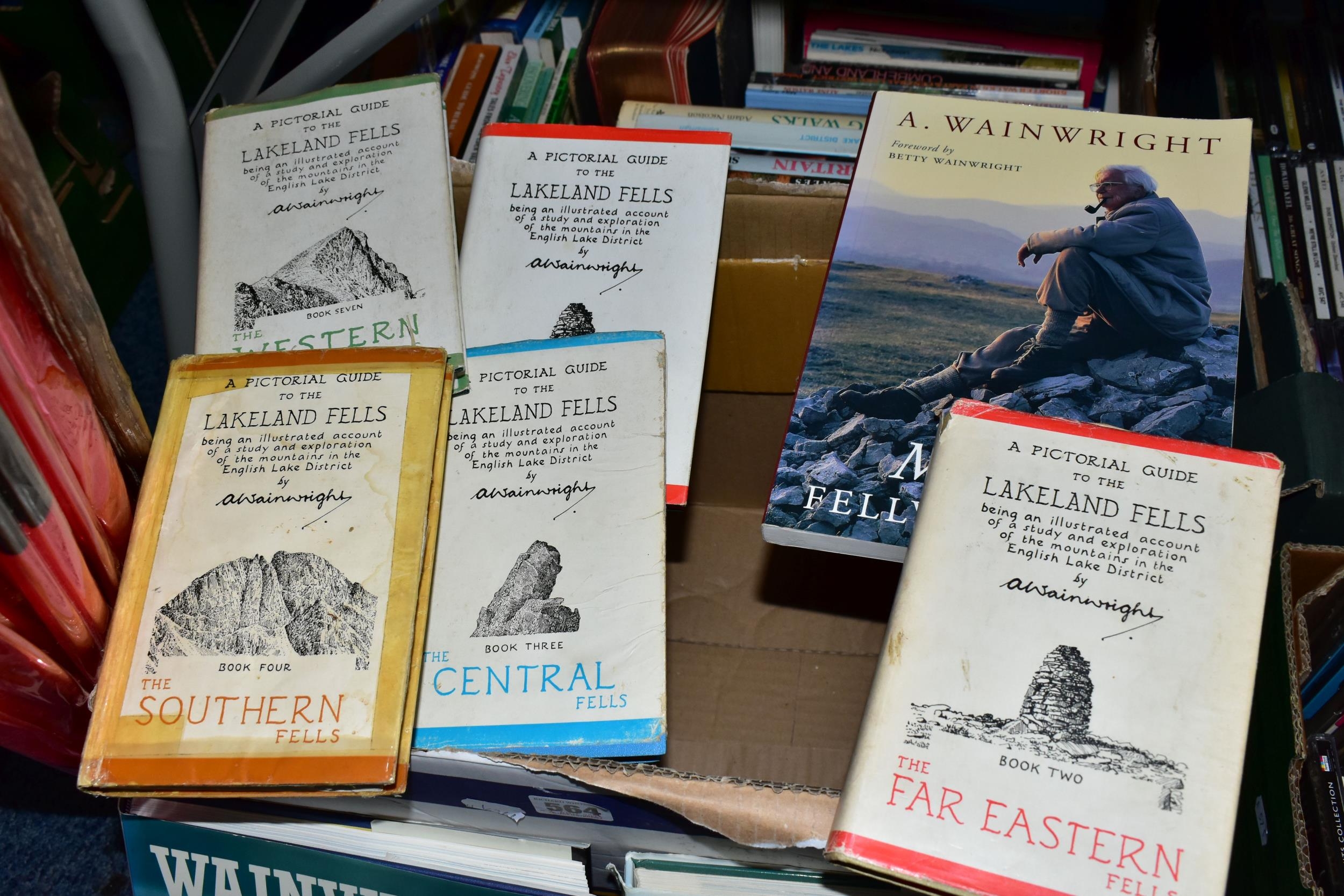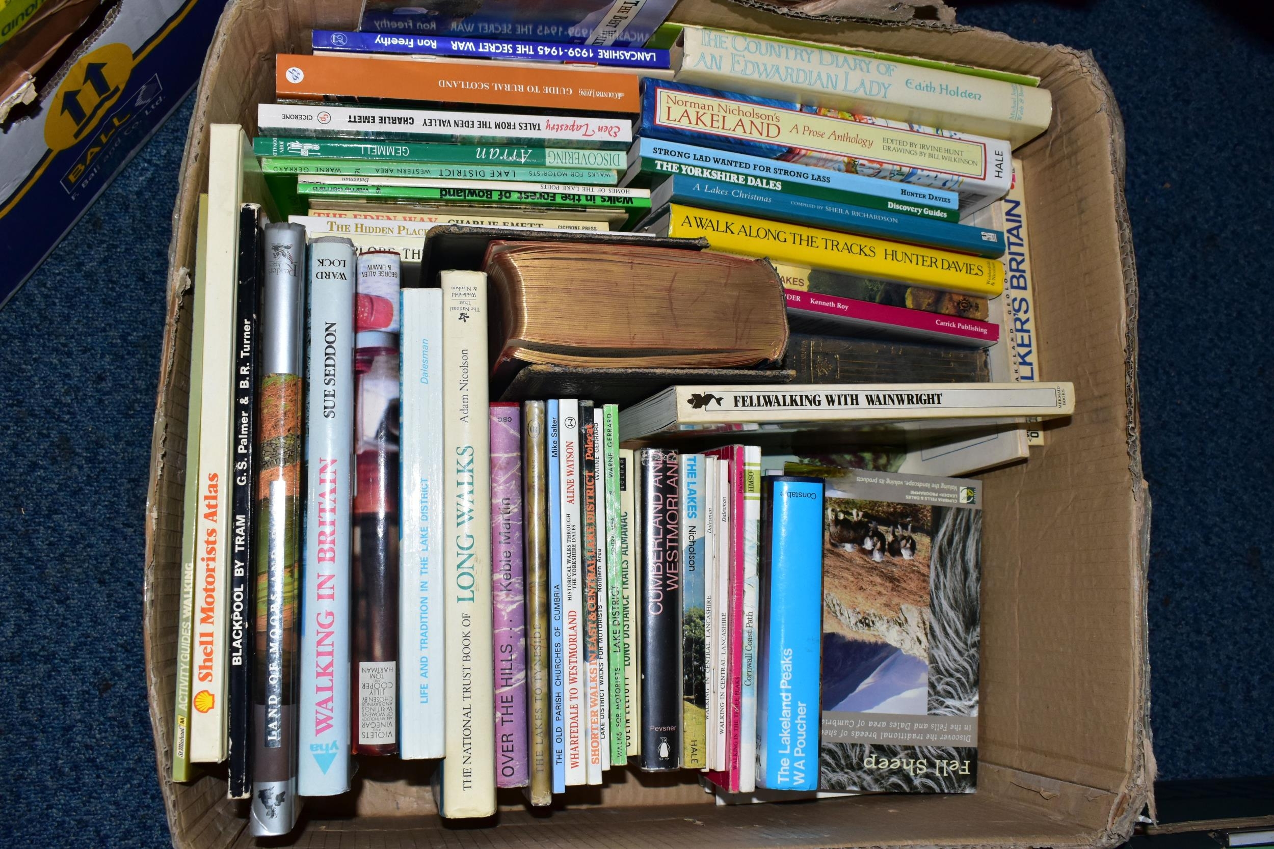 TWO BOXES OF BOOKS, containing approximately 50+ titles mostly relating to Fell Walking and including several titles by A. Wainwright, various impressions (2 BOXES)