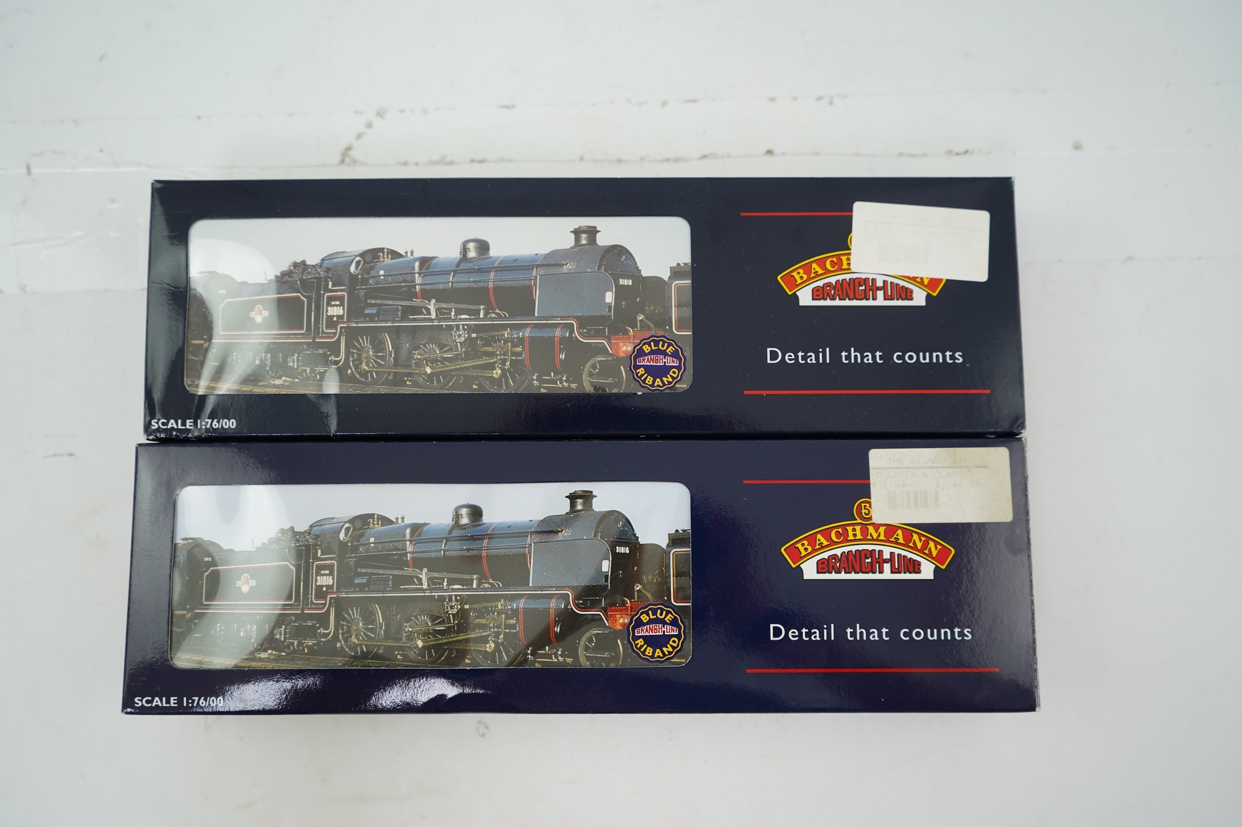 Two boxed Bachmann Branchline 00 gauge railway Southern Railway N Class tender locomotives; 1824 (32-153), together with 1864 (32-155)