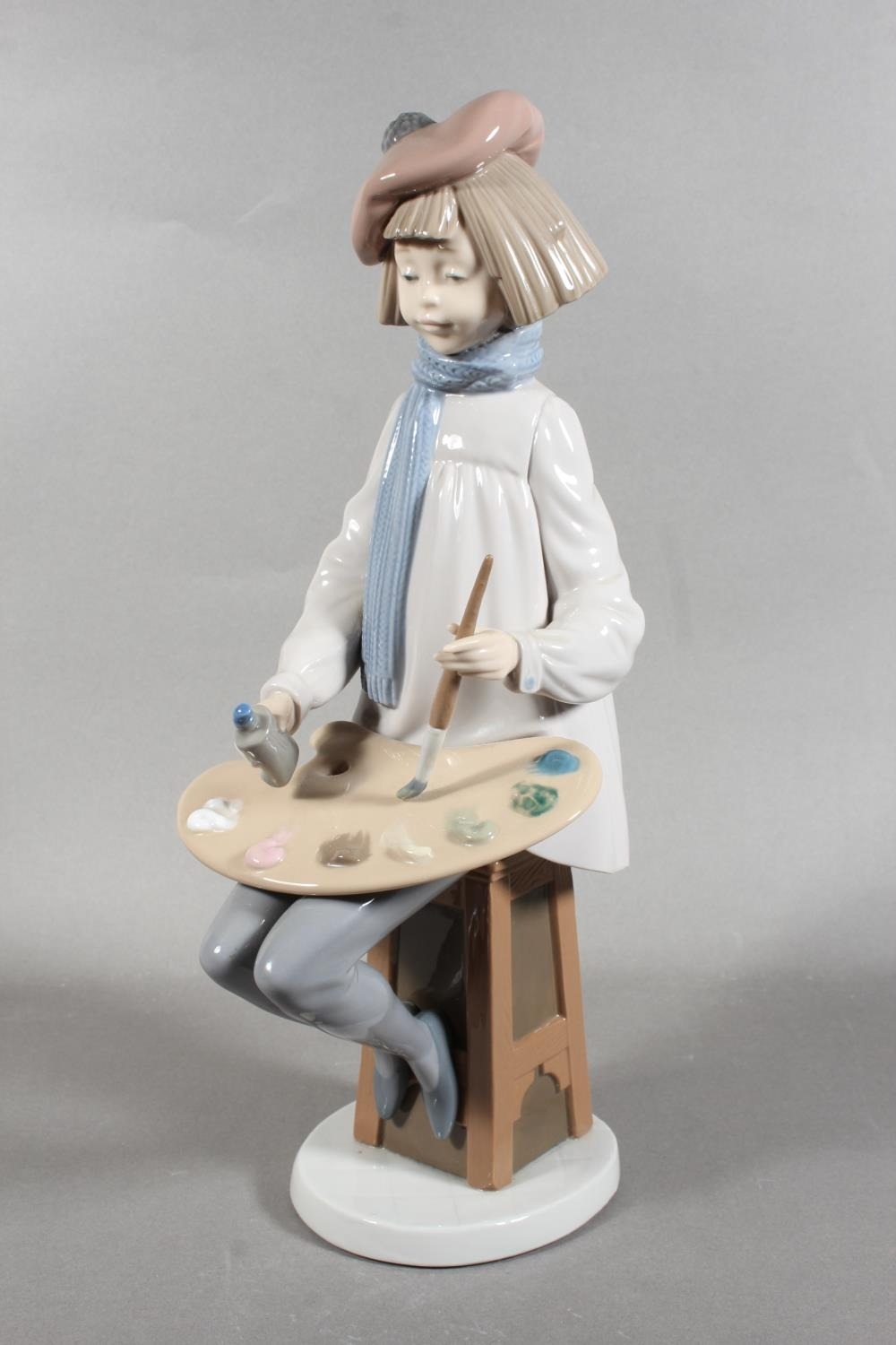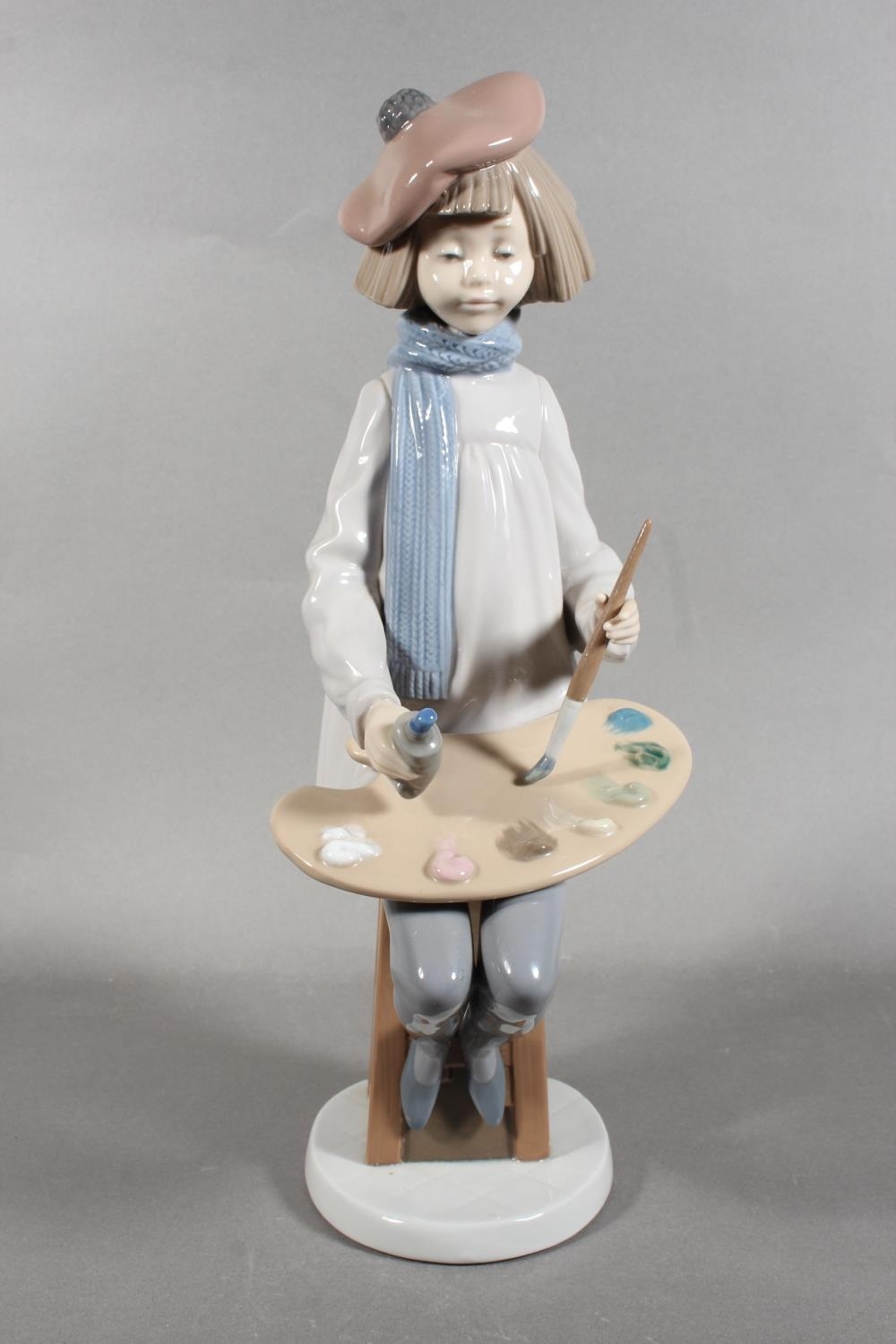 Nao figure of a girl artist with easel, 34cm tall.