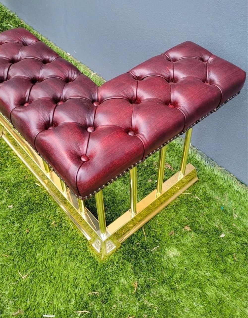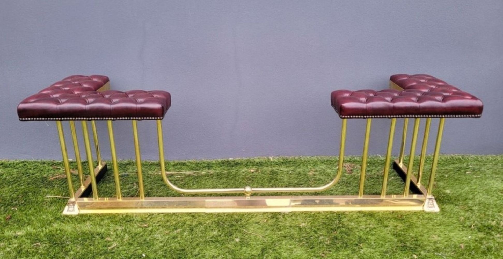 AN EXTENDABLE OXBLOOD LEATHER TOPPED CLUB FENDER, oxblood leather chesterfield style button upholstered top, dimensions: extendable from 5ft to 6ft inside width approx. **PLEASE NOTE** This lot is DELIVERY ONLY – the bidder cannot collect the lot. Please contact our in-house recommended delivery services in Lot 1 for a quotation prior to bidding