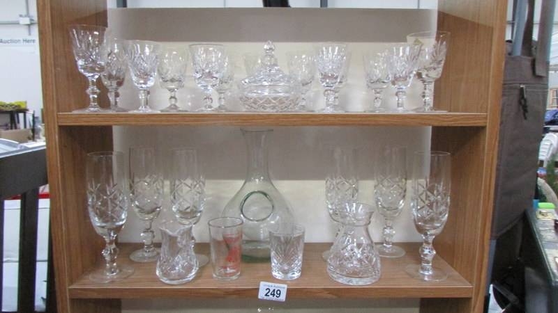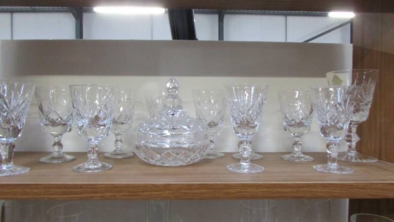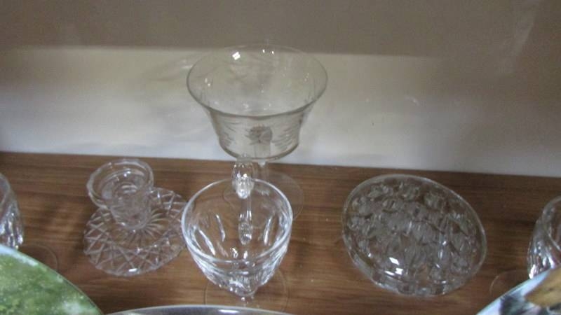 Three shelves of glass ware. (Collect only)