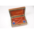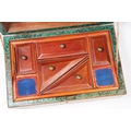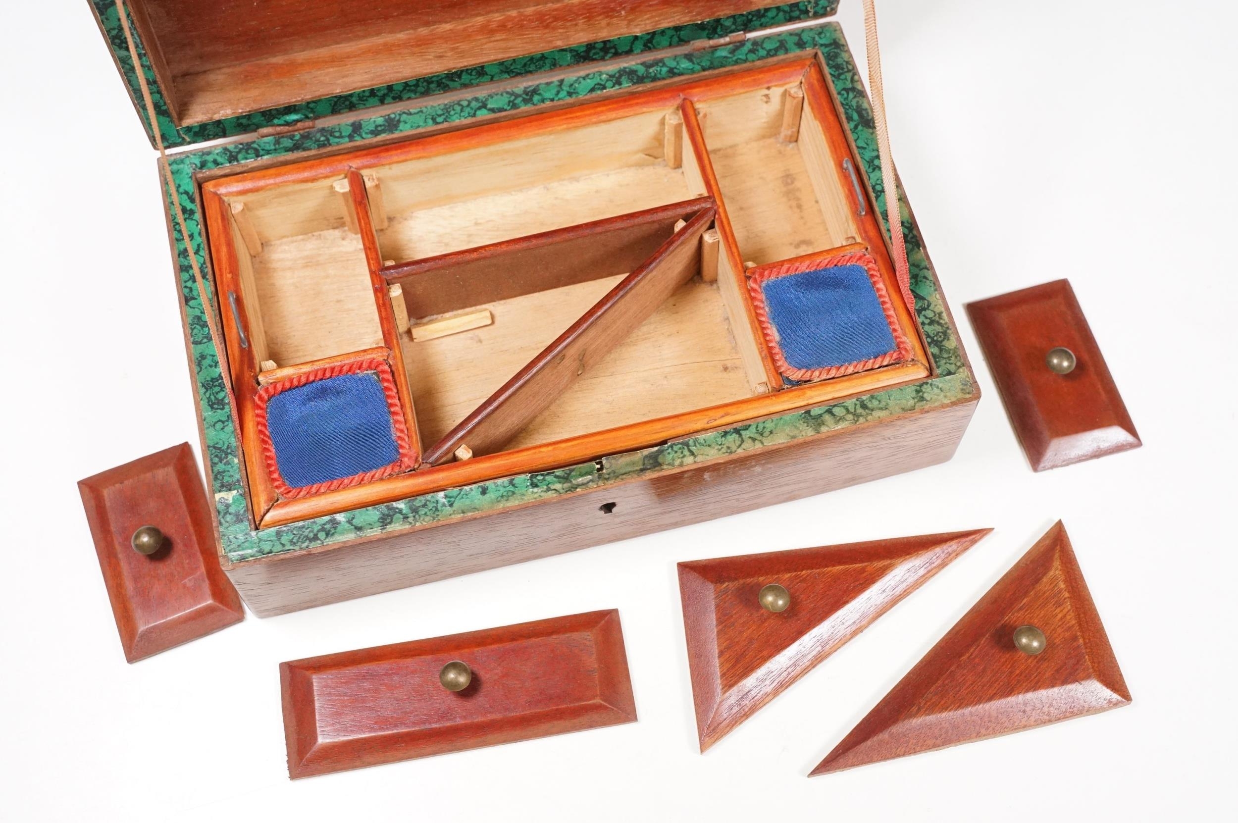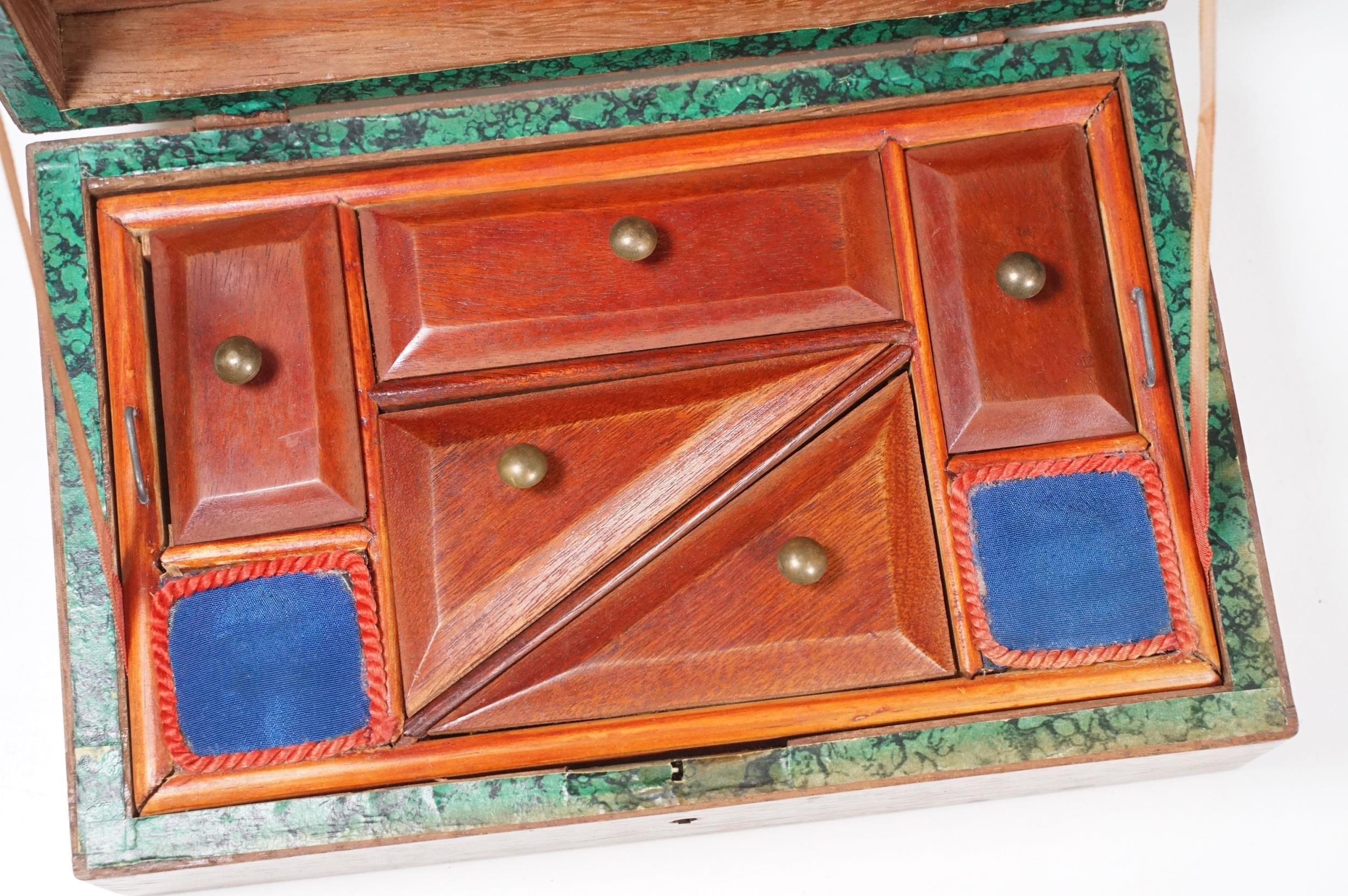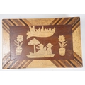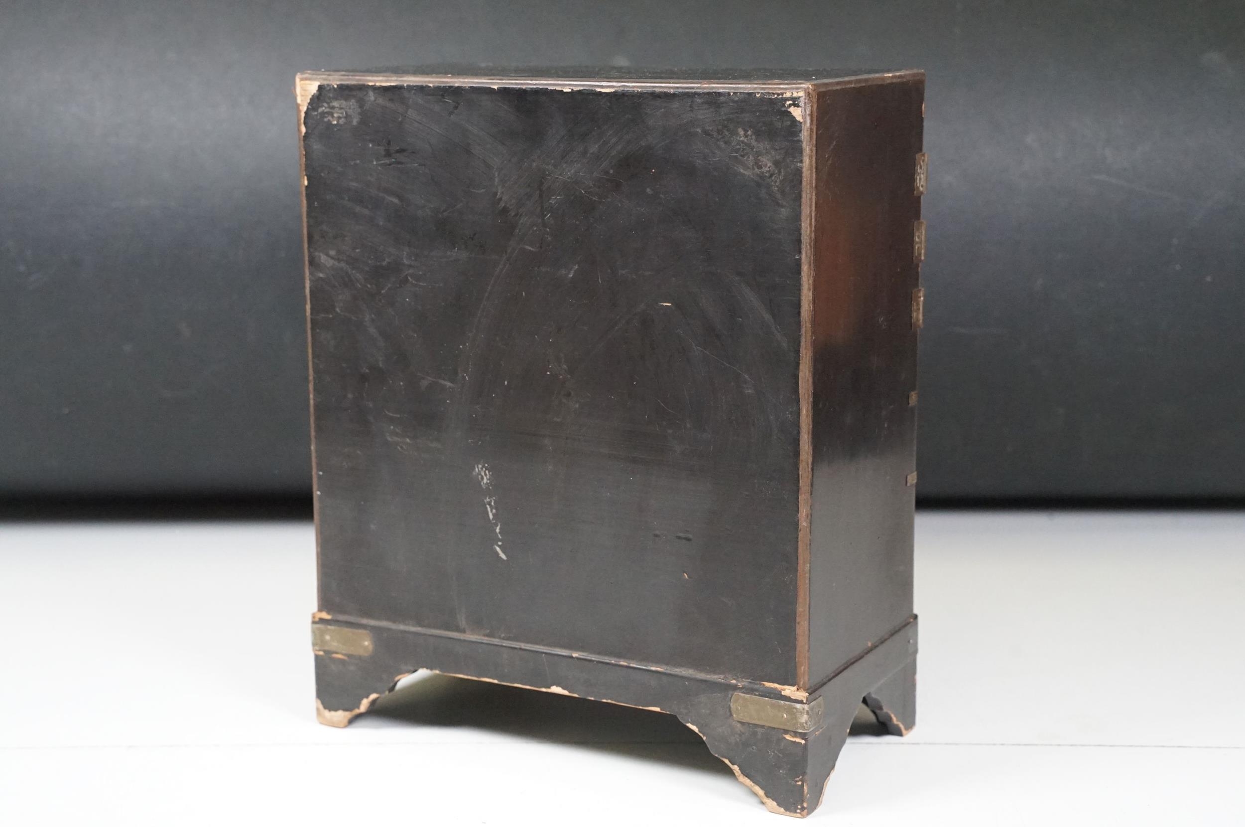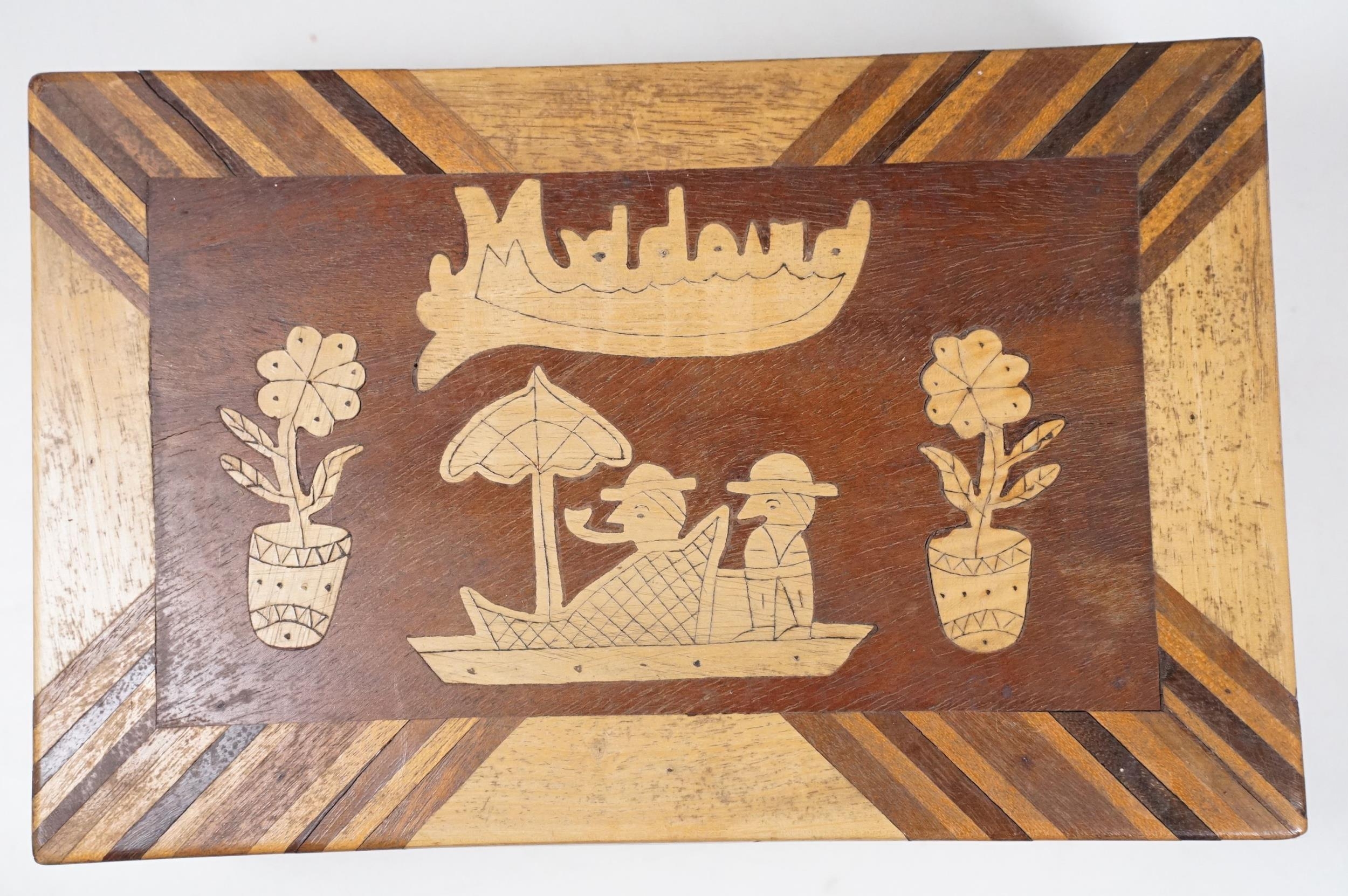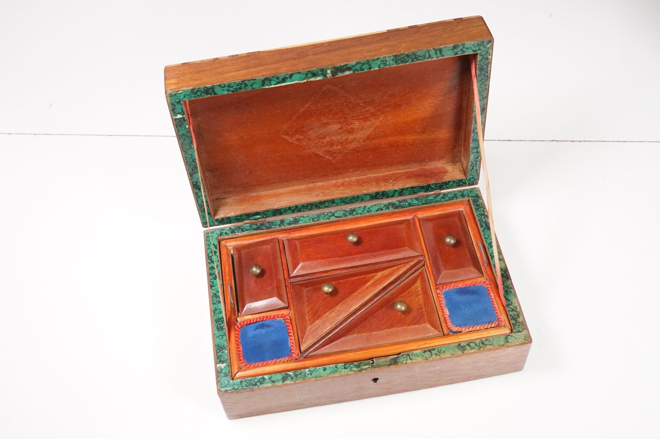 Two wooden cabinets to include Chinese black lacquered jewellery cabinet with mother of pearl inlay and inlaid Madeira wooden jewellery and sewing box