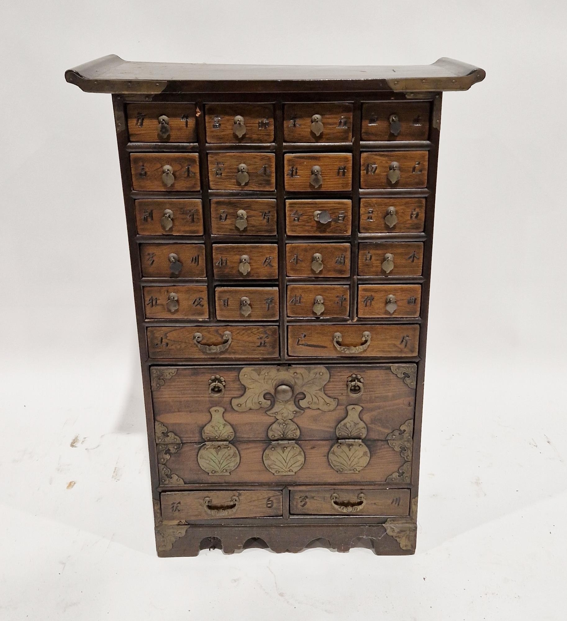 20th century Oriental spice cabinet having various drawers of various sizes and shapes, 76cm high x 52cm wide x 23cm deep