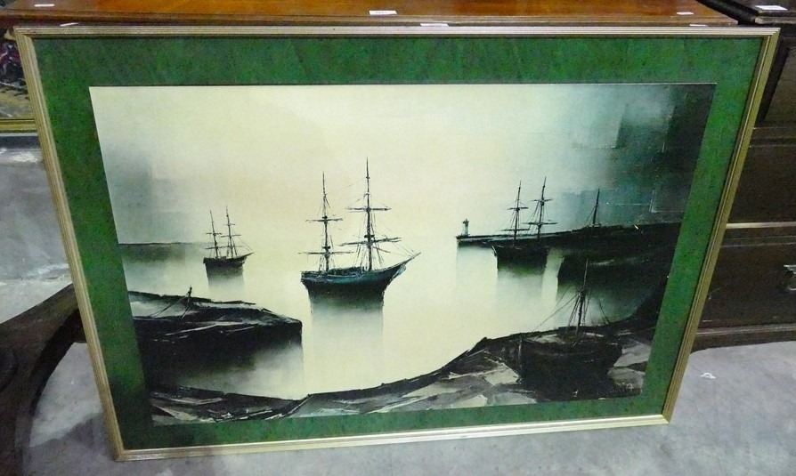Large Vintage Print - Harbor Scene