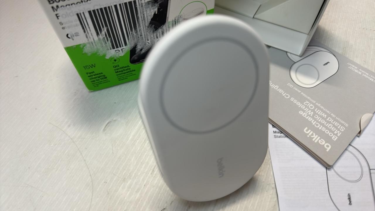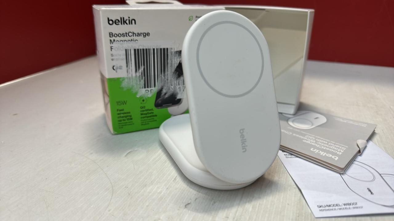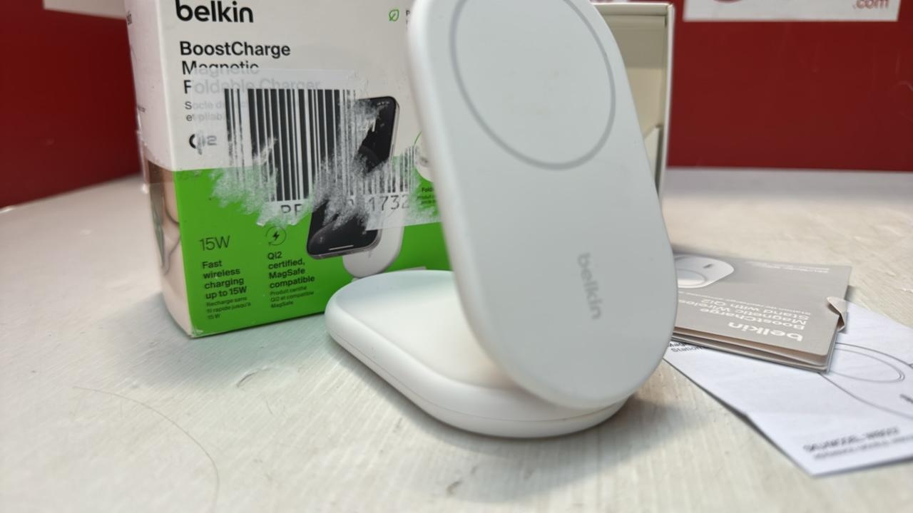 BELKIN BOOSTCHARGE MAGSAFE CHARGER, MAGNETIC FOLDABLE WIRELESS CHARGING STAND 15W, MAGSAFE-COMPATIBLE PORTABLE FAST CHARGER FOR QI2, FOR IPHONE 17, AIR, 16, PIXELSNAP, STANDY MODE READY - WHITE [46]