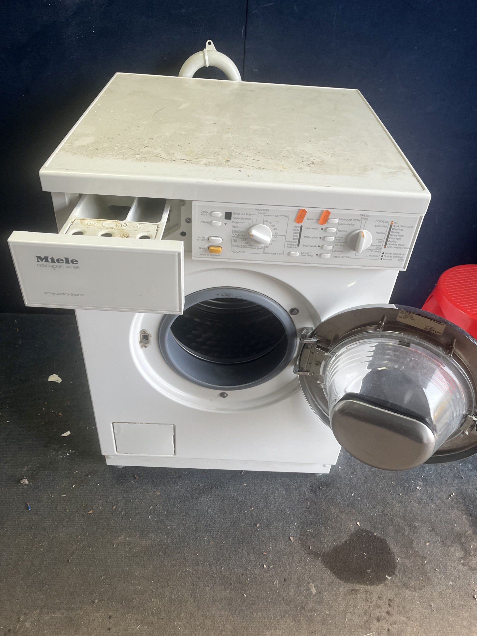 A MIELE W945 WASHER DRYER, width 60cm, depth 60cm, height 85cm (PAT pass, spin cycle run but not tested any further)