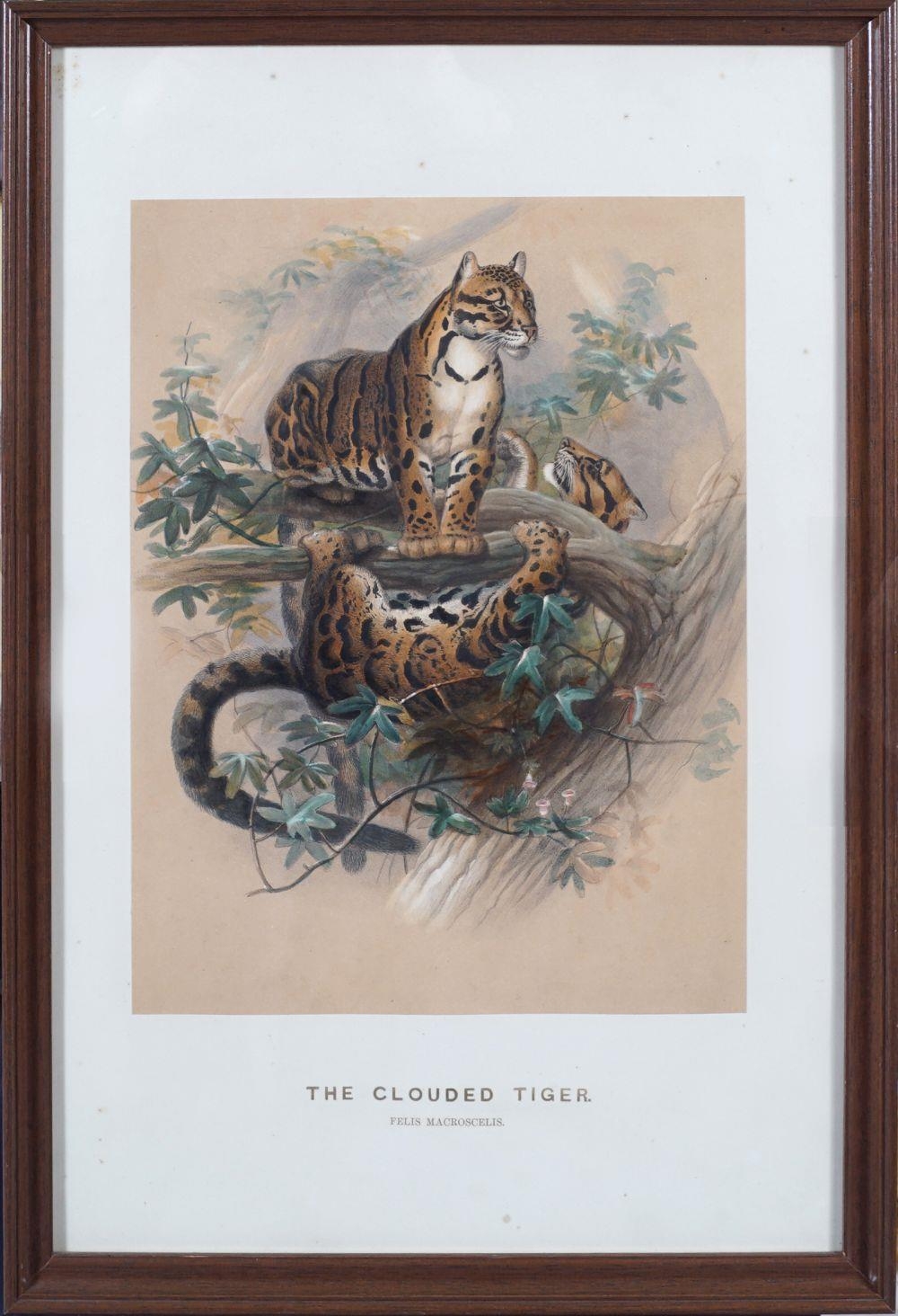 The Clouded Tiger (Felis Macroscelis). Enclosed in a moulded frame. 33 x 25 cm.