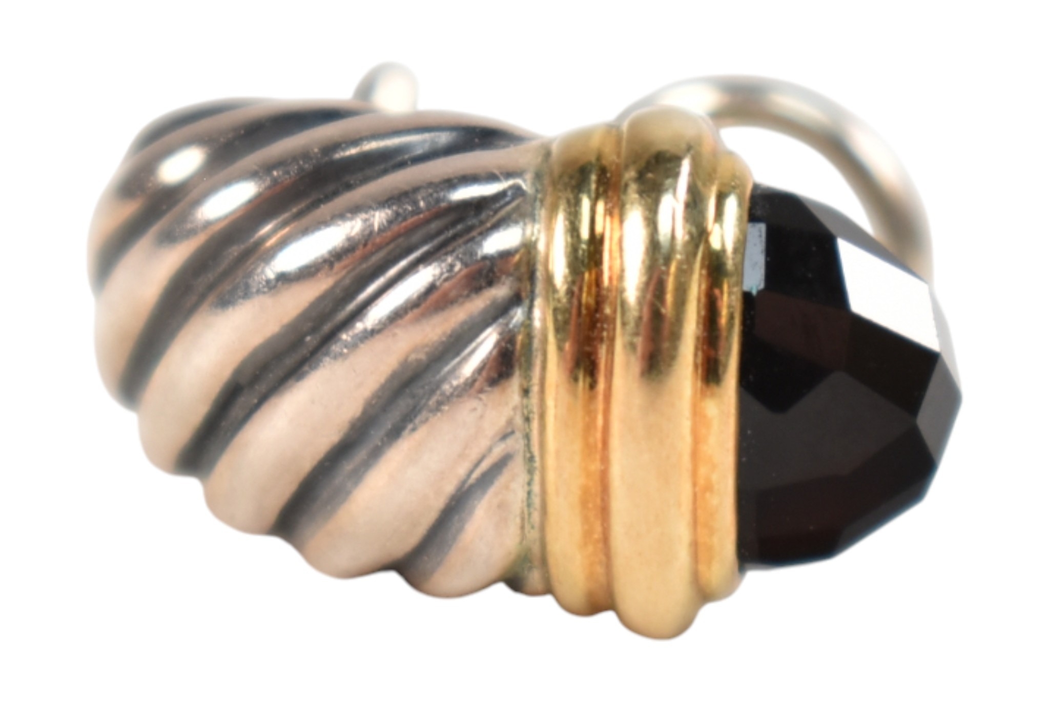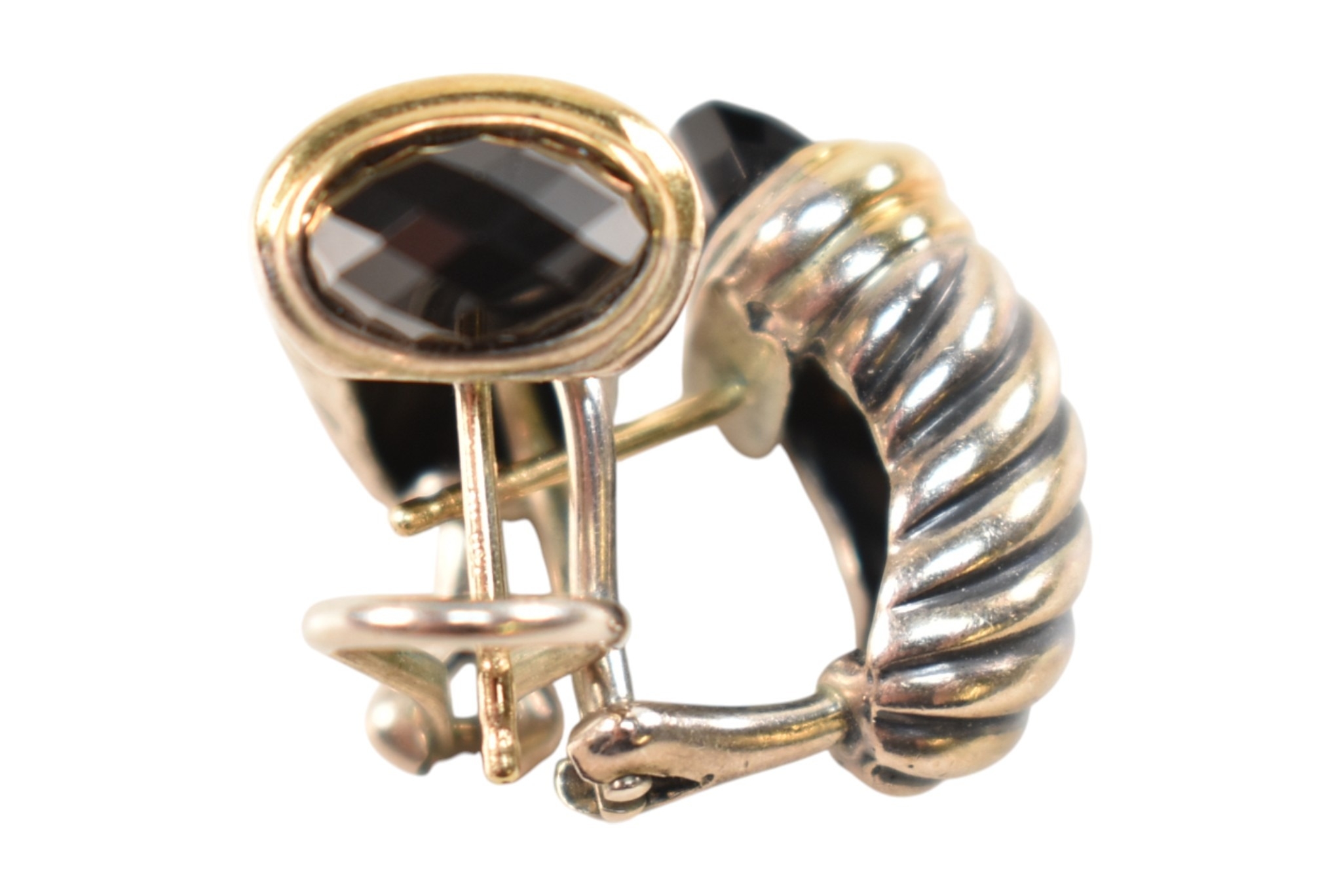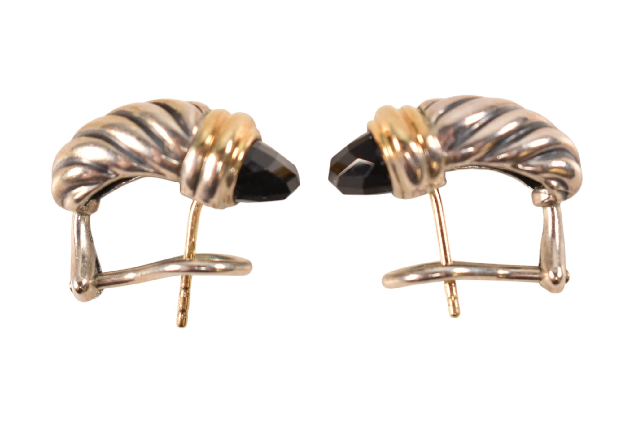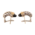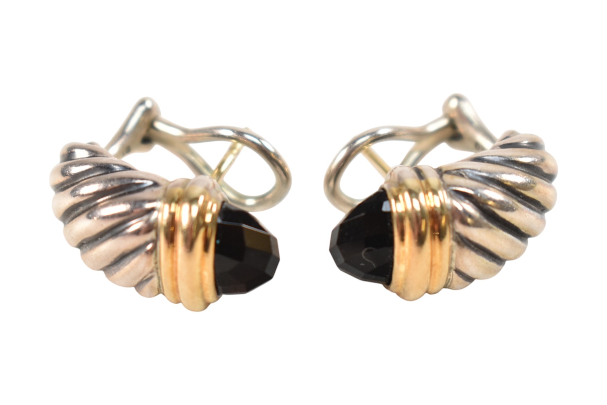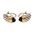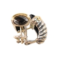 A pair of David Yurman silver 18ct gold and onyx Shrimp earrings. Signed D.Y 925 750. Weight 9.7g. Measures 2cm.