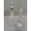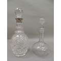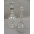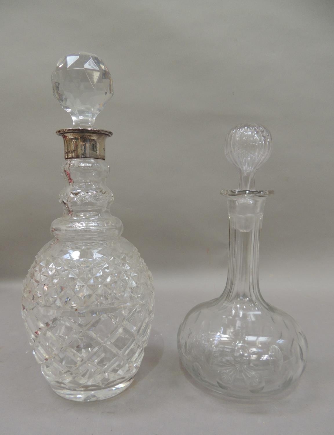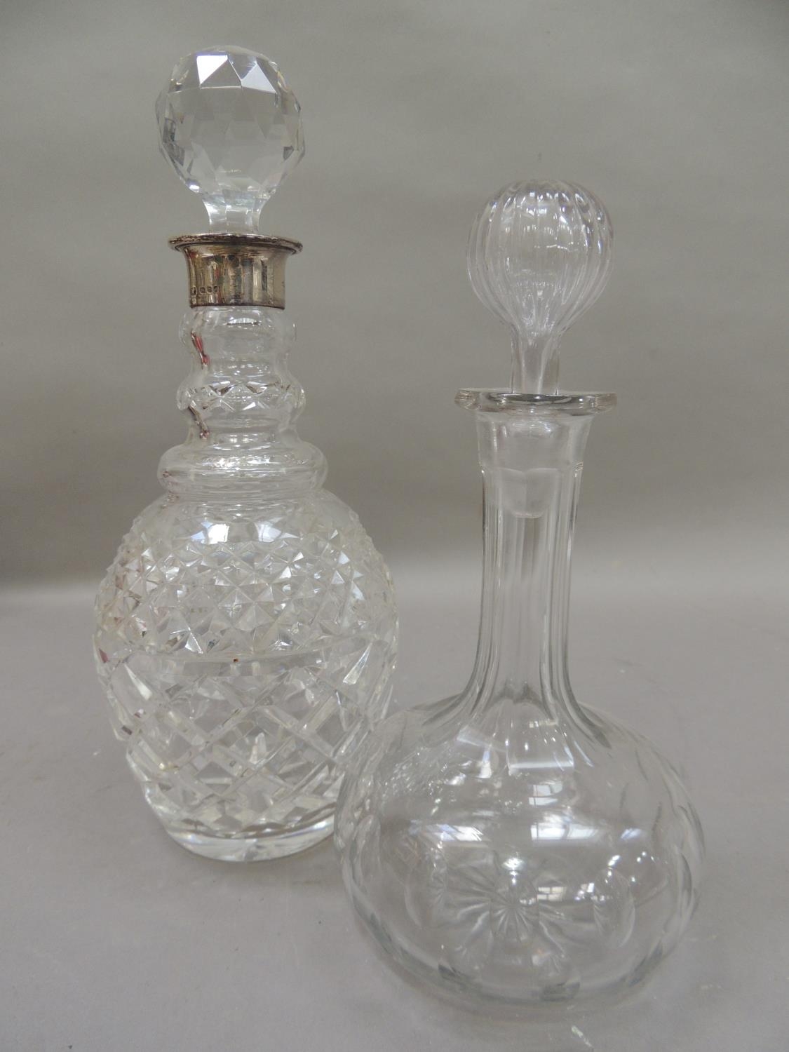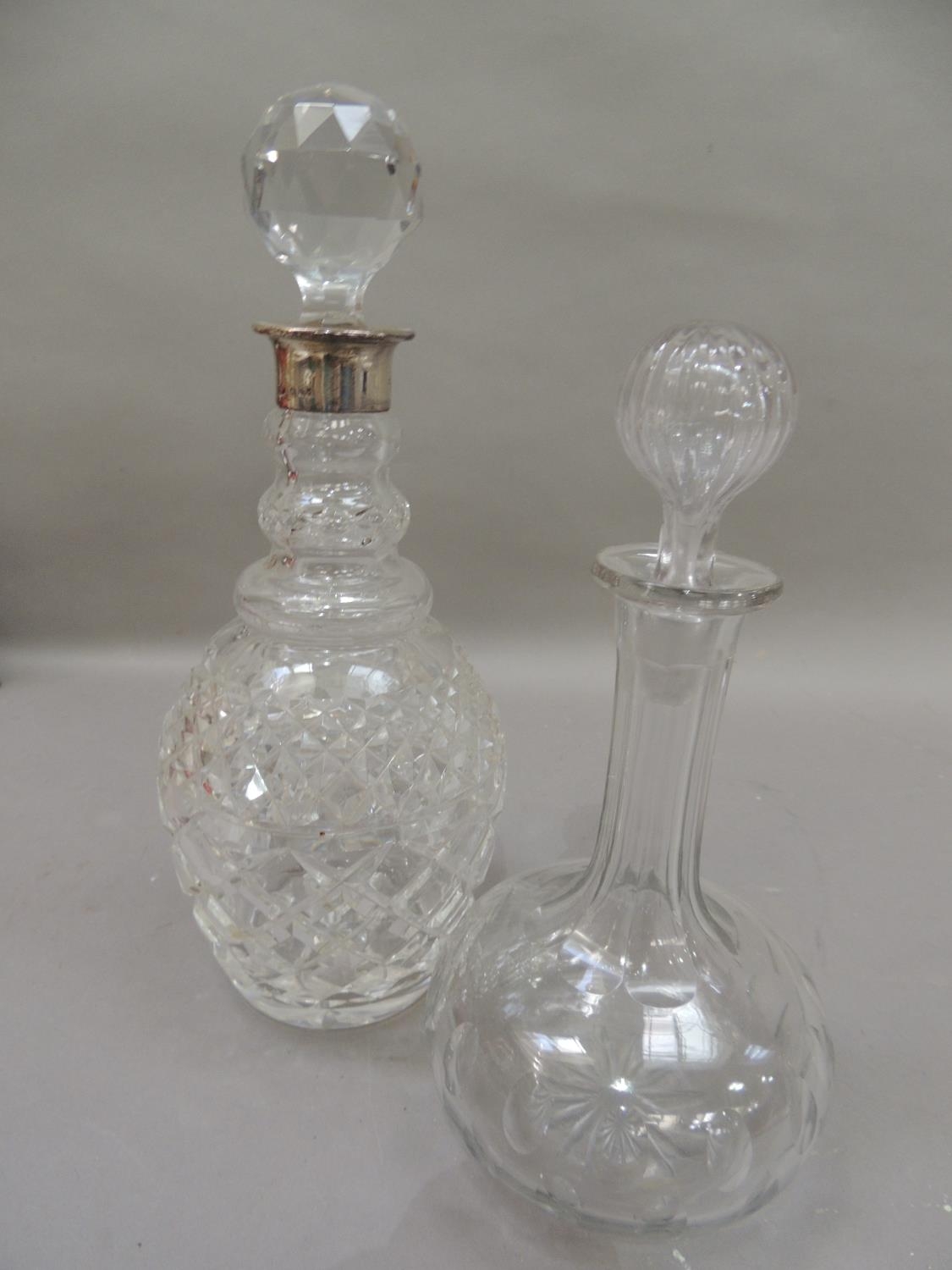 A silver mounted cut glass decanter with facetted globular stopper, silver neck, triple collar and cut body; together with a Victorian cut glass decanter (2)