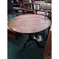 A solid oak exterior door with iron braces and handle.