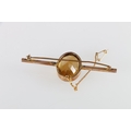 9ct gold bar brooch set with large faceted oval citrine stone, 13.6g gross, 8cm long