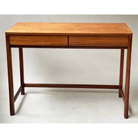 WRITING/SIDE TABLE, 1960's style acacia block fronted with two frieze drawers, 100cm x 40cm x 81cm.