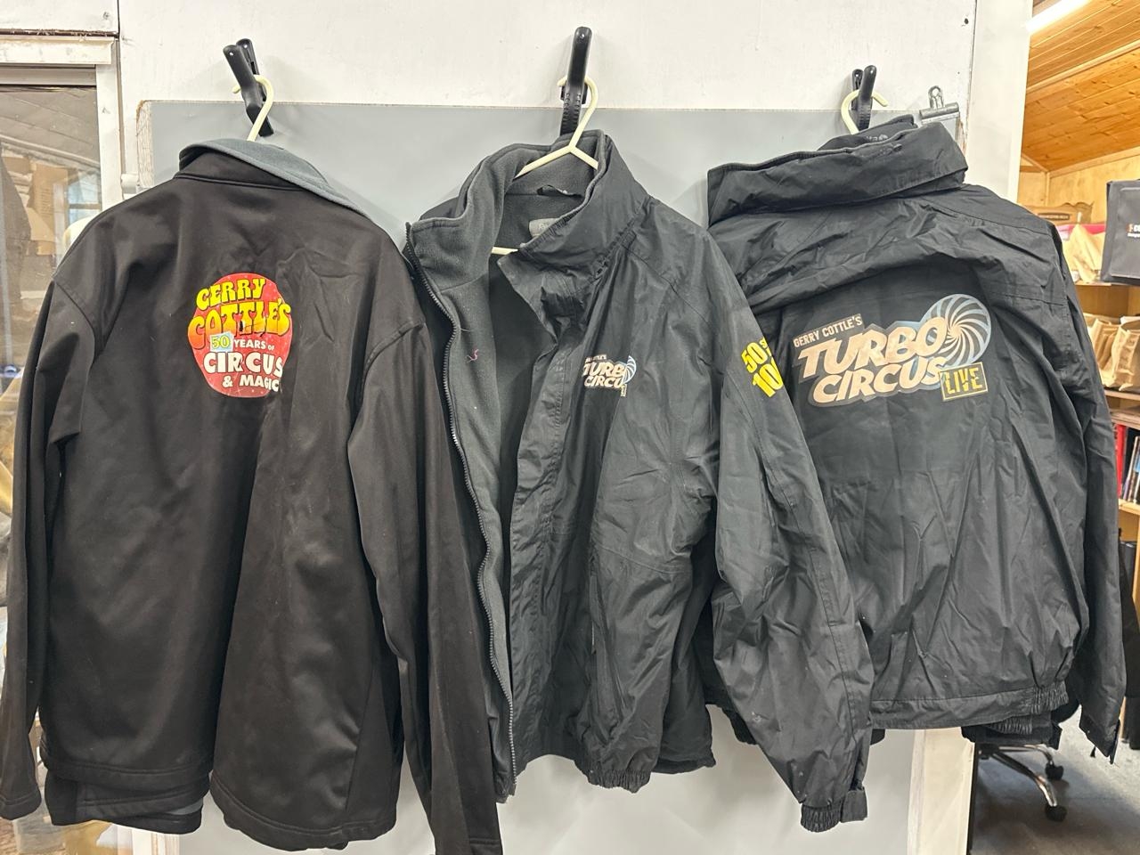 Five worn jackets from Gerry Cottle's 'Turbo Circus Live' and '50 years'. /Rail 4