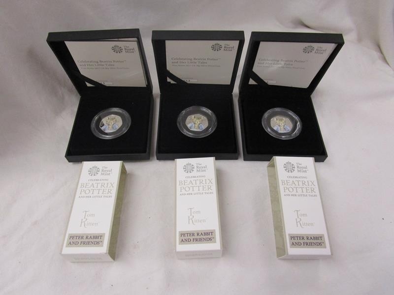 3 Tom Kitten 2017 UK 50p silver proof coin with early consective COA numbers 62, 63 & 64 - Black box edition