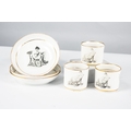 C/R-all saucers hairlined, one coffee can with chips to the footrim, another with small firing crack to the centre of the base, all with rubbing, mainly to the gilt but some pieces to the print also